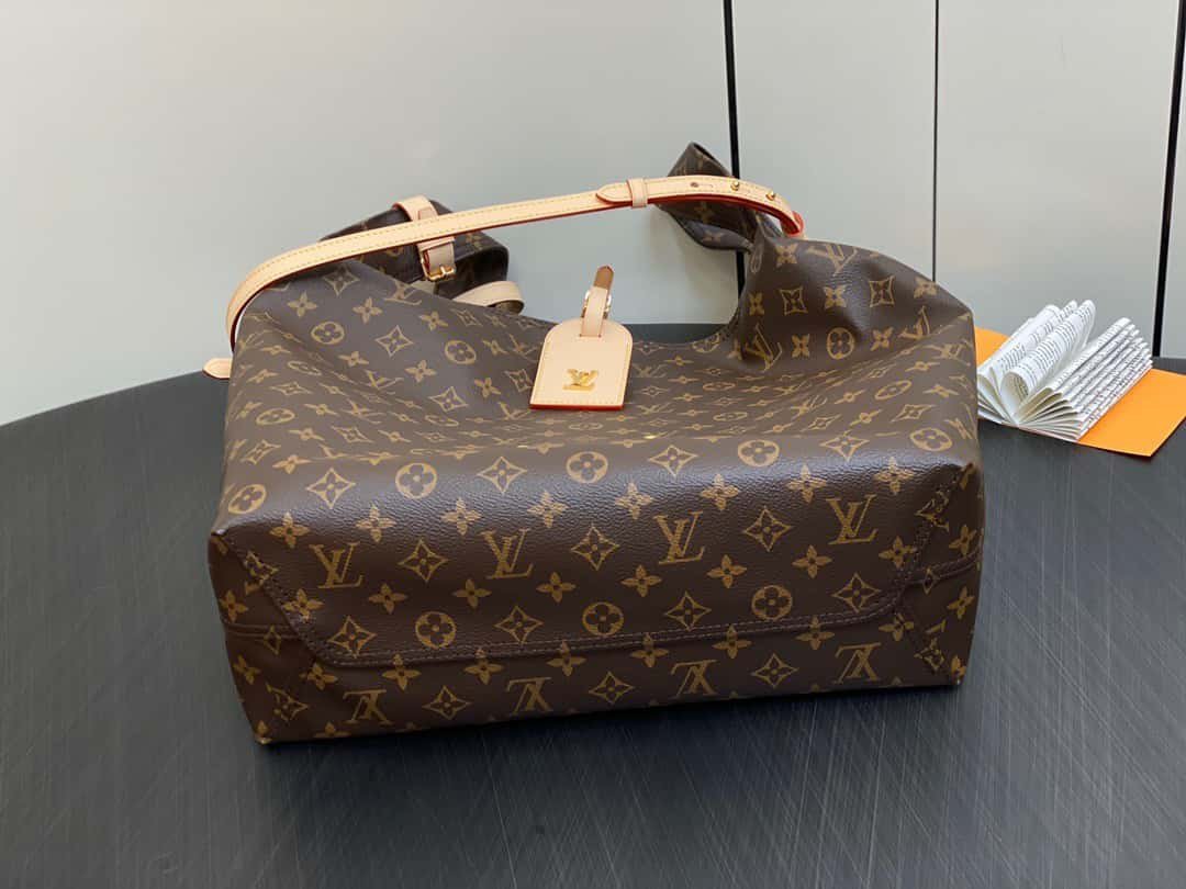 With its innovative shopping-bag shape, the Atlantis GM handbag was designed to turn heads. Crafted from Monogram canvas, it’s signed with the House’s instantly recognizable name tag, featuring gold-color LV Initials. The zipped inside pocket helps keep essentials organized while the adjustable, removable strap enables cross-body wear.