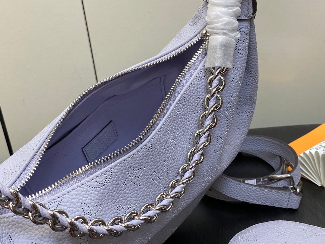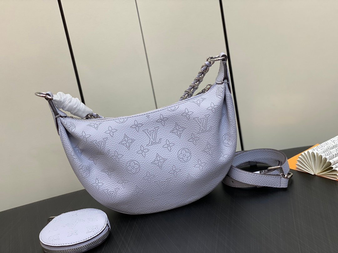 A new addition to the Mahina family, the Baia PM is an eye-catching half-moon bag. Thanks to the suppleness and drape of perforated Mahina calfskin, this fashionable shape provides a comfort and body-friendly porté. Detailed with a signature coin purse, the Baia also features a finely braided leather and metal handle and long adjustable strap, thus offering both shoulder and cross-body carry options.