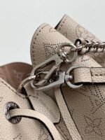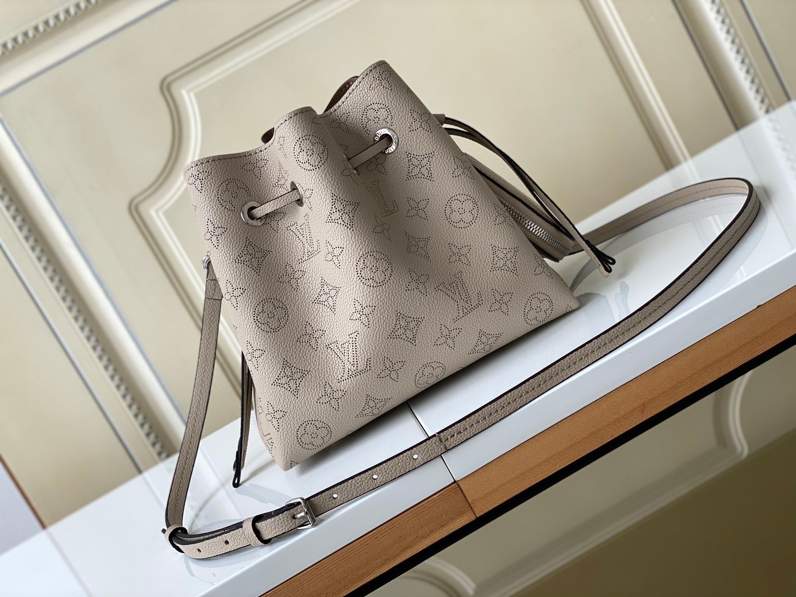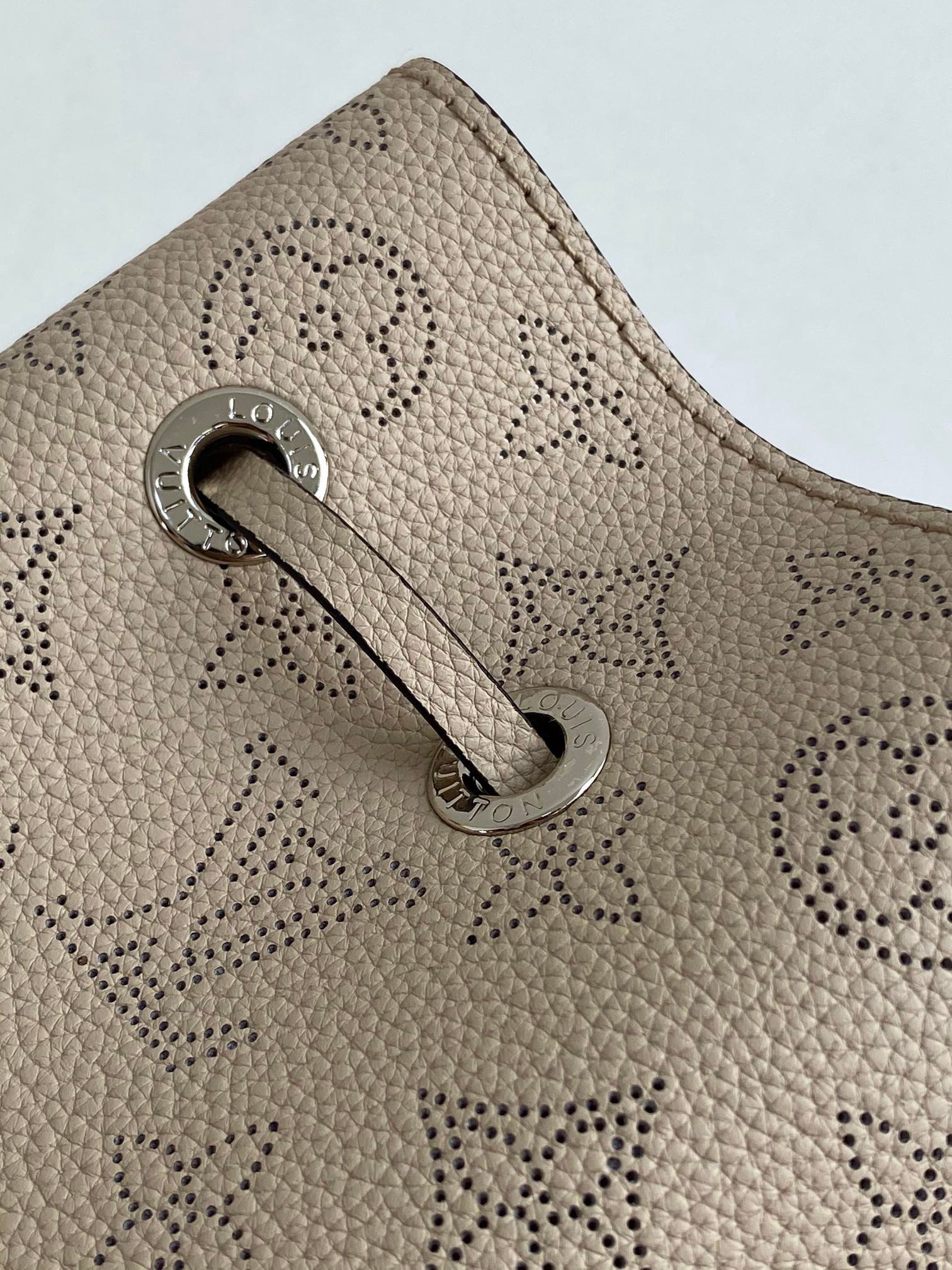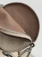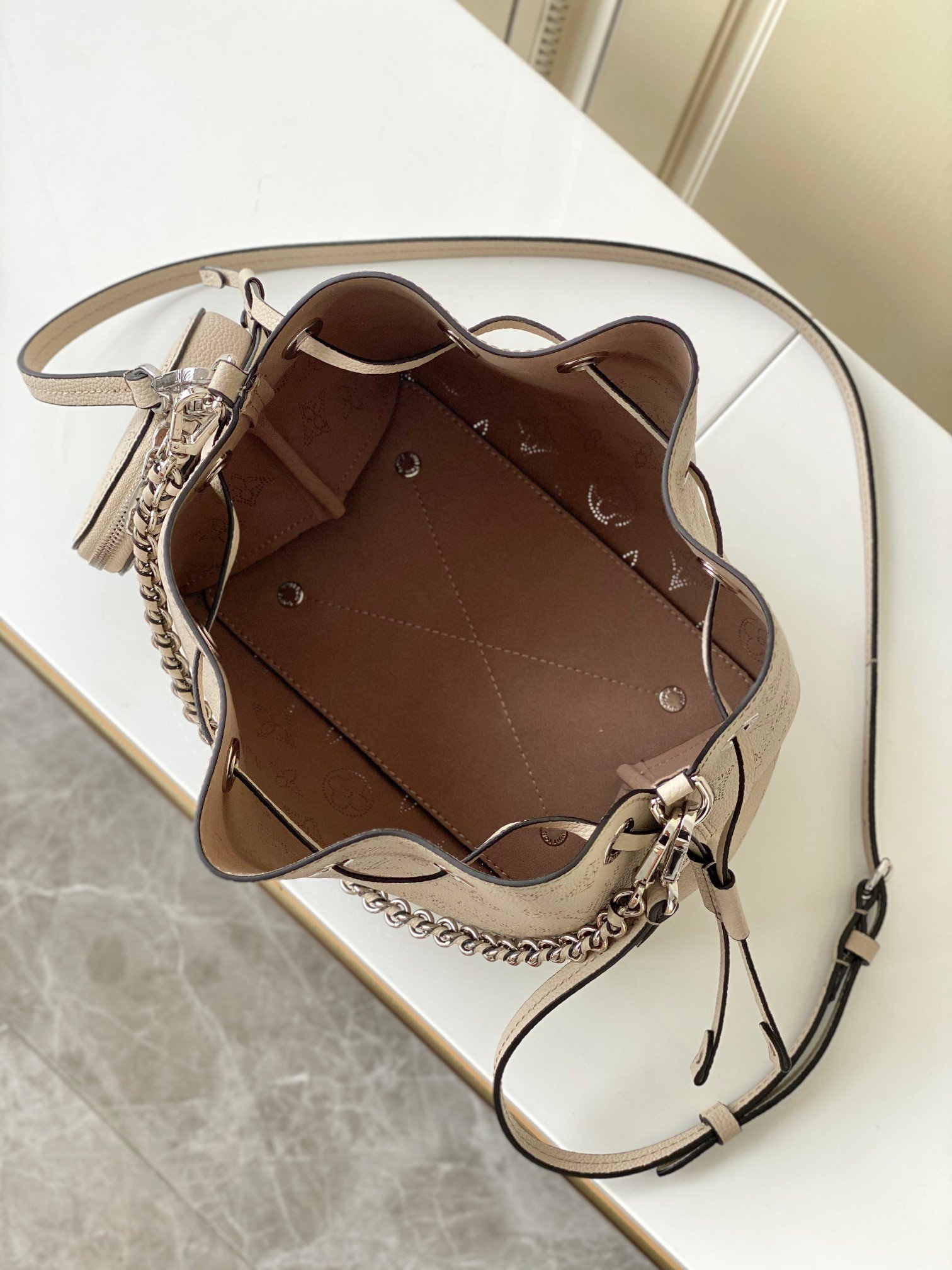 Louis Vuitton unveils the Bella bucket bag in Mahina calf leather with its perforated Monogram pattern. The bag’s small size and the attached round coin purse, featuring a miniature version of the perforated Monogram motif on one side, make it modern, desirable and trendy. The sophisticated leather and metal mixed handle associated with a removable leather strap bring versatility.
