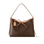 Louis Vuitton launches the CarryAll MM handbag in Monogram canvas with natural leather trim. Its contemporary, body-friendly design and roomy interior make this a fantastic everyday bag. Inside zipped pockets and a removable zipped pouch deliver even more functionality. A gold-color buckle allows the handle to be shortened or lengthened.
