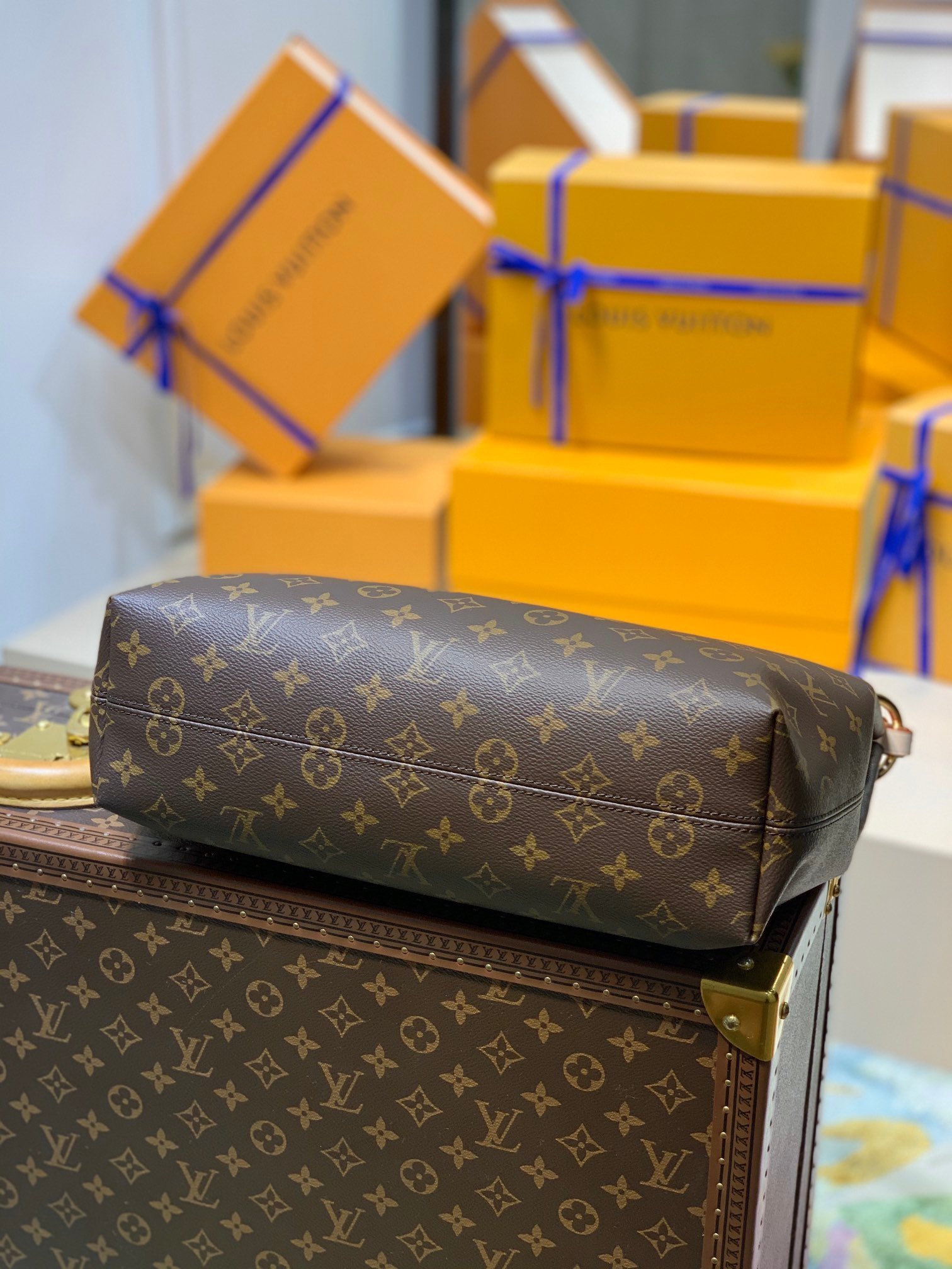 The Graceful PM hobo in classic Monogram canvas is a lightweight, roomy bag to carry every day. Natural cowhide leather detailing and golden hardware add a refined touch. The body-friendly design combines with a supple, flat handle for stylish and comfortable over-the-shoulder wear. The magnetic closure and zipped inside pocket keep belongings secure.