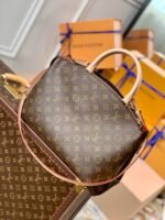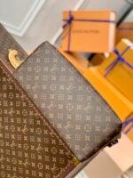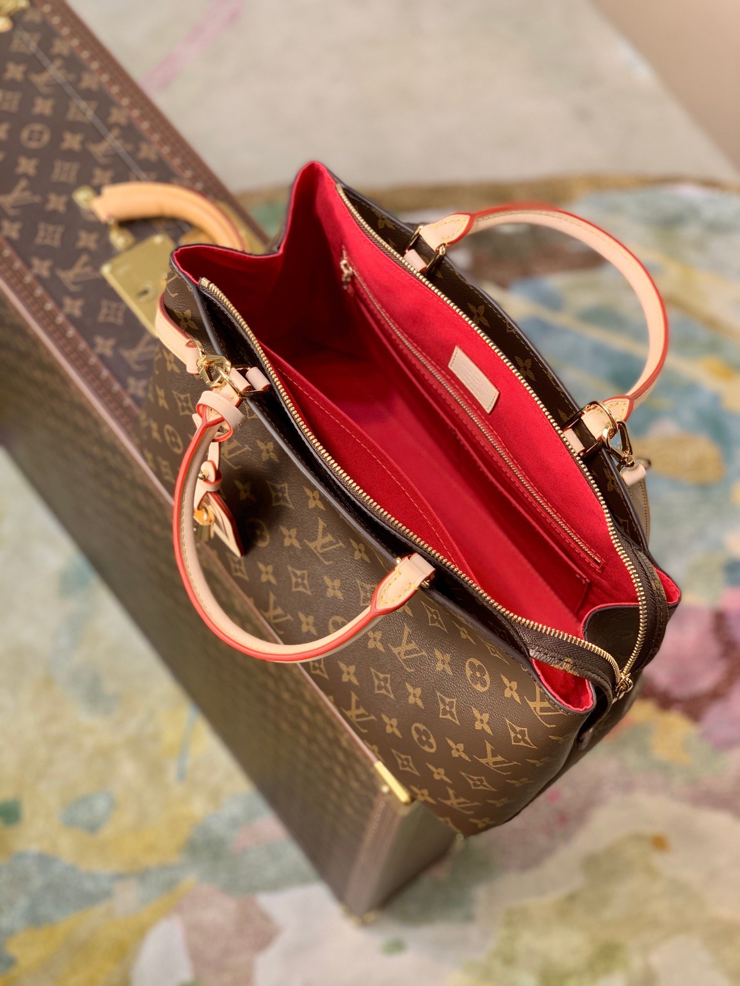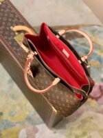 Inspired by the iconic Lockit from 2011 and the shape of the Montaigne launched in 2014, the new Grand Palais tote is as versatile as it is feminine. Made from Monogram canvas with natural-leather trim, its interior features a vivid red lining and a Louis Vuitton patch. The removable strap and top handles give carry options.