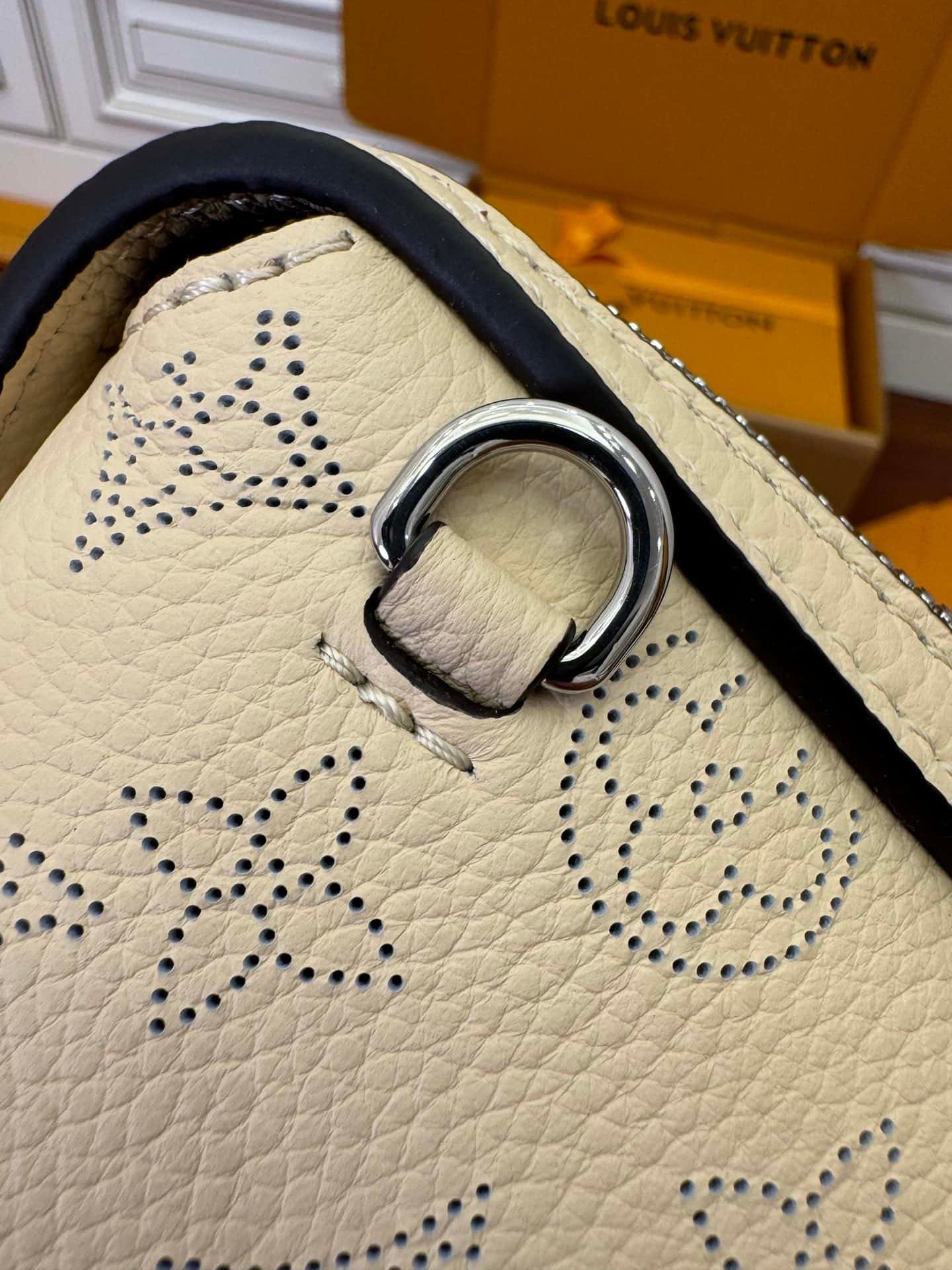 The Mahina Hand It All PM bag is made with the Maison’s exclusive perforated calfskin. The supple signature leather displays a beautiful drape, enhanced by the bag’s curvy silhouette. Fitted with a leather strap and a braided chain-and-leather handle – both detachable – this is a stylish and versatile companion for women on the go.