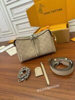 The Mahina Hand It All PM bag is made with the Maison’s exclusive perforated calfskin. The supple signature leather displays a beautiful drape, enhanced by the bag’s curvy silhouette. Fitted with a leather strap and a braided chain-and-leather handle – both detachable – this is a stylish and versatile companion for women on the go.
