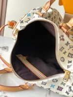 The practical Keepall Bandoulière 45 travel bag looks fresh in Monogram Craggy canvas, Tyler, colorful new reinterpretation of the classic Monogram. It’s signed with the removable wavy name tag. Two rolled-lather top handles and a detachable and adjustable shoulder strap give carry options.