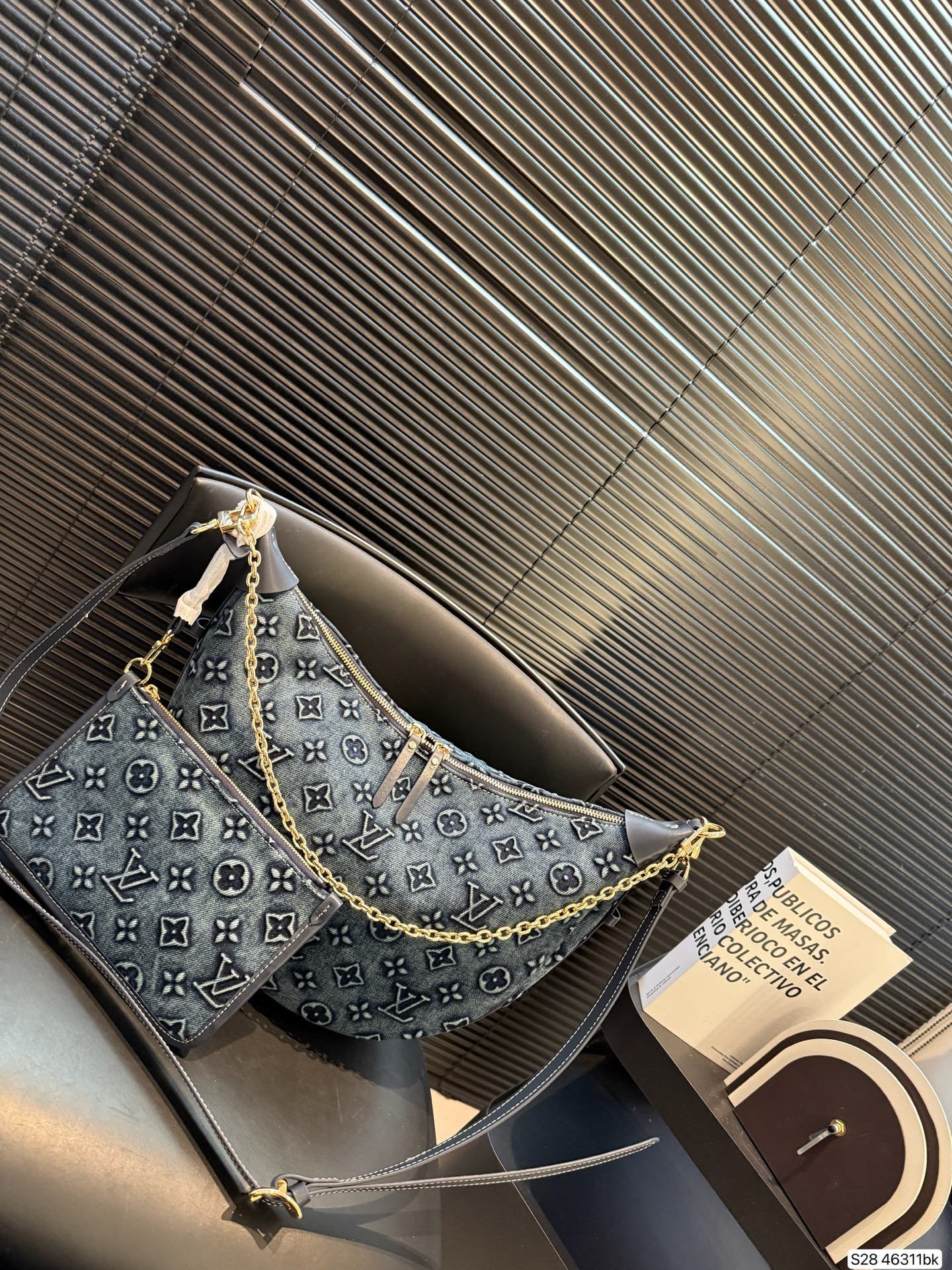 A supple and roomy bag, the Loop Hobo is made from a mix of Monogram and Monogram Reverse coated canvas. Its on-trend half-moon shape is emphasized by the leather corners. A removable chain and removable and adjustable leather strap enable multiple carrying options.