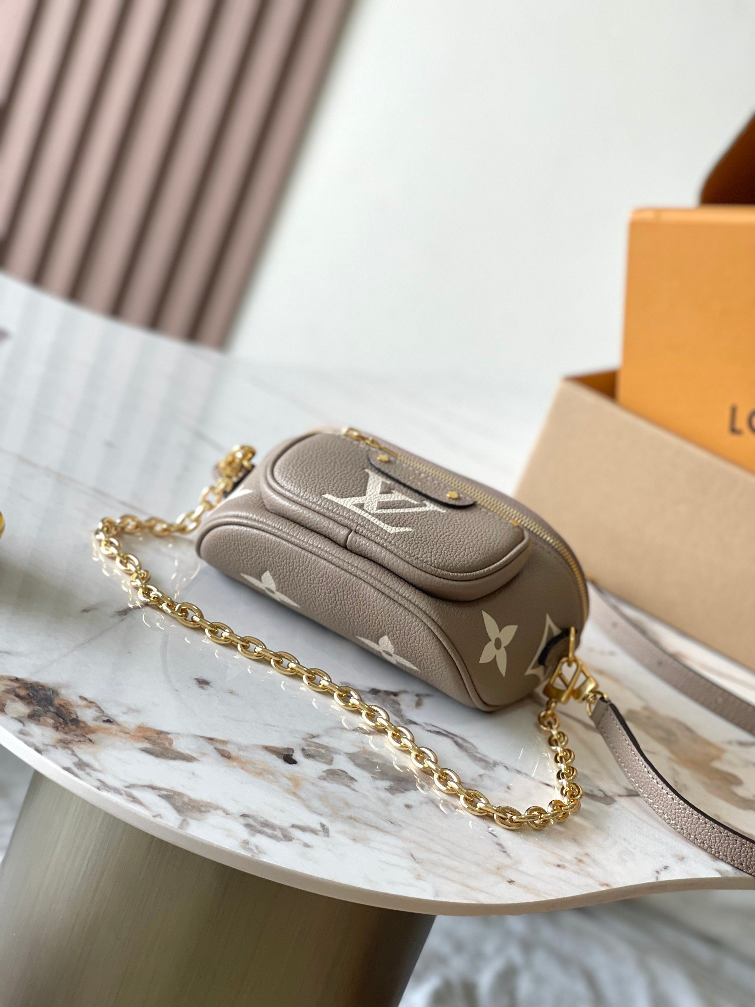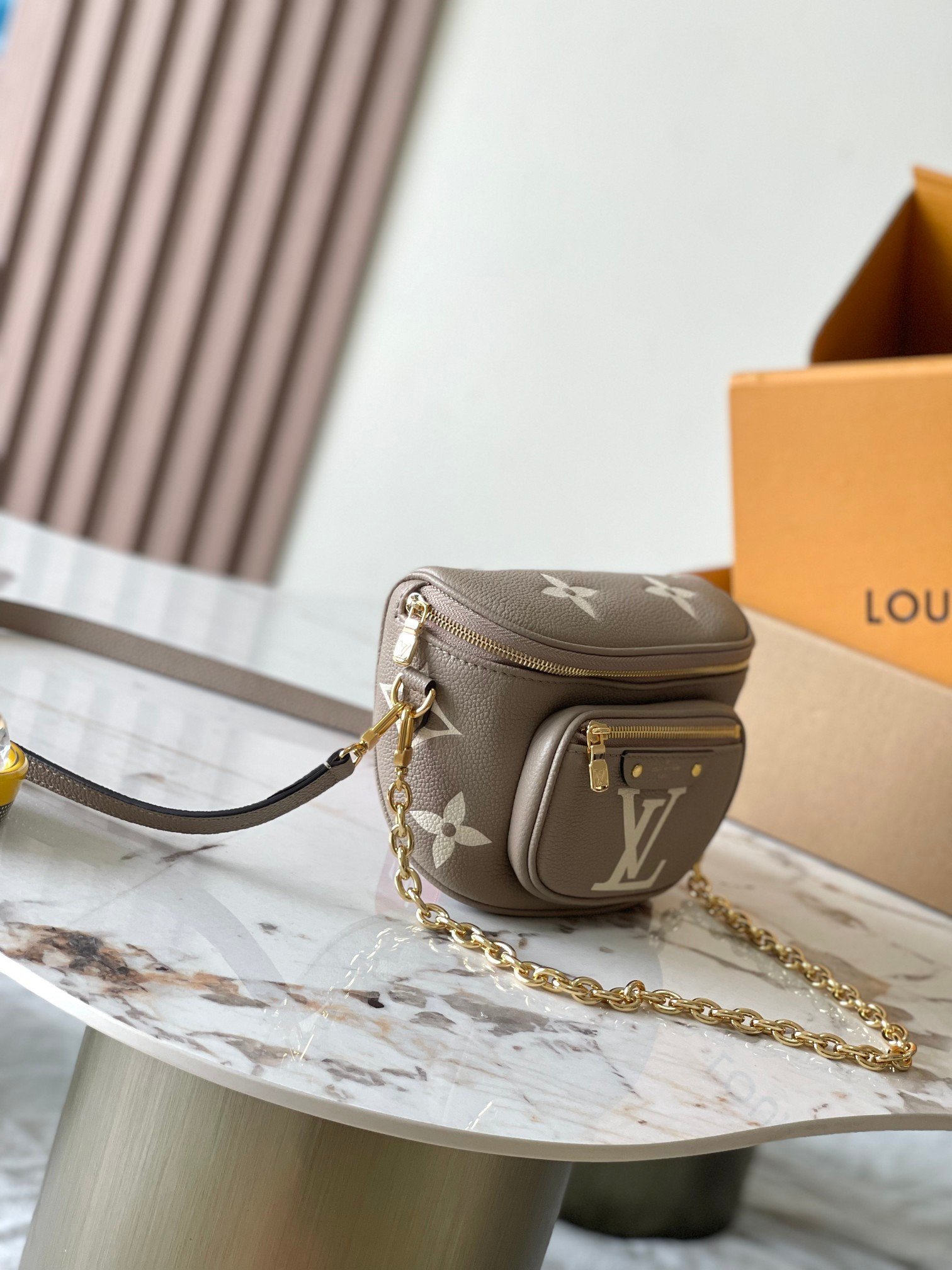 The Mini Bumbag is reinterpreted in supple, grained Monogram Empreinte leather, which is embossed with the Monogram pattern. This on-trend piece features a removable, adjustable strap and a removable, gold-tone chain for different looks and carry options. It has a zipped main compartment and a zipped front pocket with an embossed leather tag.