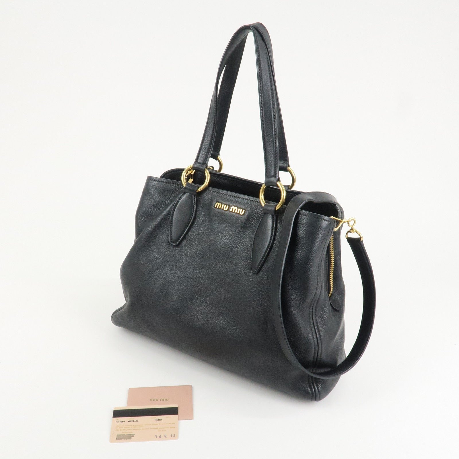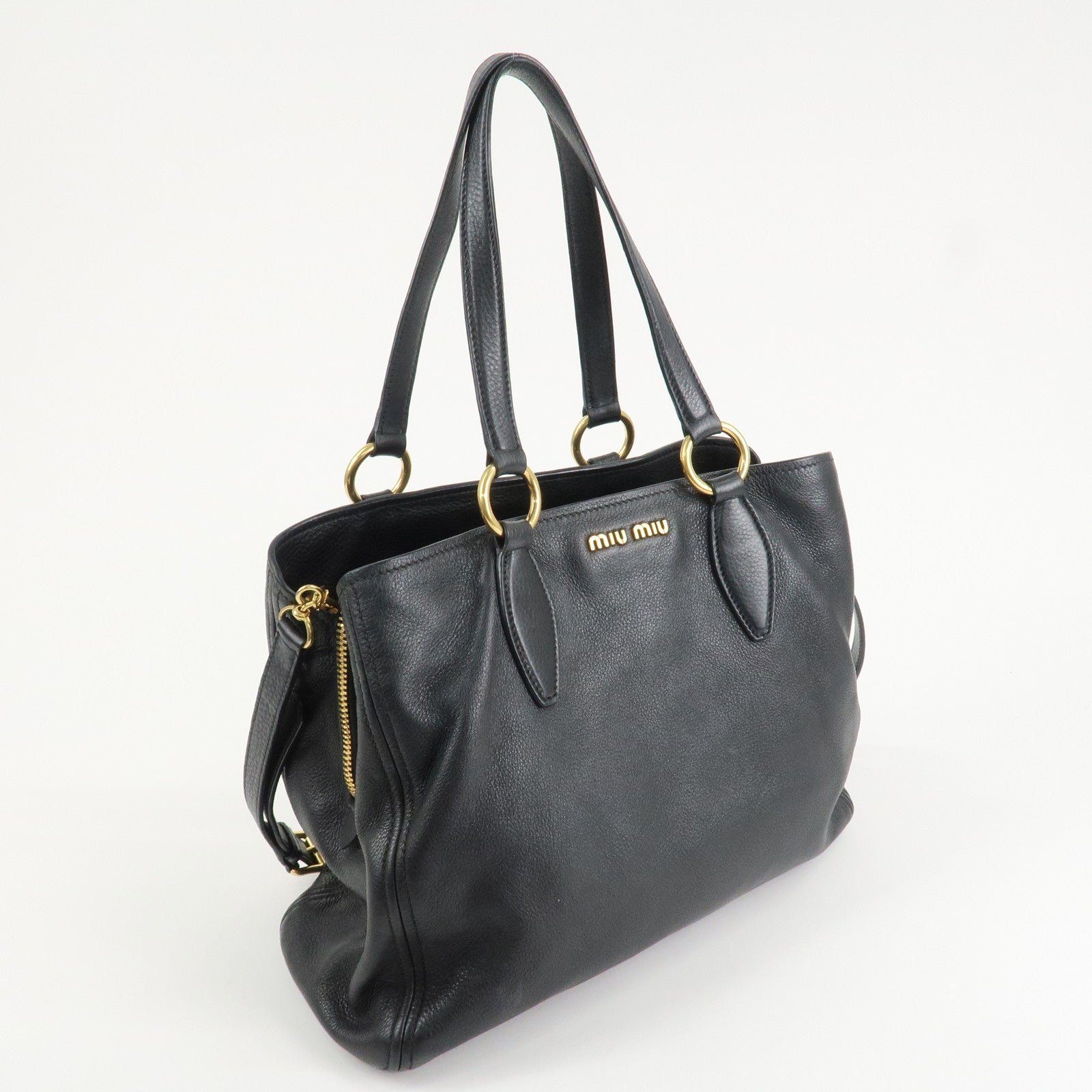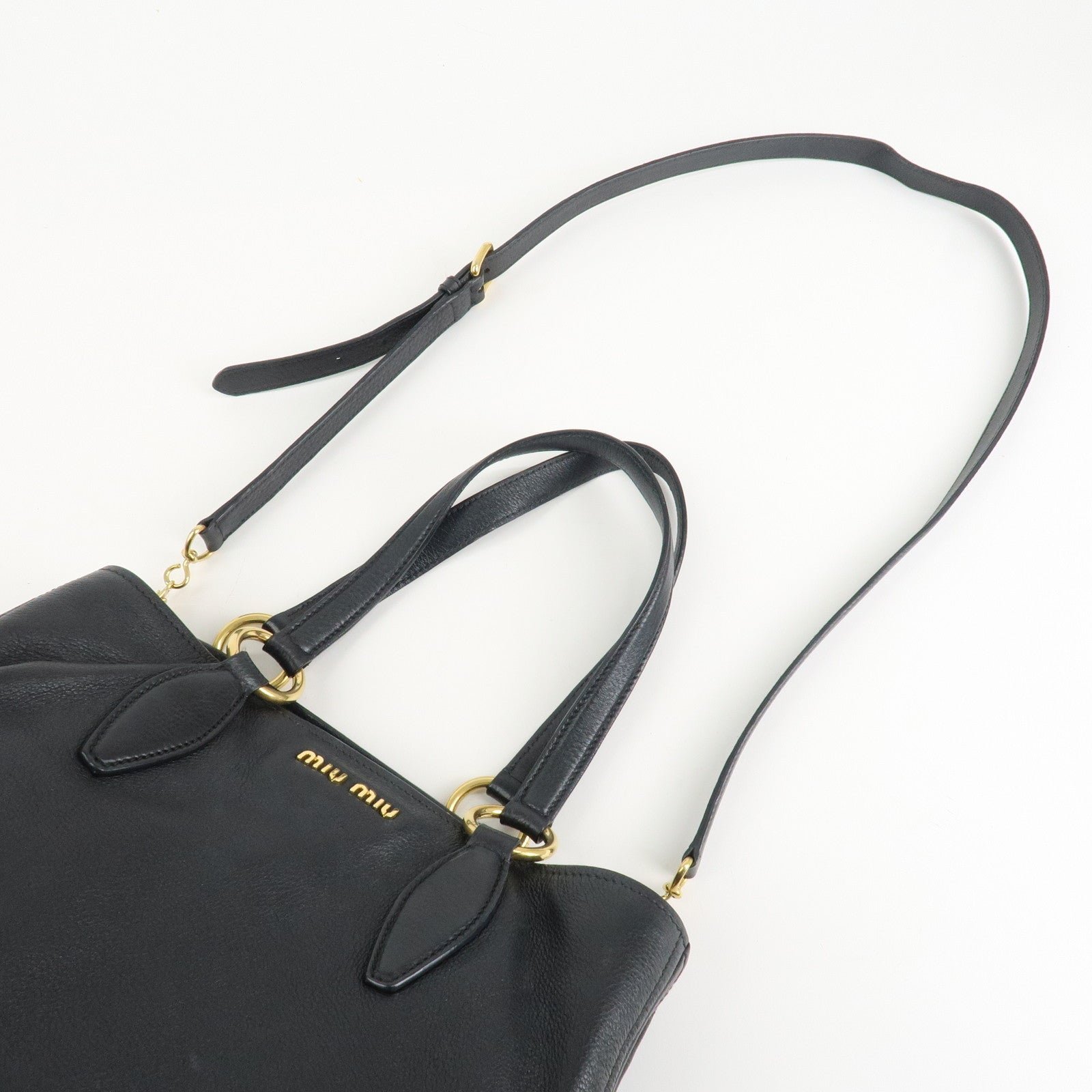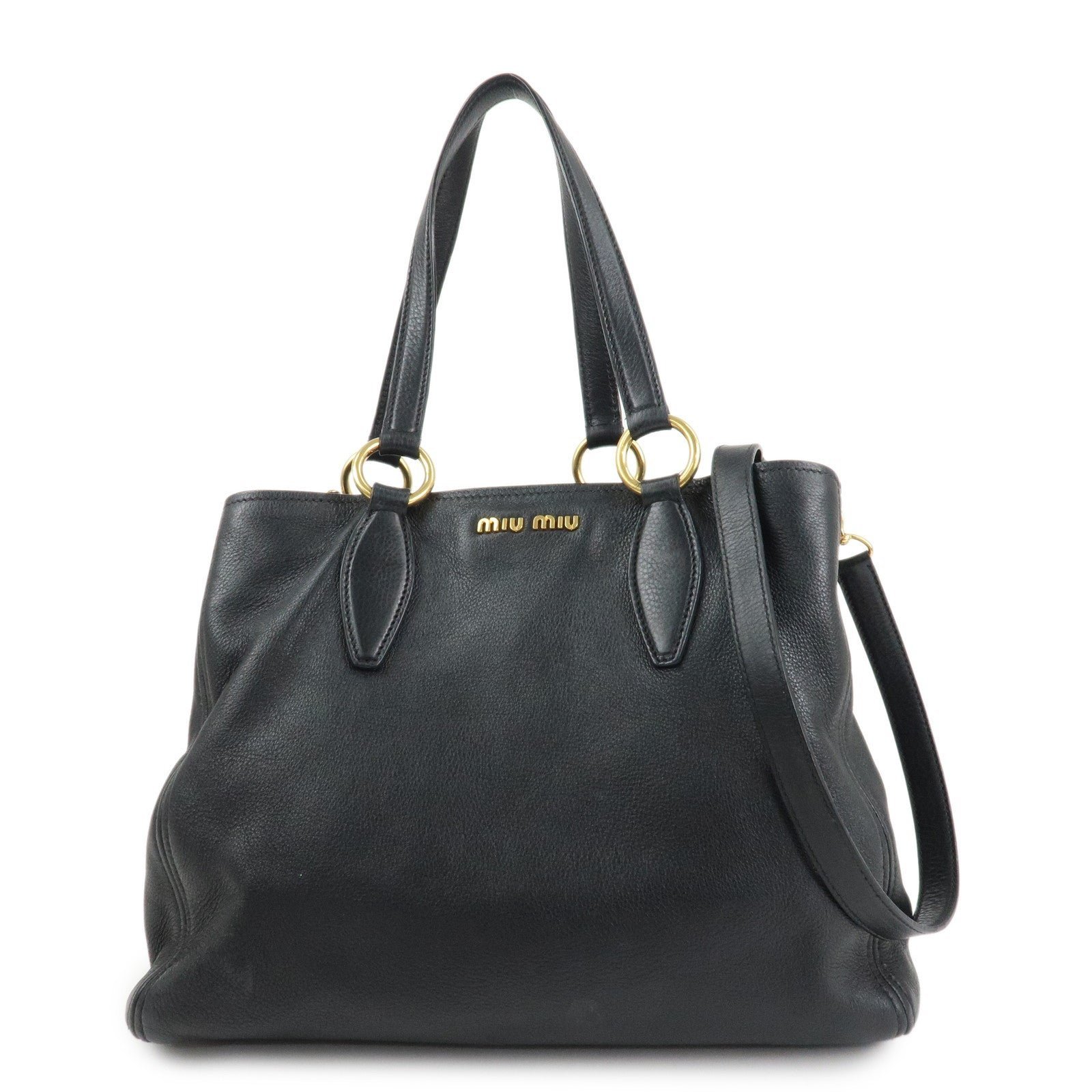MIU MIU Logo Leather 2Way Bag Tote Bag Shoulder Bag Black RR1901 Used