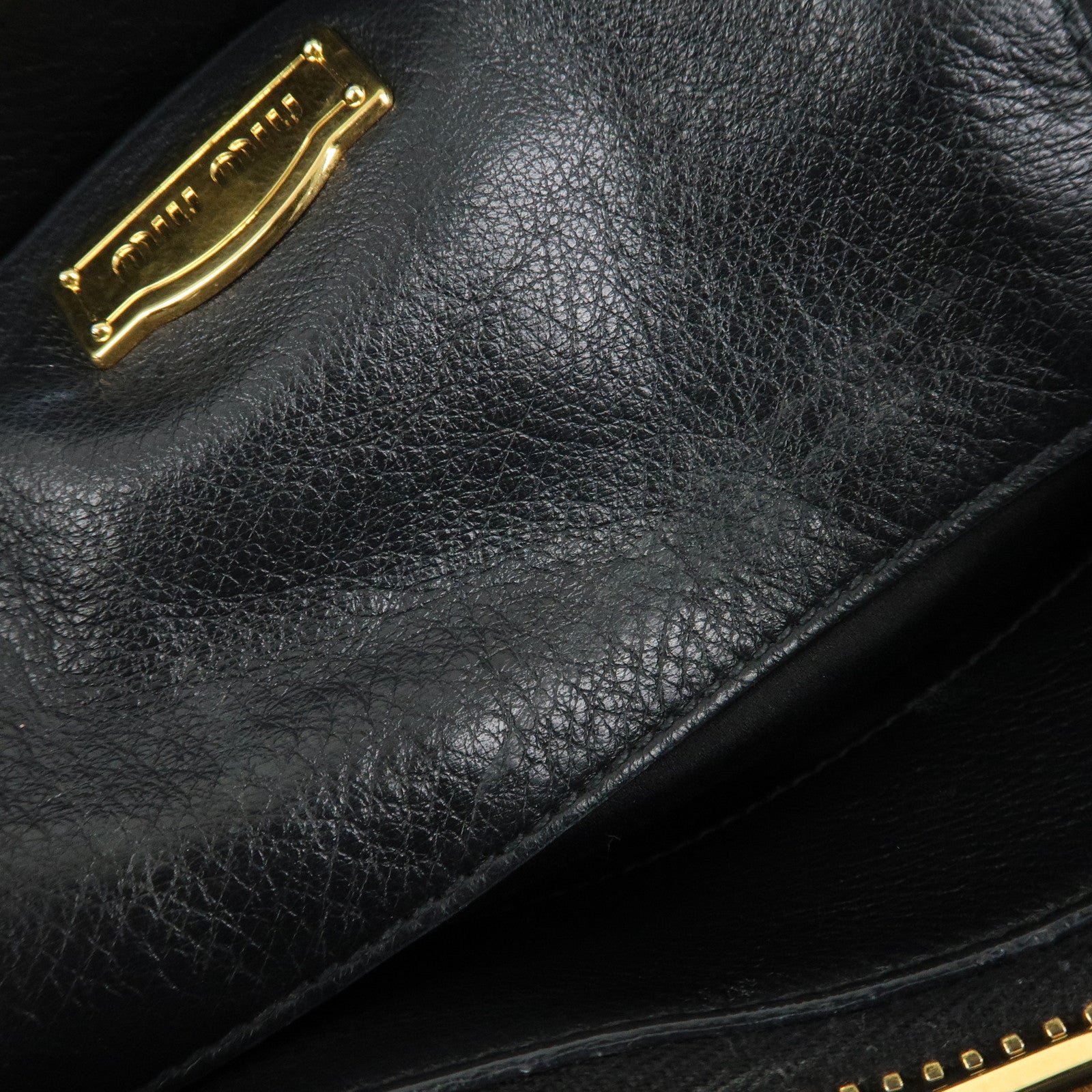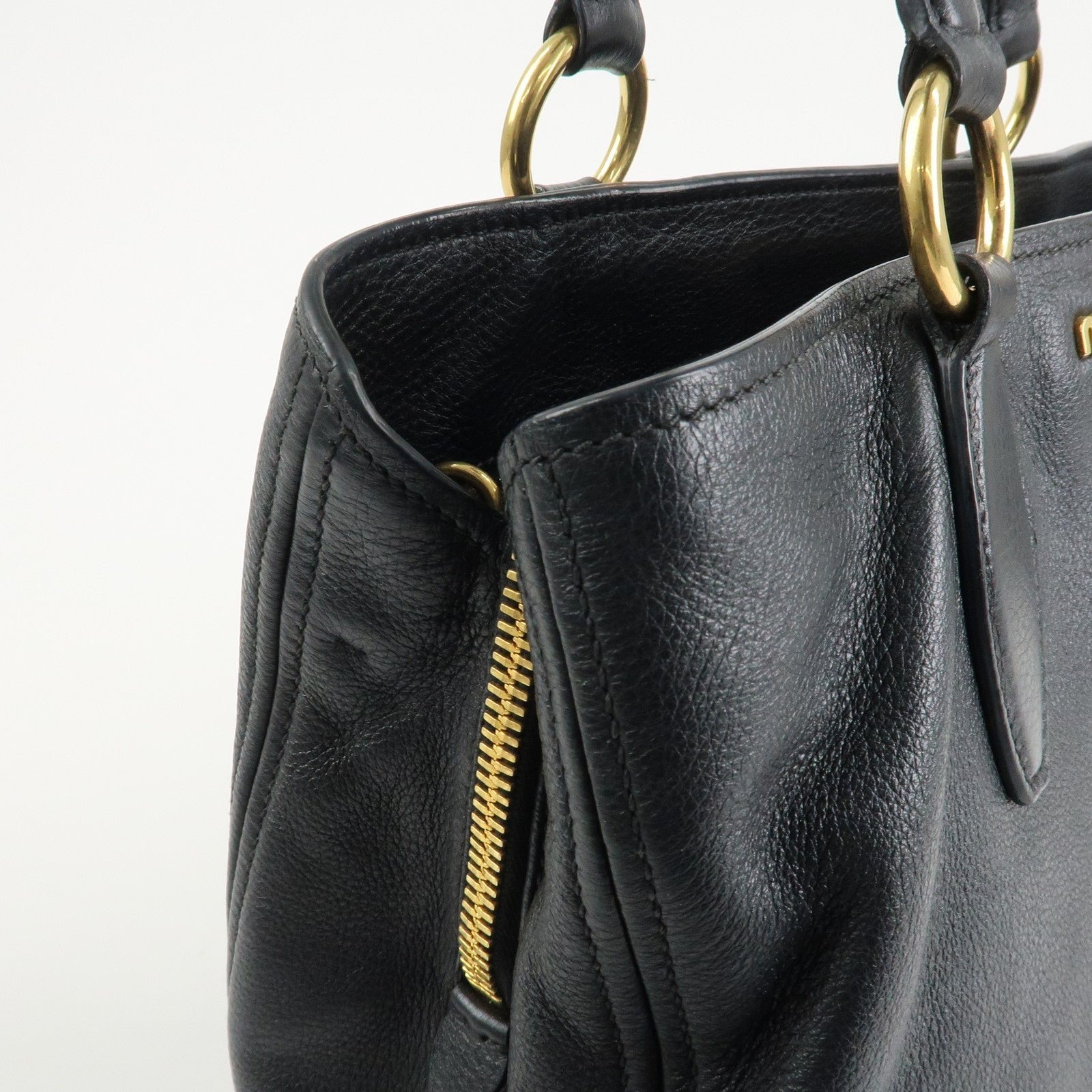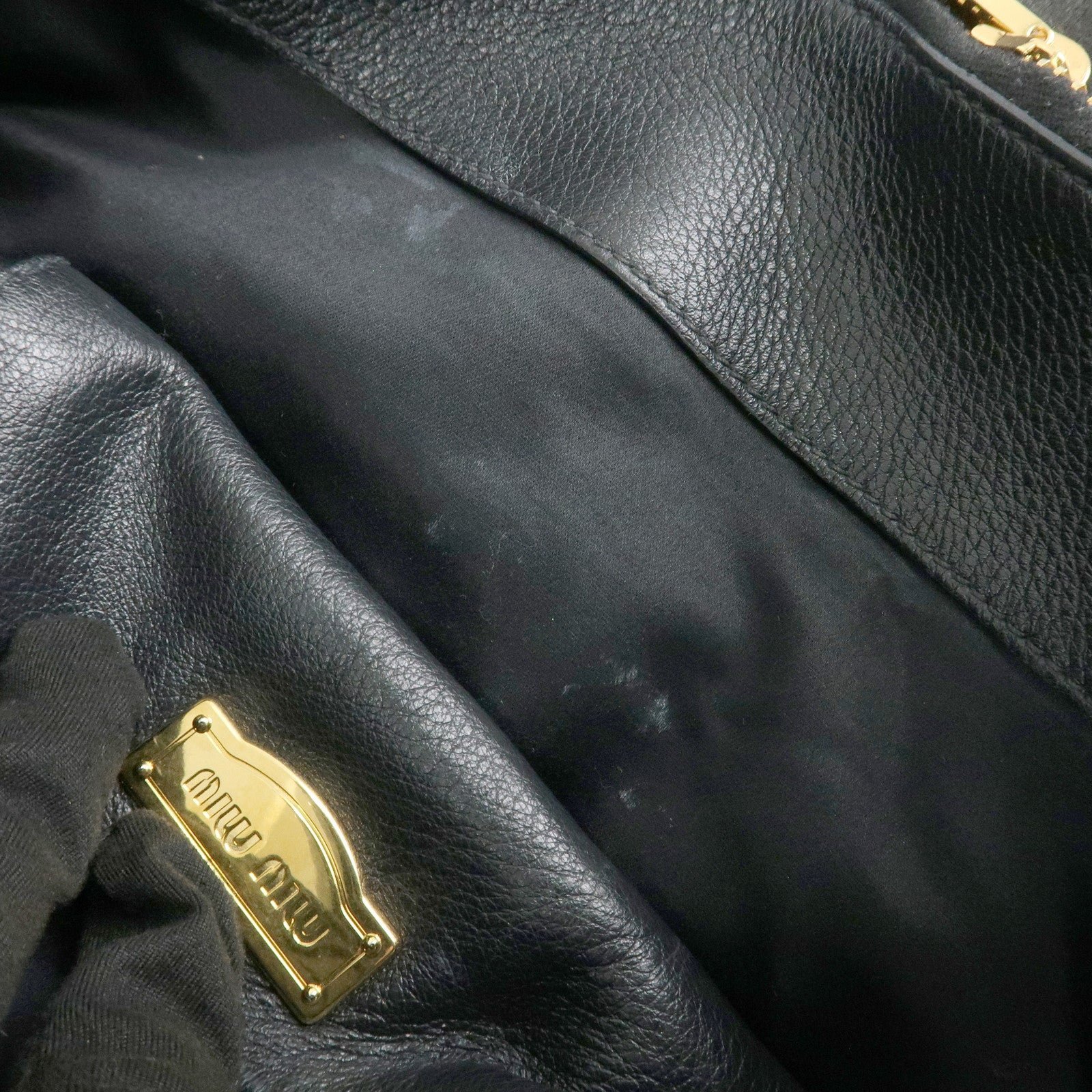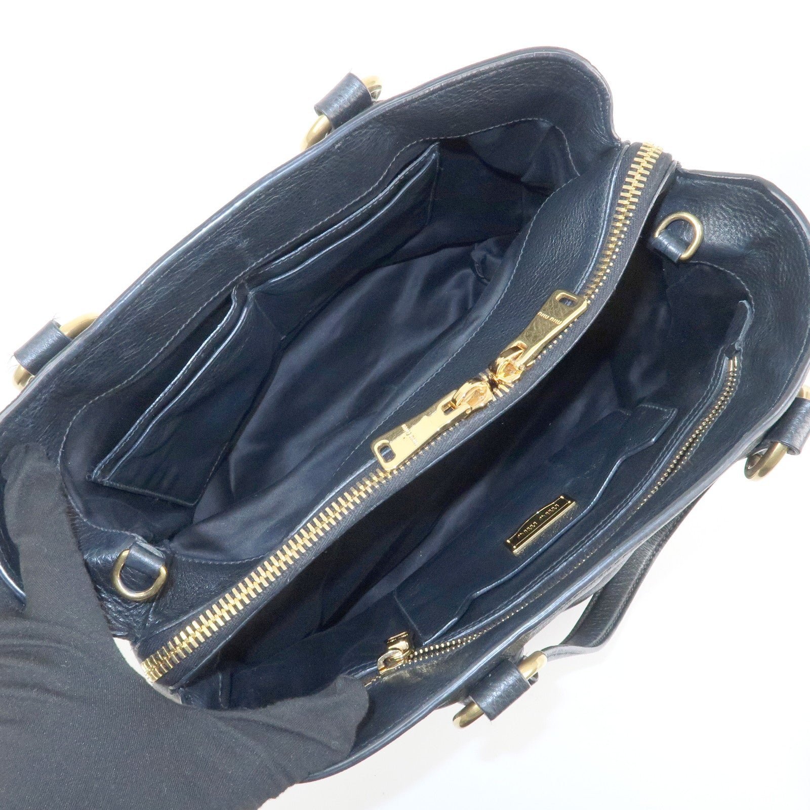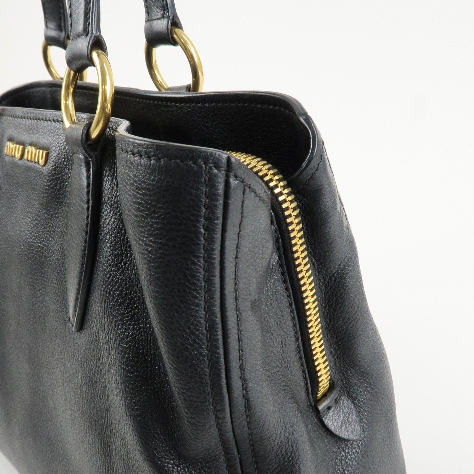 MIU MIU Logo Leather 2Way Bag Tote Bag Shoulder Bag Black RR1901 Used