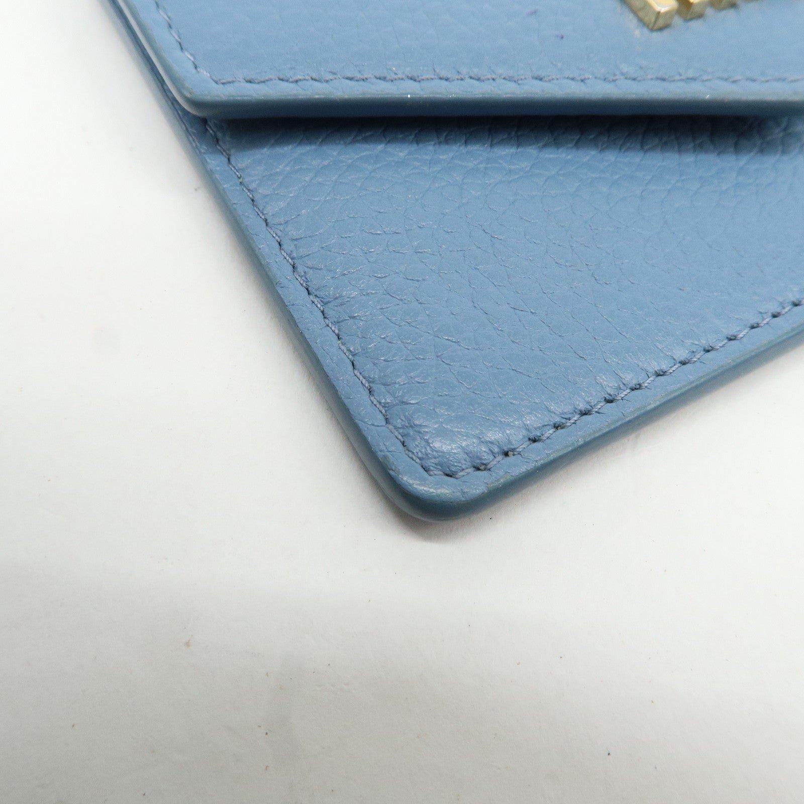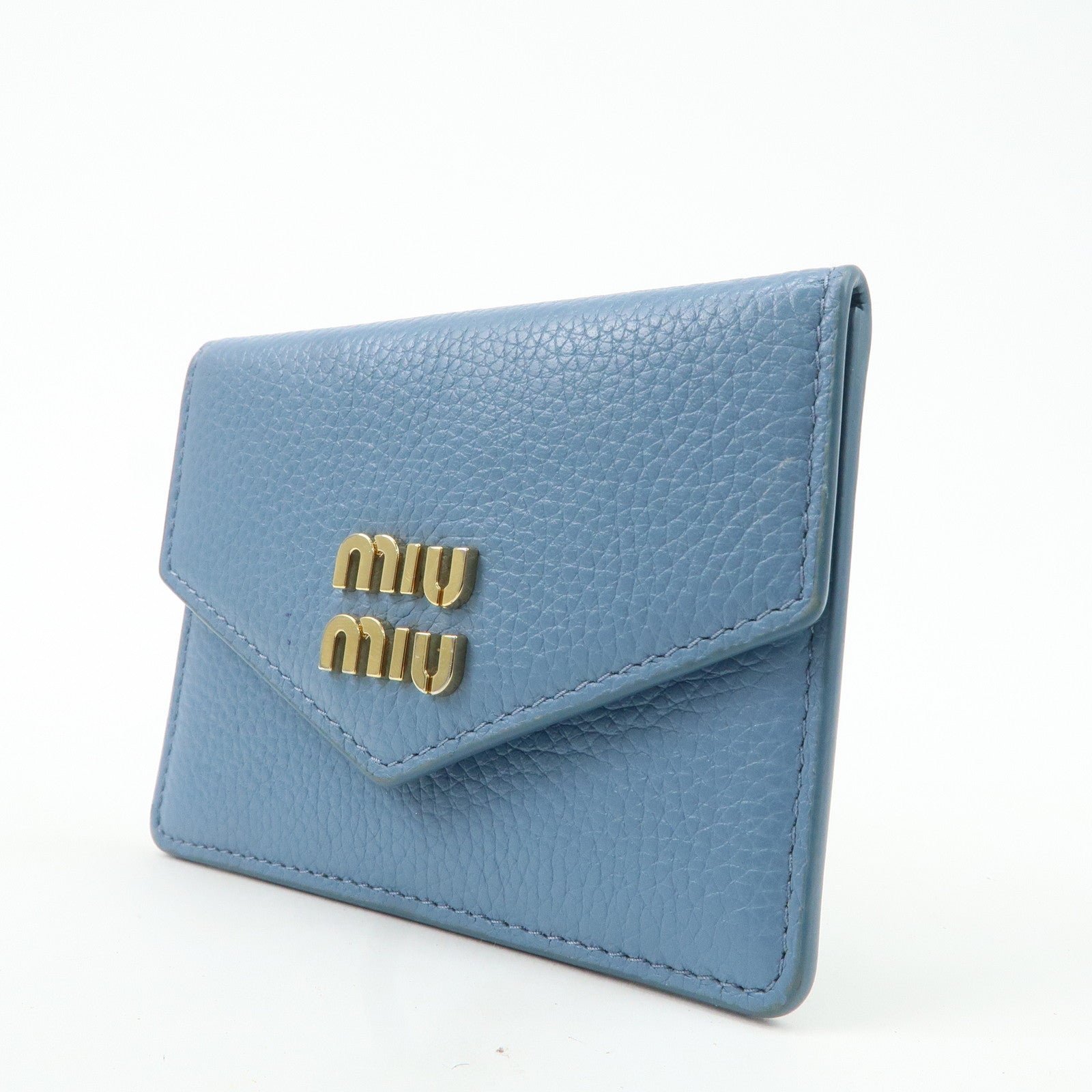 MIU MIU Vitello Dino Leather Card Case Light Blue 5MF031 Used
