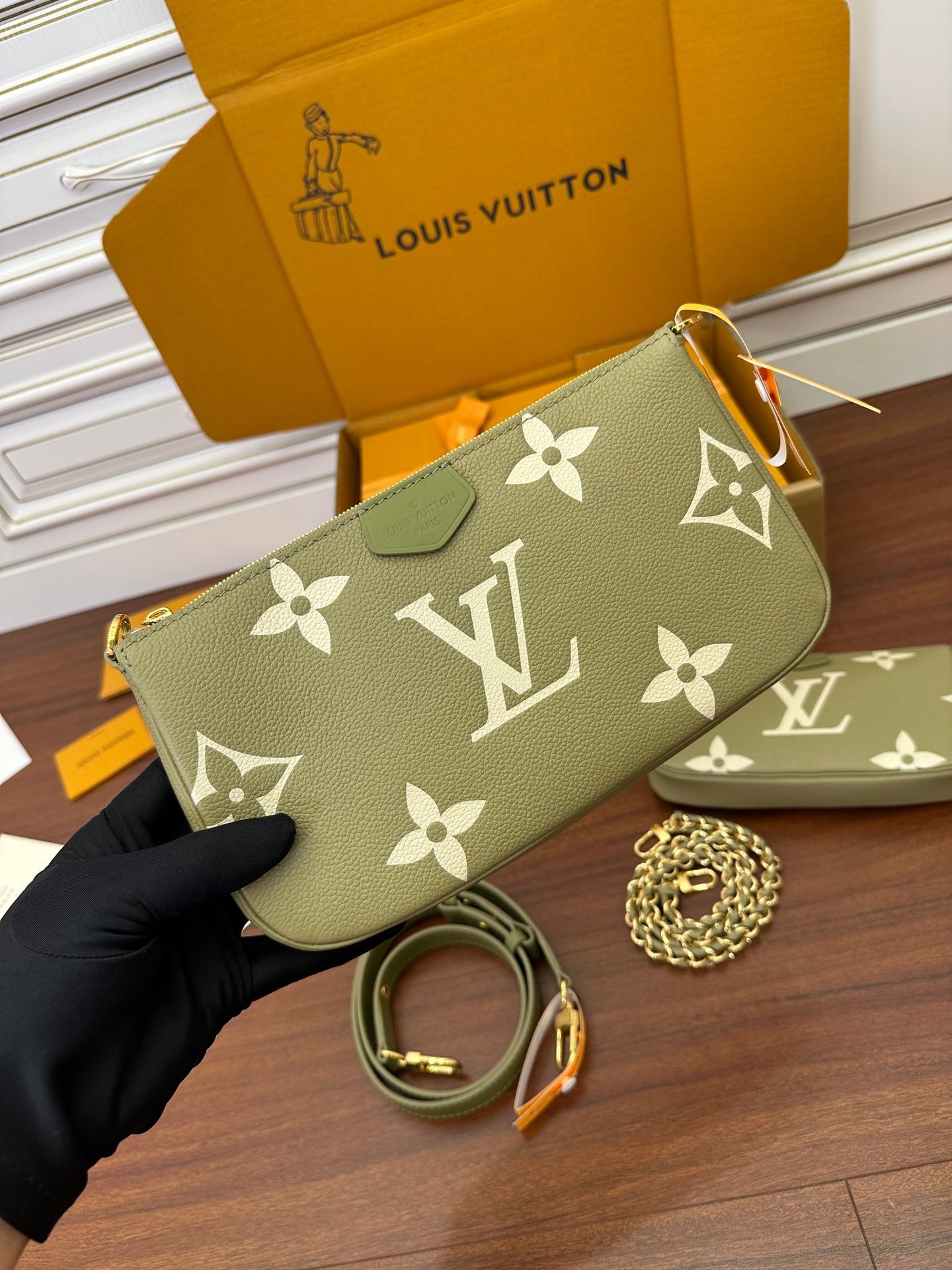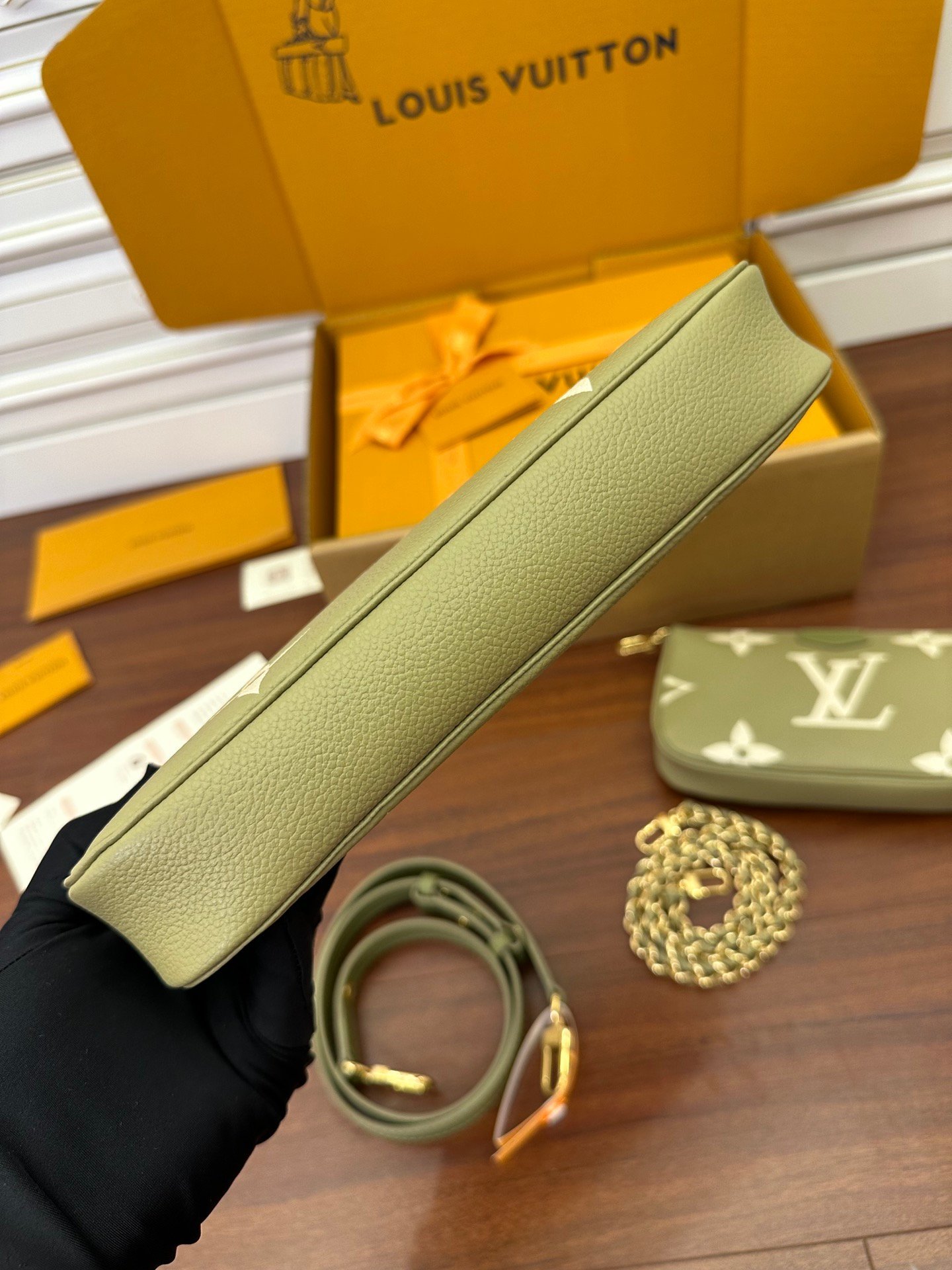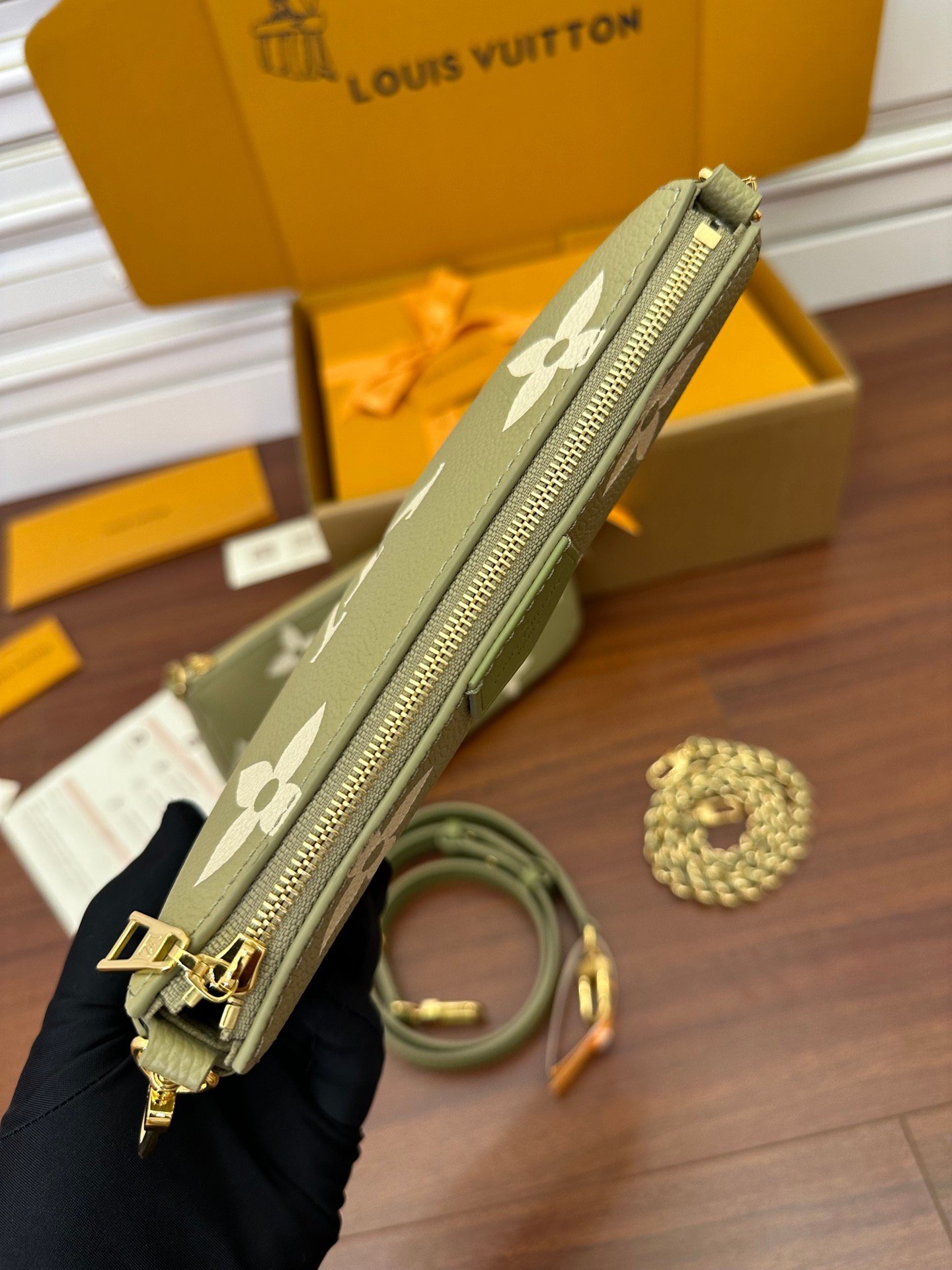 This Multi Pochette Accessoires cross-body bag is made from two-tone Monogram Empreinte leather, with the oversized Monogram motif embossed and then printed onto the leather. This two-in-one bag is made from two removable pouches, connected to each other with gold-color hardware. Thanks to a chain and a strap, both removable, this bag becomes very versatile.