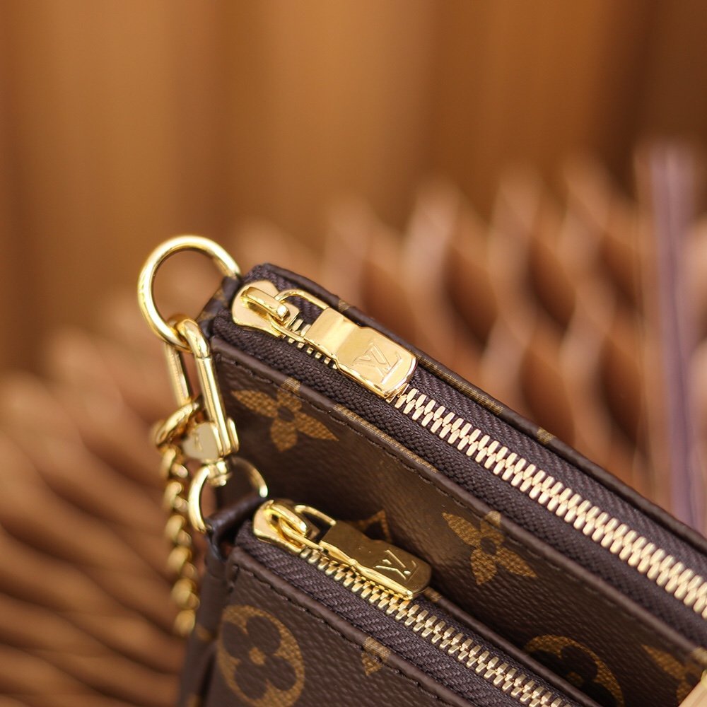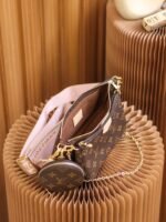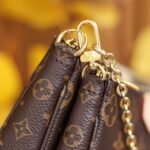 The Multi Pochette Accessoires is a hybrid cross-body bag with multiple pockets and compartments that brings together a Pochette Accessoires, a Mini Pochette Accessoires and a Round Coin Purse. Fashioned from Monogram canvas with a mini Monogram pattern on the sides of the two pochettes, it has both a removable gold-tone chain and an adjustable Louis Vuitton inscribed Jacquard strap for multiple carrying options.
