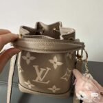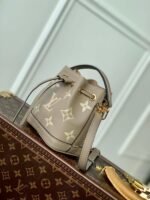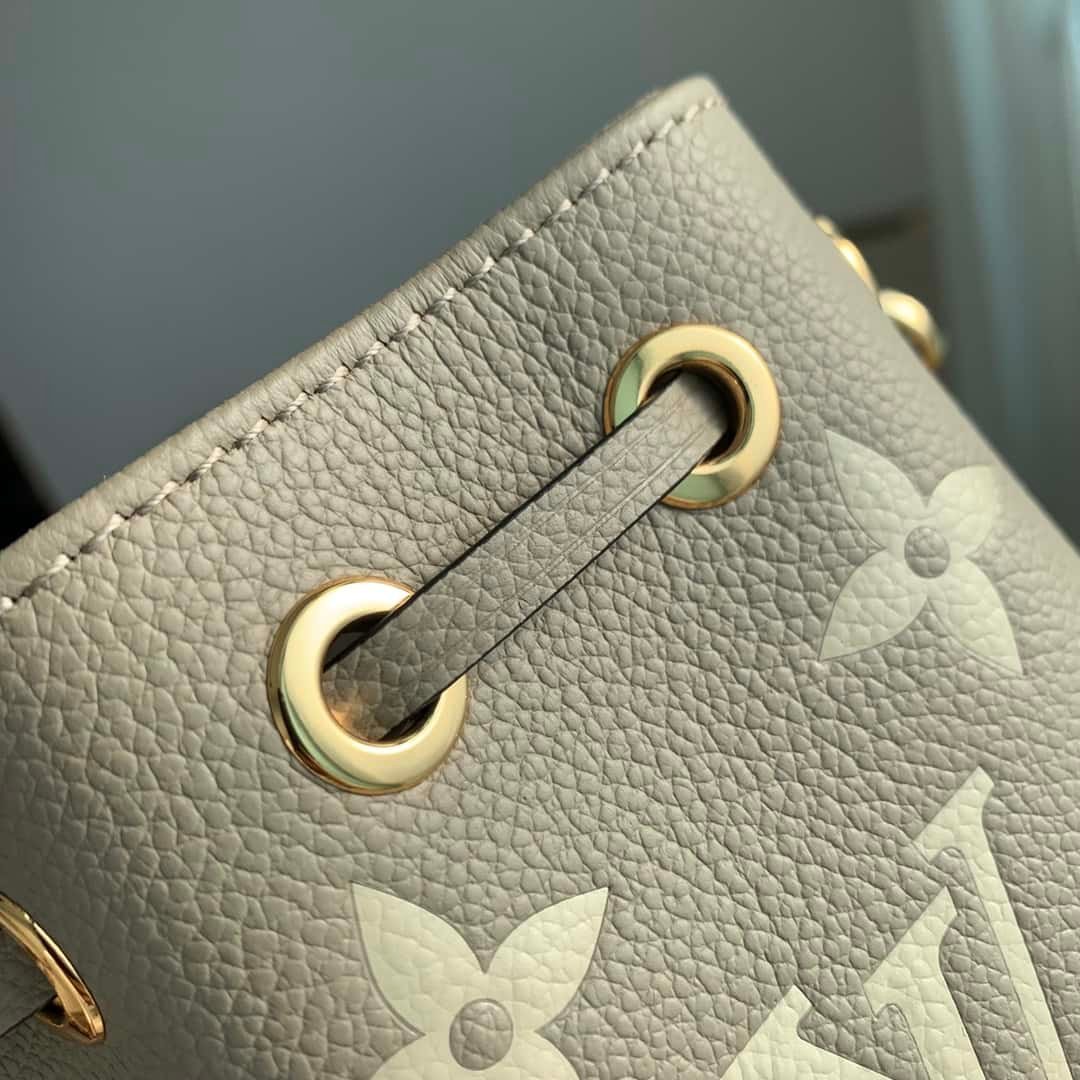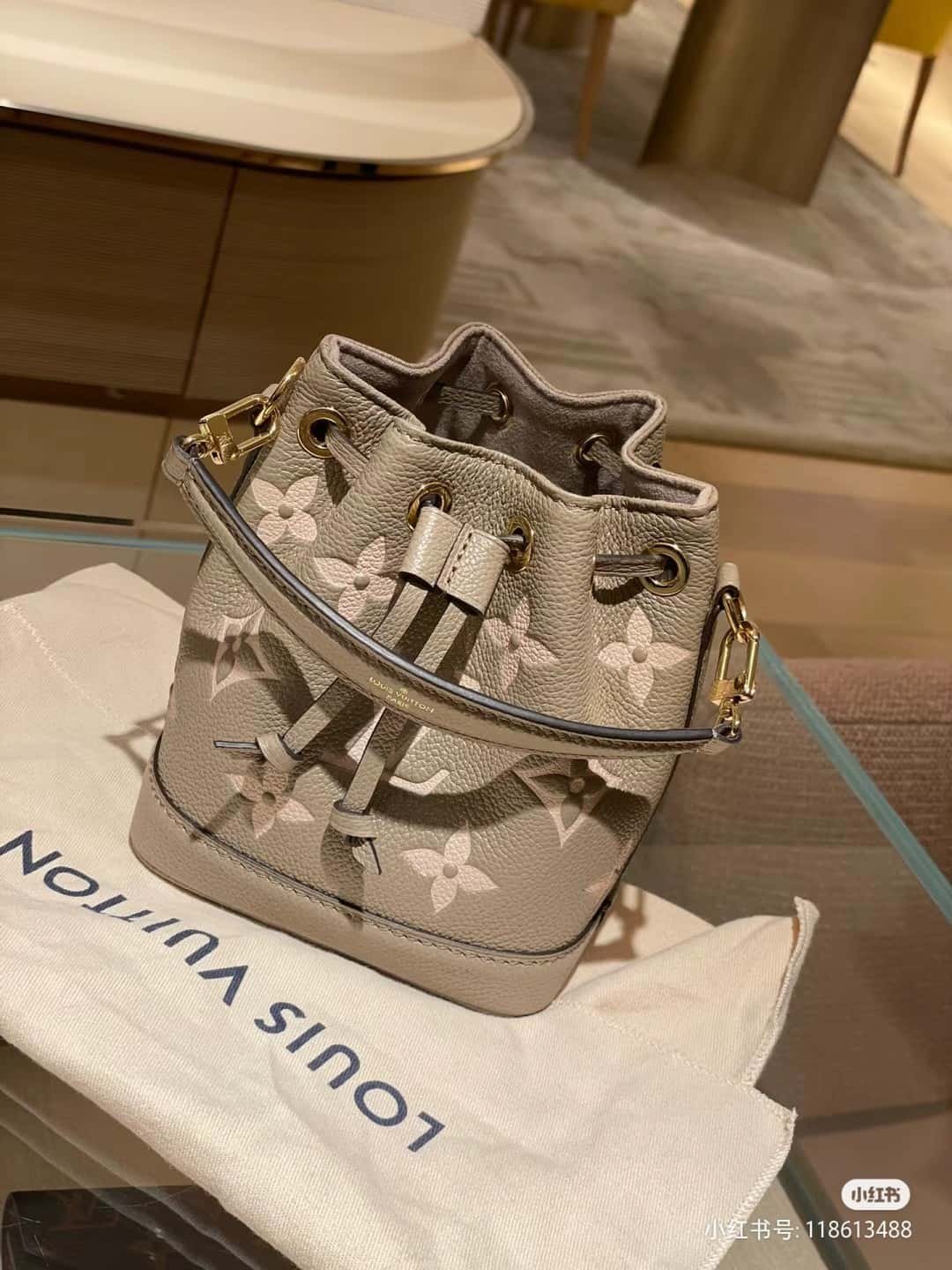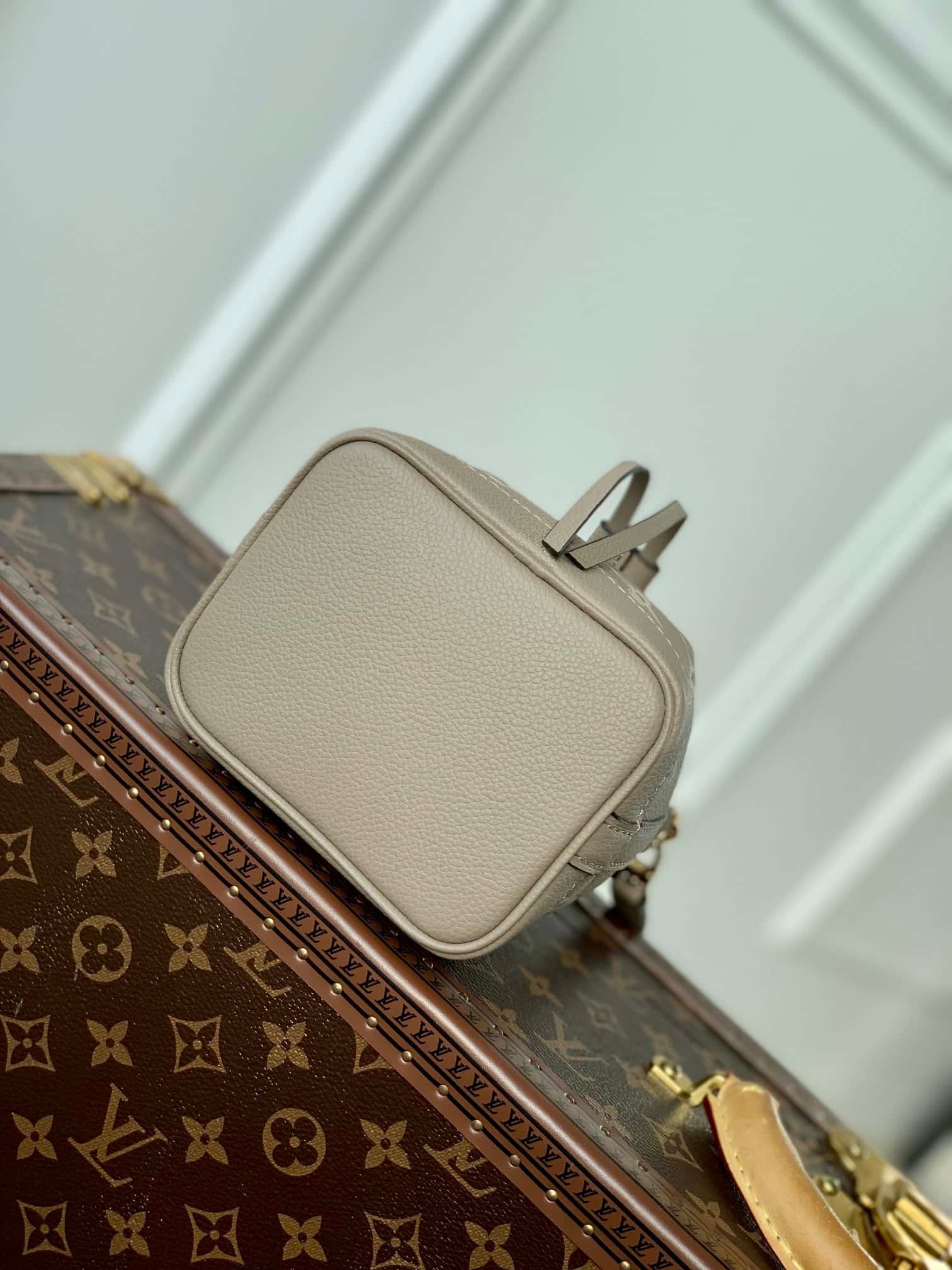 This bicolor version of the Nano Noé is crafted from supple Monogram Empreinte leather, embossed with the Monogram pattern. This miniature replica of the iconic Noé bag is a stylish way to carry everyday essentials. In addition to its practical drawstring closure, it features a removable handle and a removable, adjustable shoulder strap for different carry options.