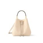 The House’s emblematic bucket bag, the NéoNoé MM, is fashioned from luminous cream-color Monogram Empreinte leather, making it stylish no matter the season. The cream-color microfiber lining and Monogram Flowers and LVs discretely embossed into the leather bring understated charm. A top handle and leather shoulder strap offer a variety of carry options.