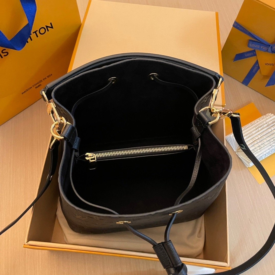 Embossed Monogram Empreinte leather brings a sophisticated feel to the NéoNoé MM bucket bag with its leather drawstring and gold-color eyelets. The body-friendly design and light-weight construction mean it’s comfortable to carry, by hand with the removable top handle or over the shoulder and cross-body, thanks to it detachable and adjustable strap.