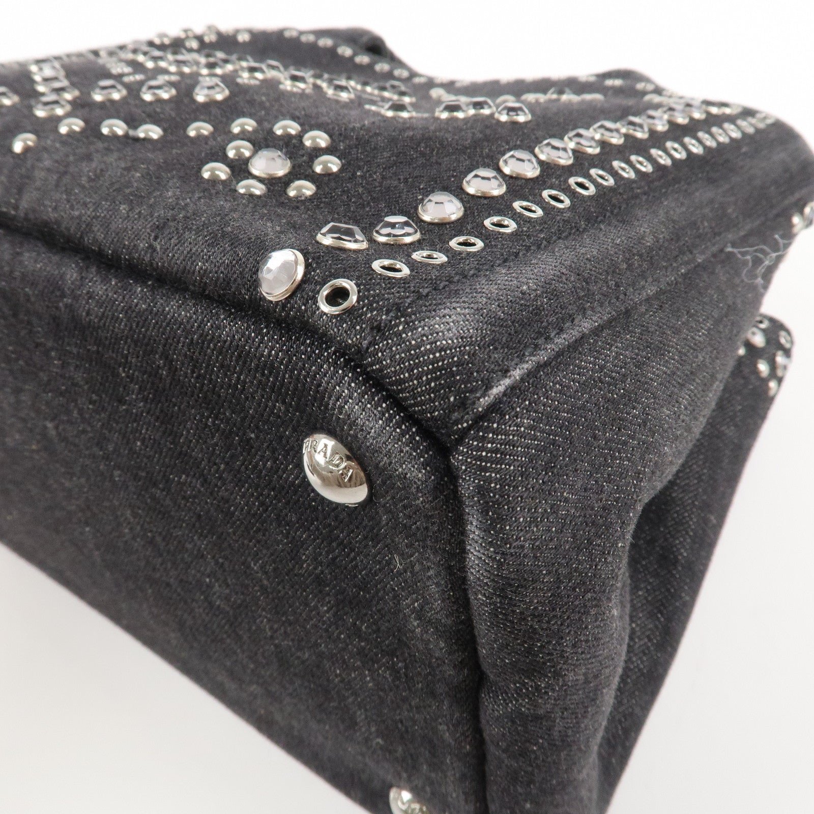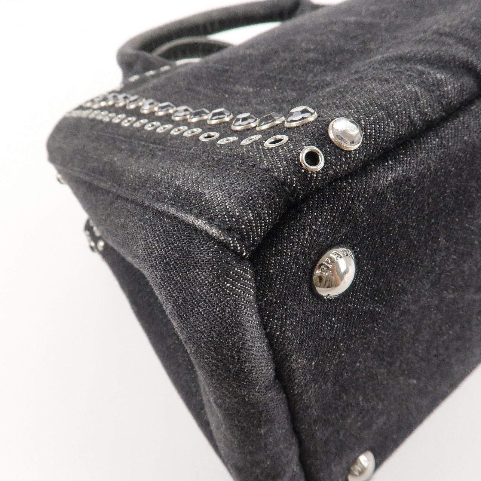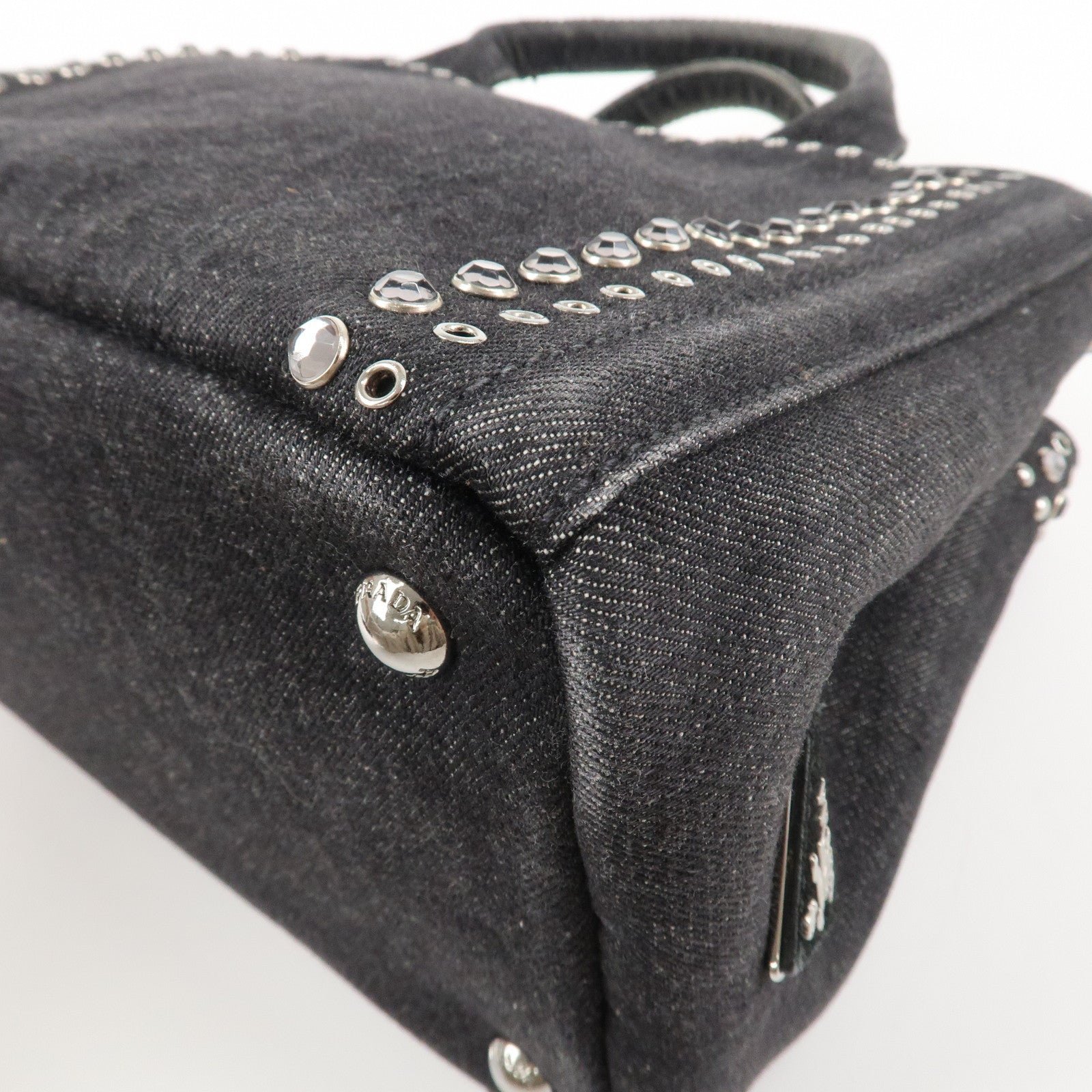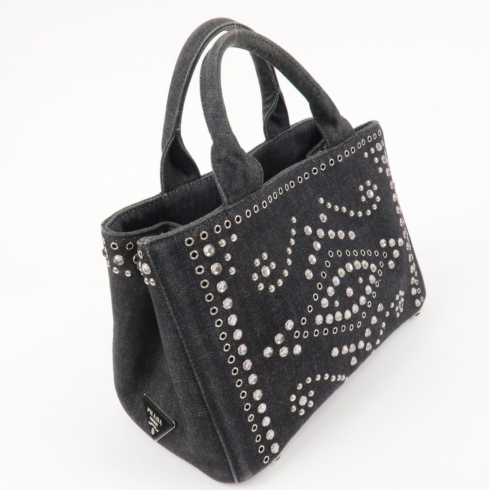 PRADA Canapa Mini Canvas Studs 2Way Shoulder Bag Hand Bag Black B2439G Used
