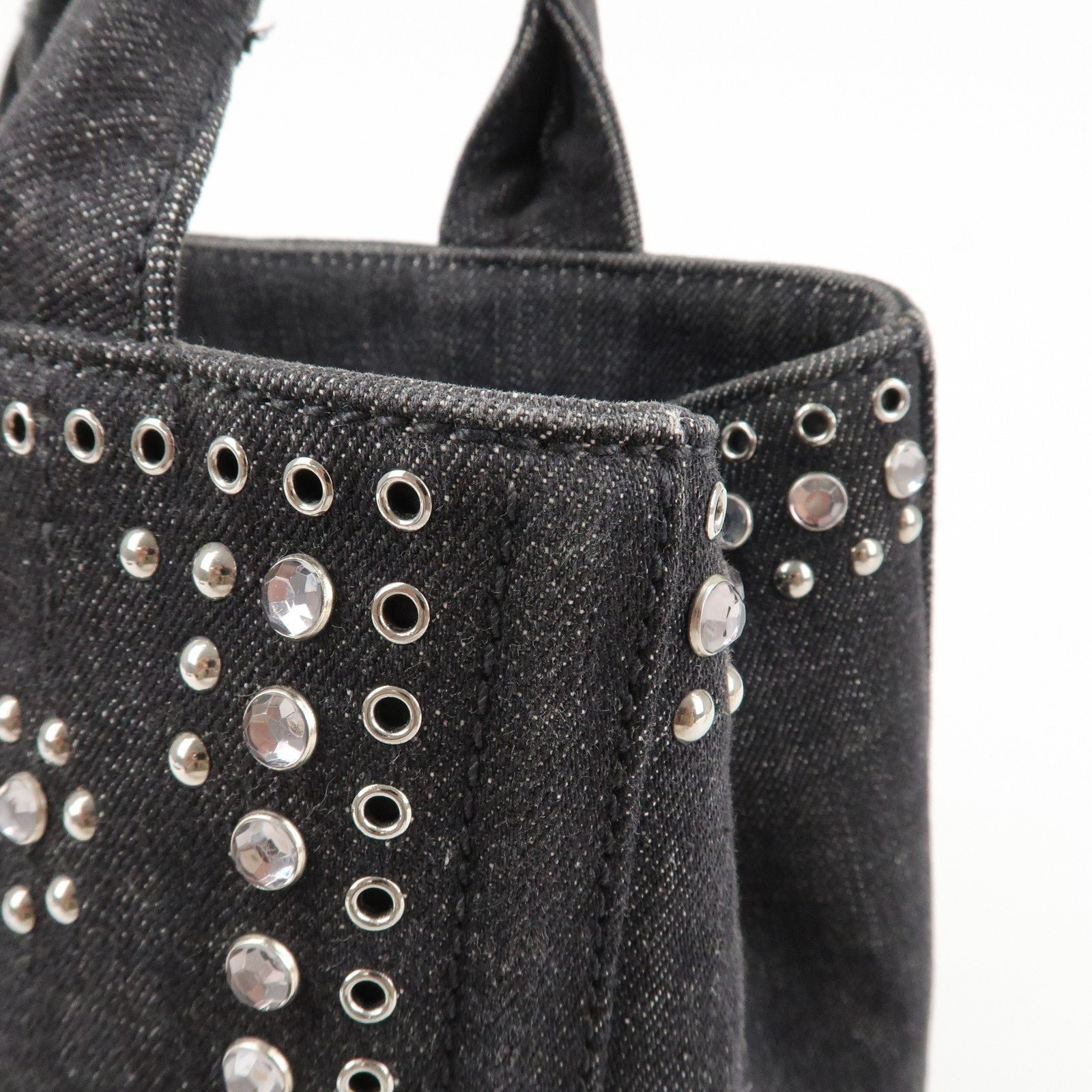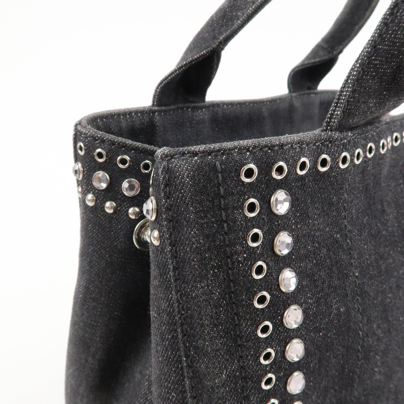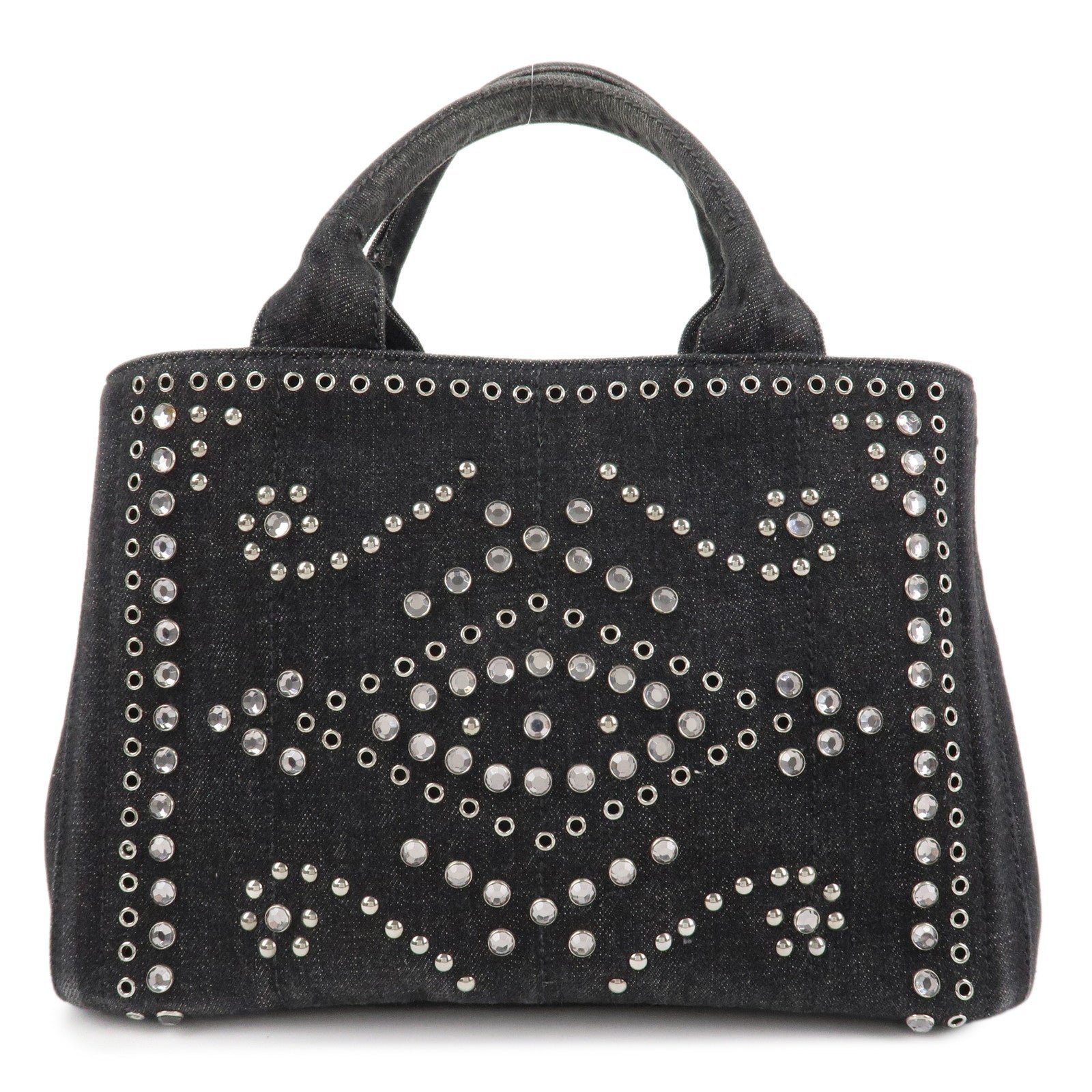 PRADA Canapa Mini Canvas Studs 2Way Shoulder Bag Hand Bag Black B2439G Used