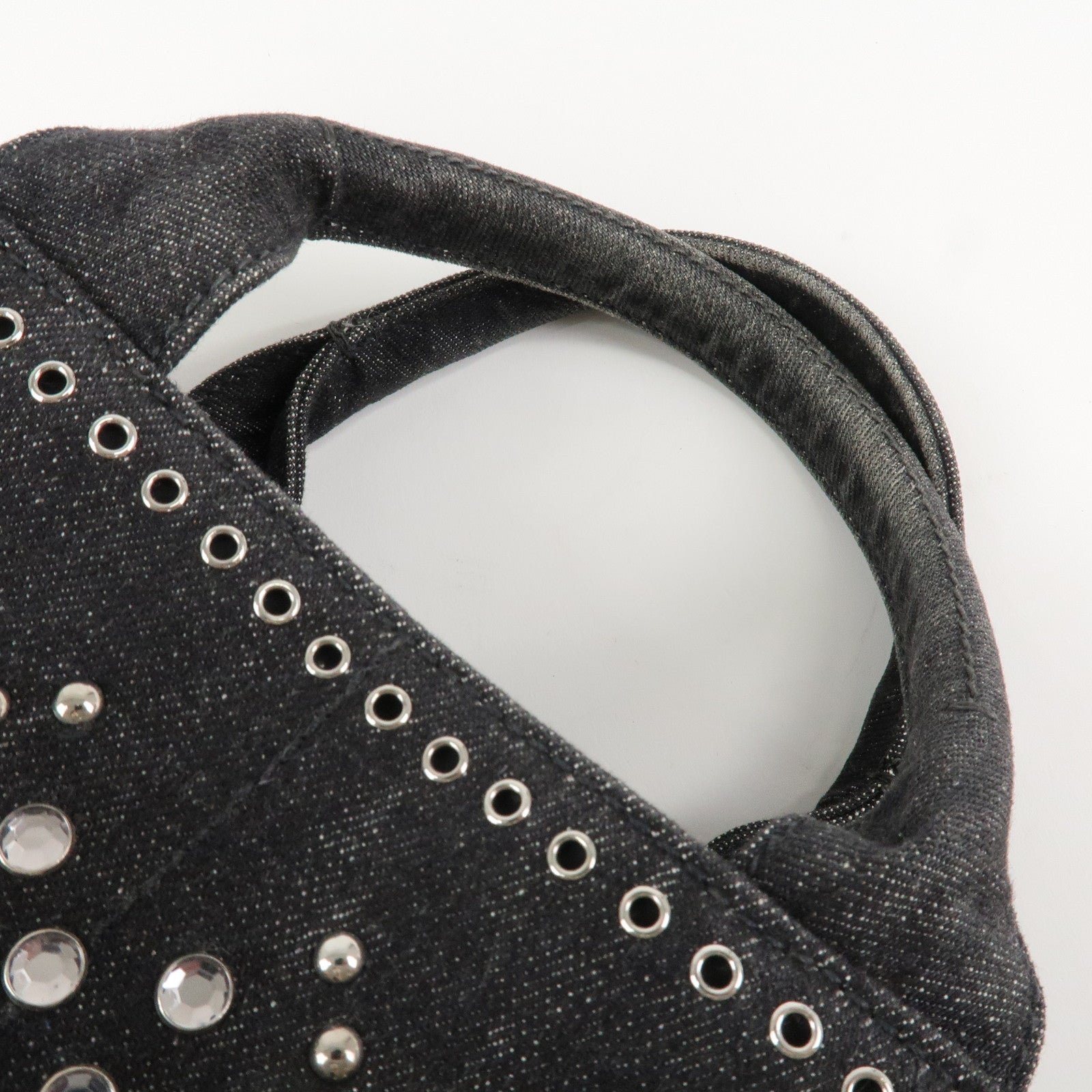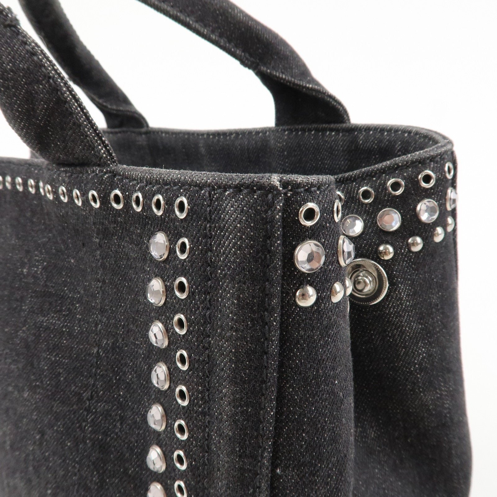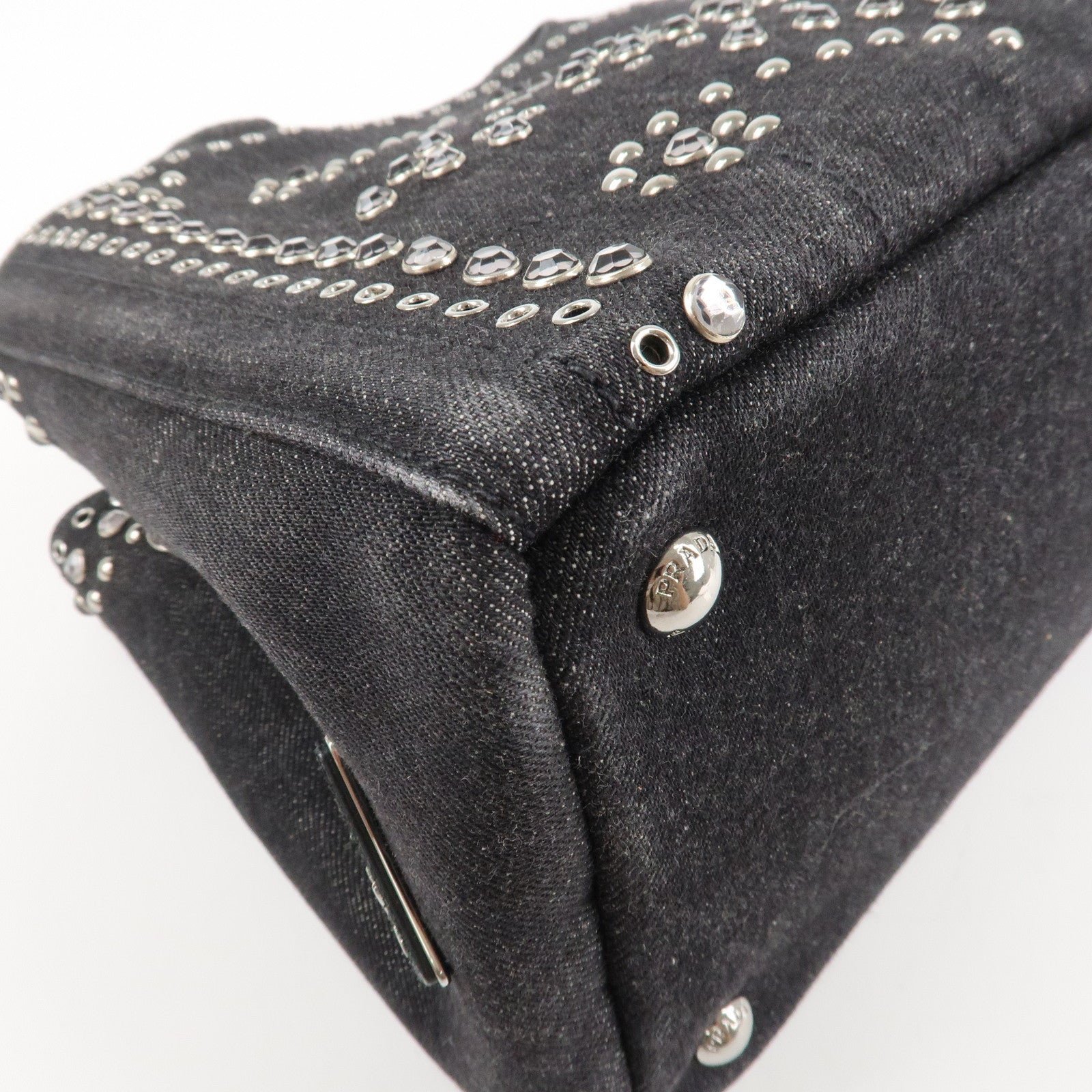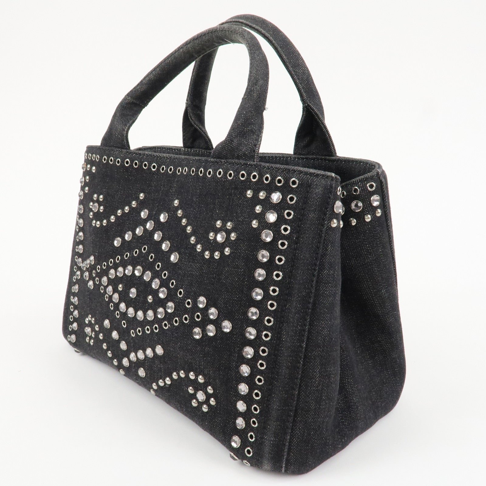 PRADA Canapa Mini Canvas Studs 2Way Shoulder Bag Hand Bag Black B2439G Used