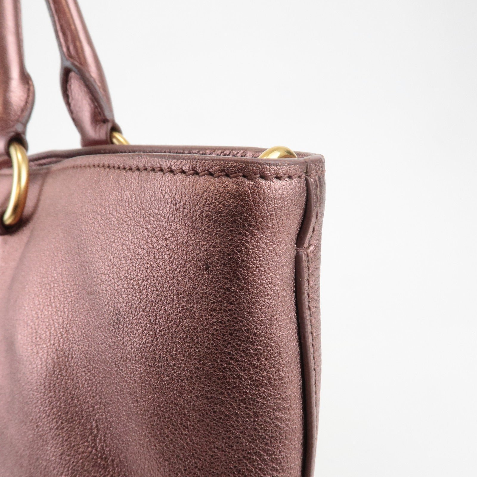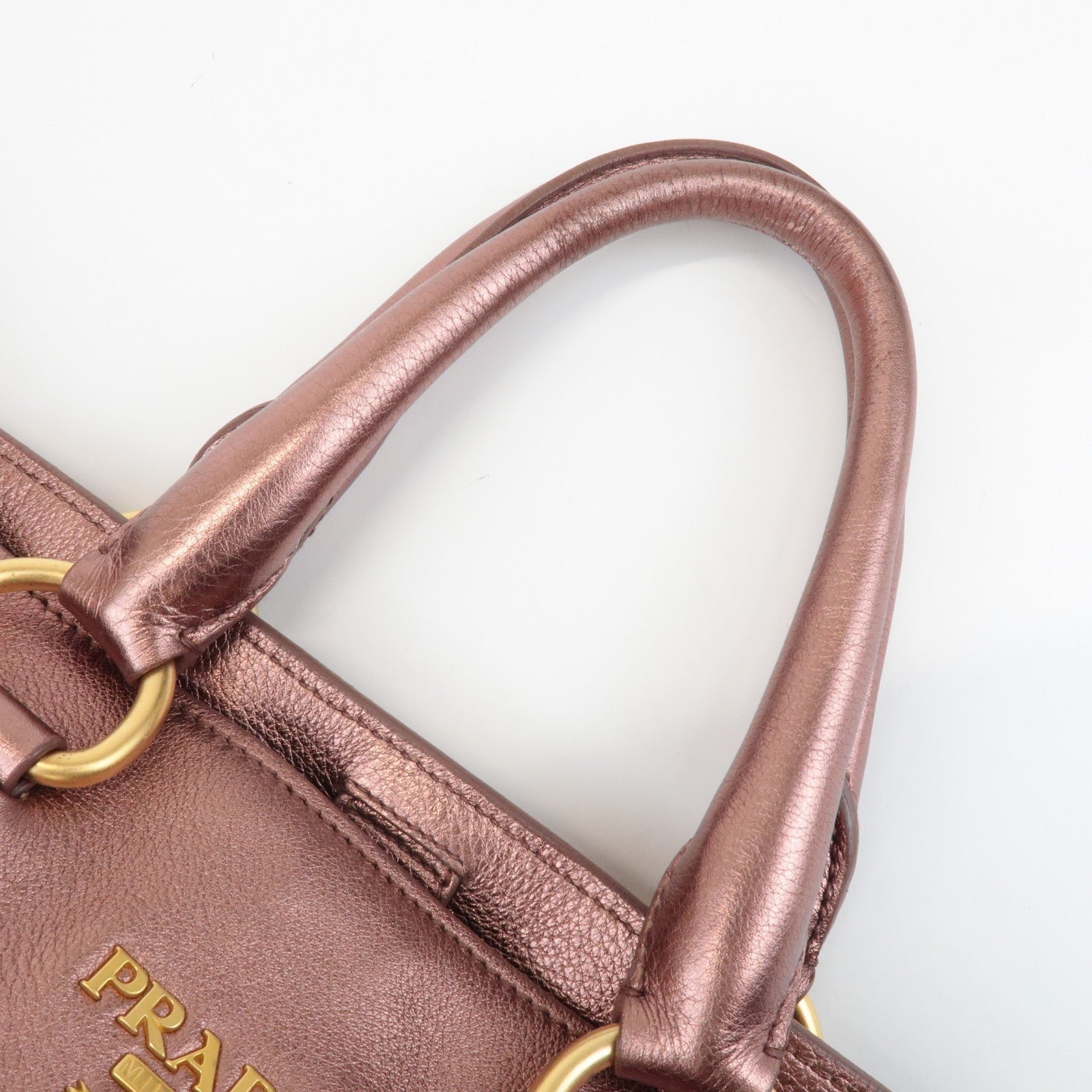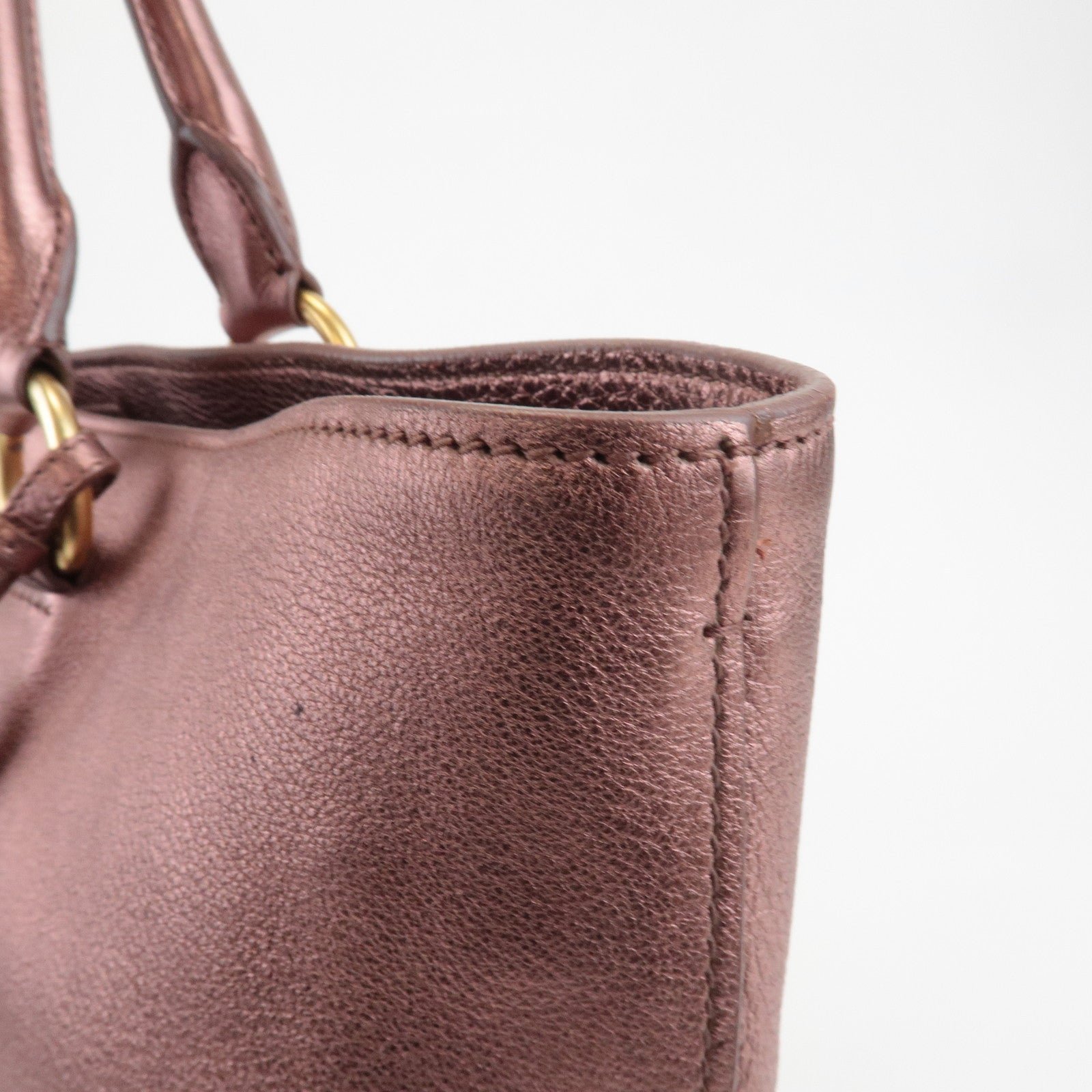 PRADA Leather 2Way Tote Bag Shoulder Bag Metallic Pink BN1713 Used