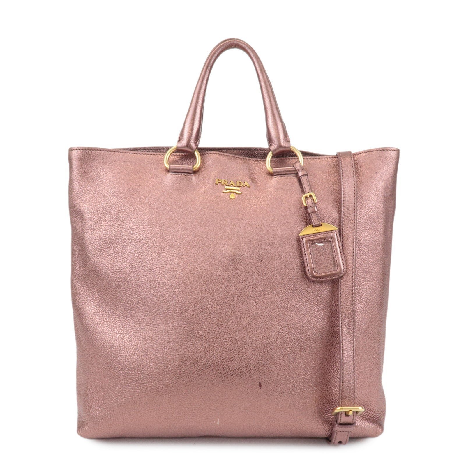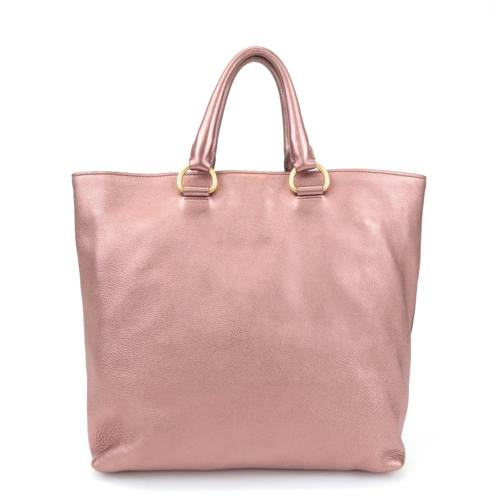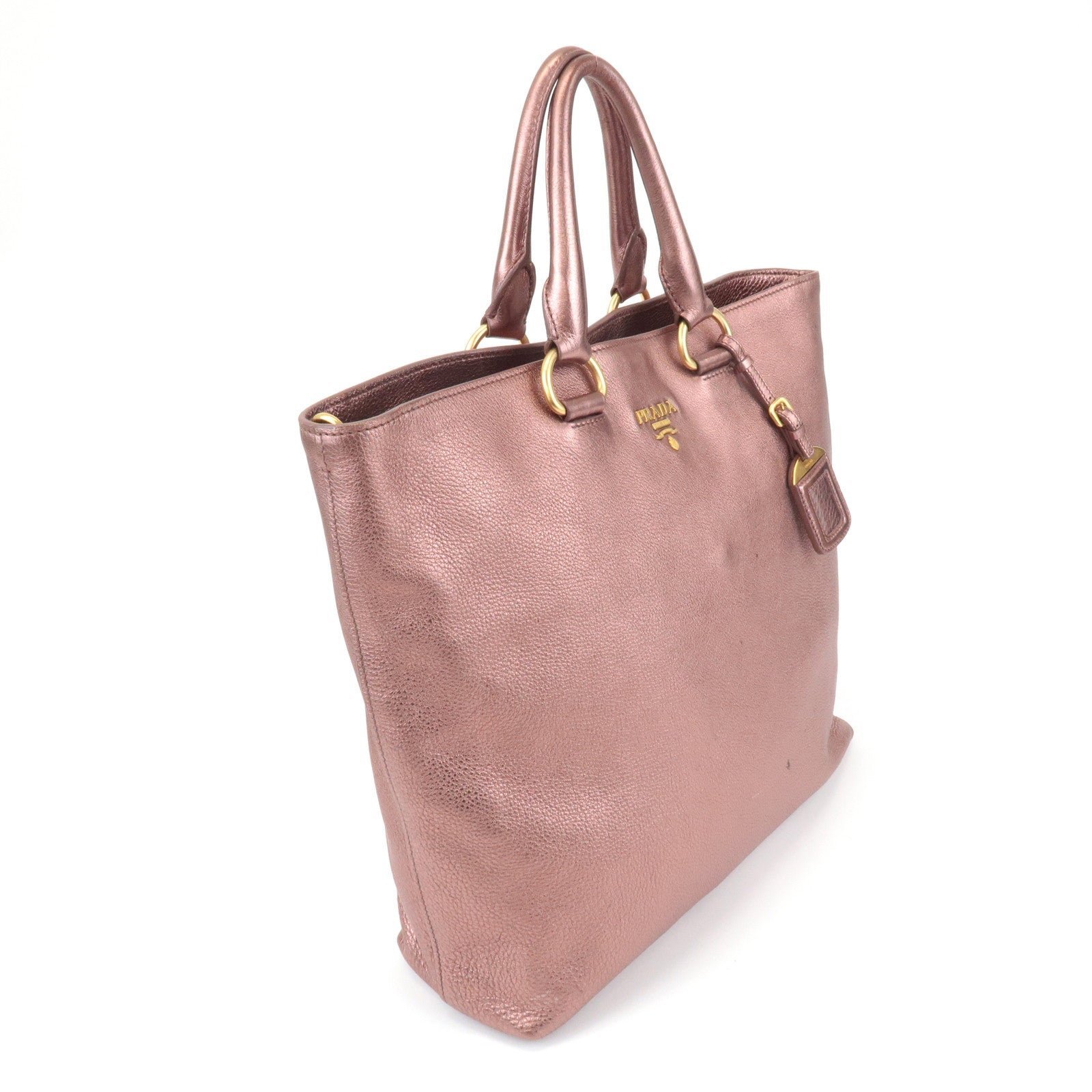 PRADA Leather 2Way Tote Bag Shoulder Bag Metallic Pink BN1713 Used