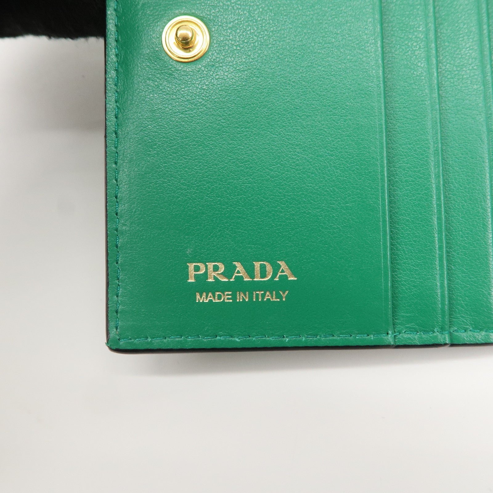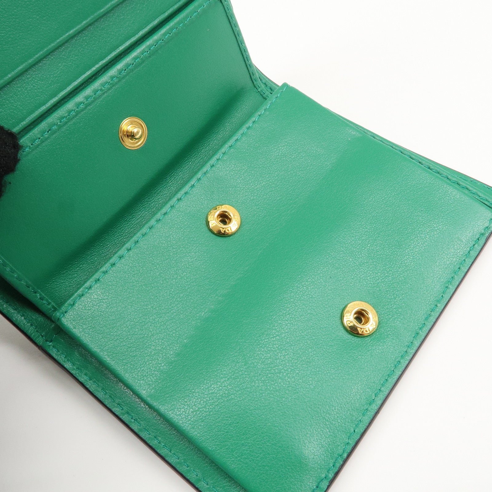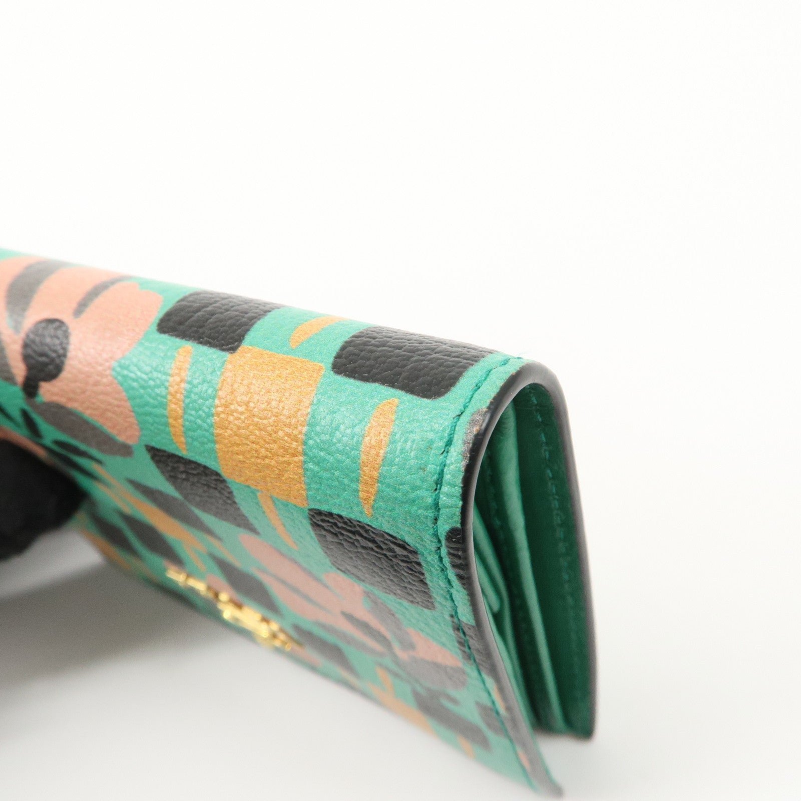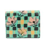 PRADA Leather Compact Wallet Floral Print Green Gold HDW 1MV204 Used