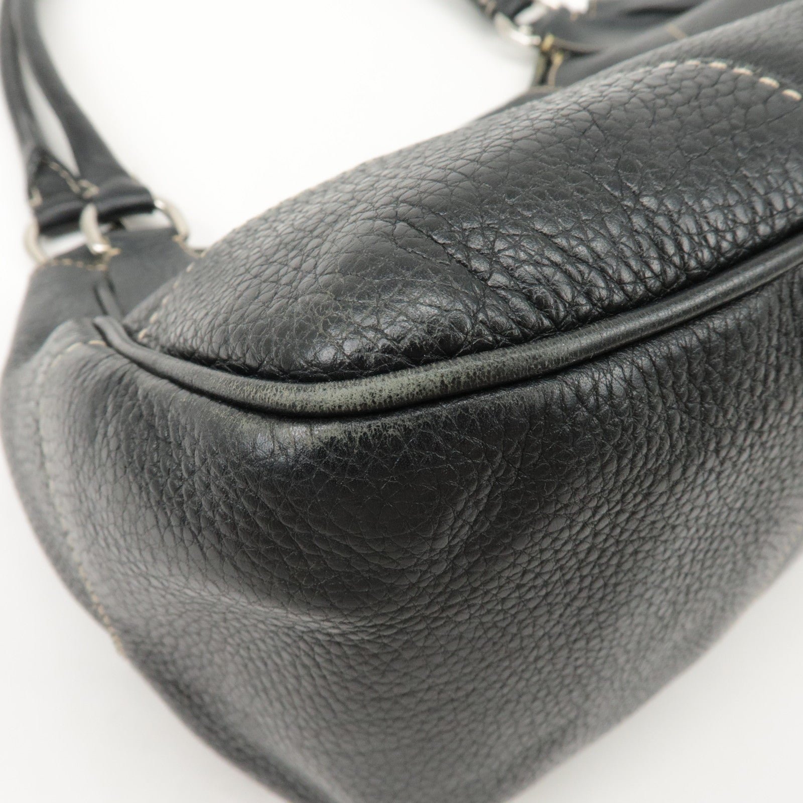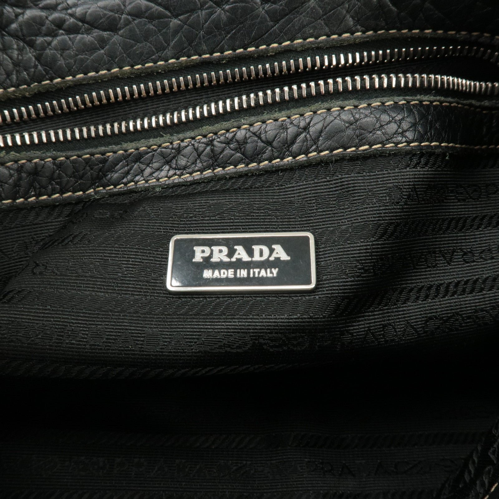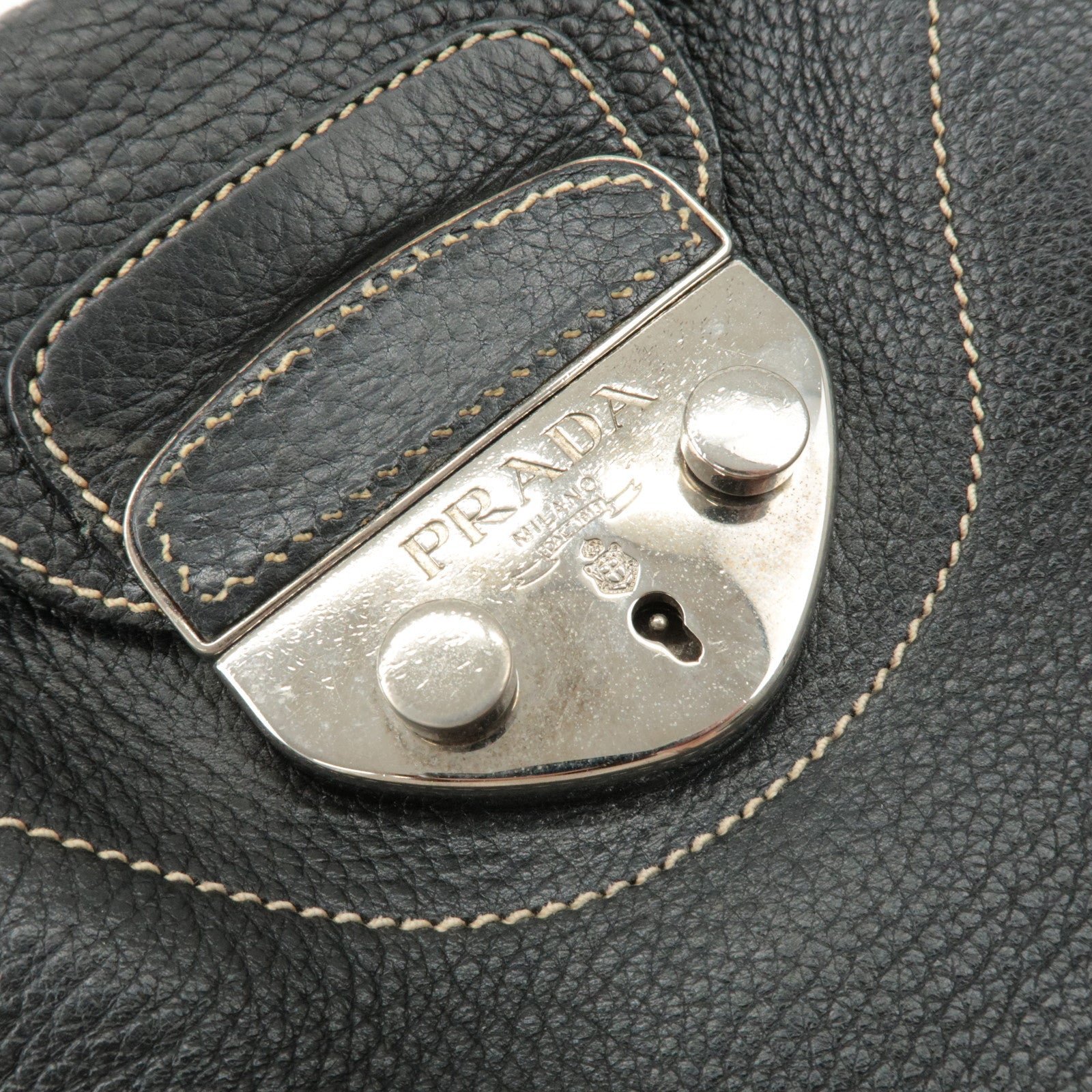 PRADA Logo Leather Shoulder Bag Hand Bag Black BR3593 Used