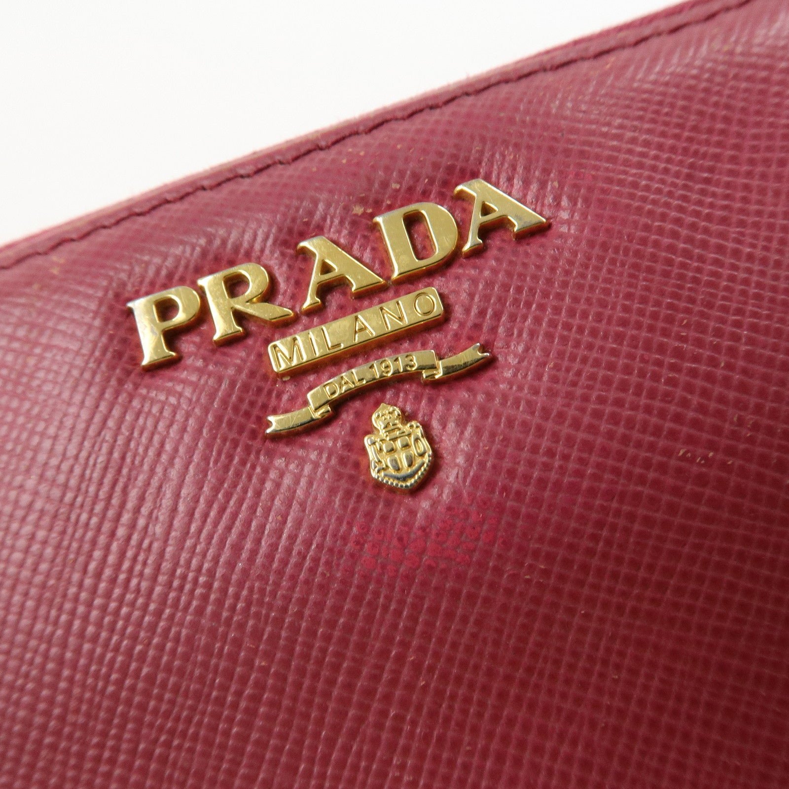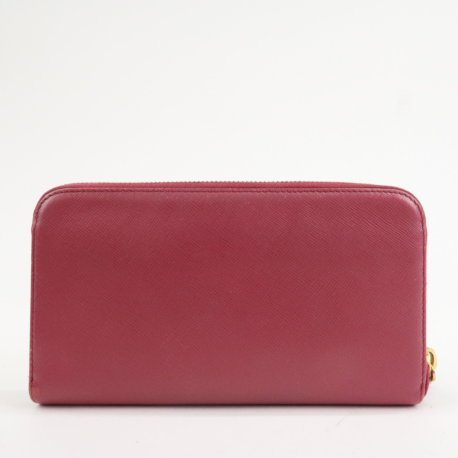 PRADA Logo Saffiano Leather Round Zippy Long Wallet Pink 1M0506