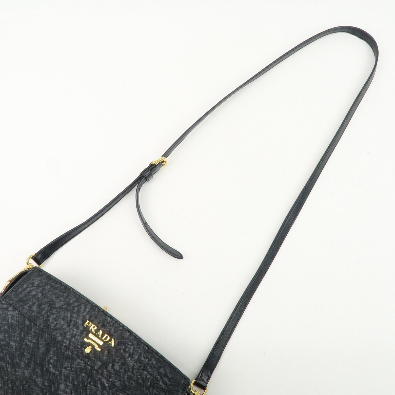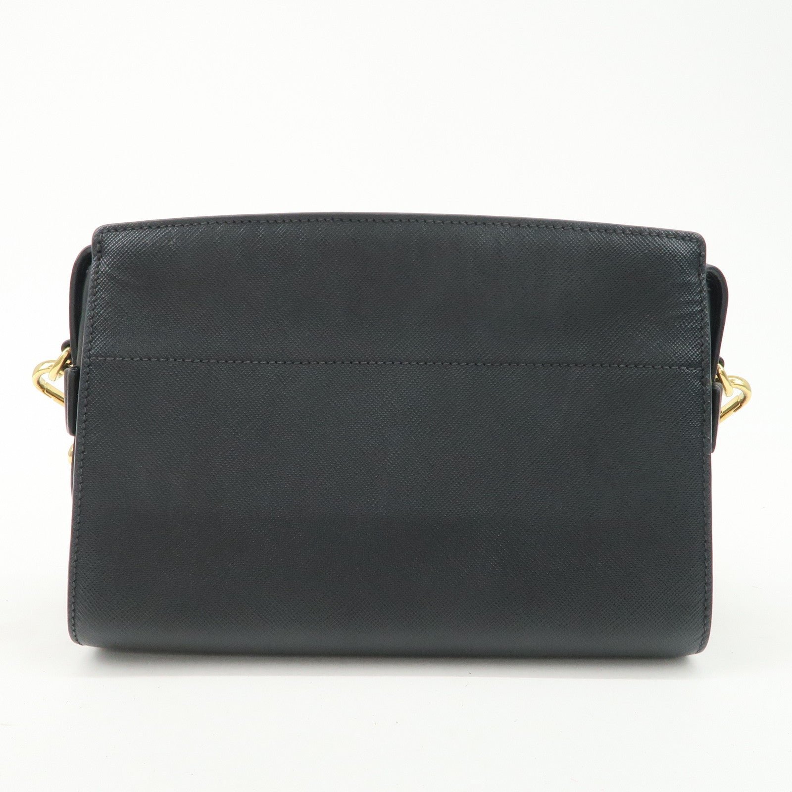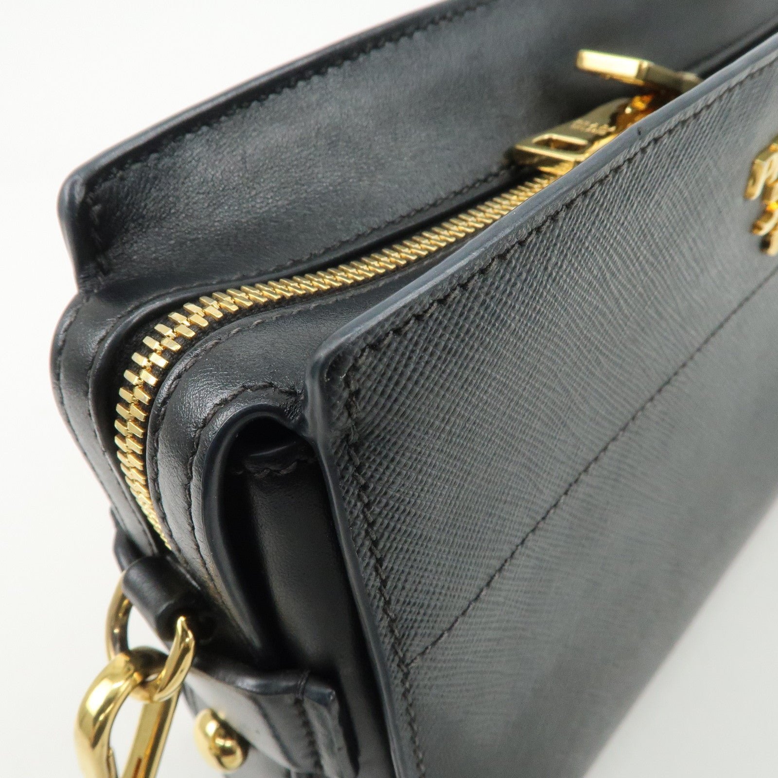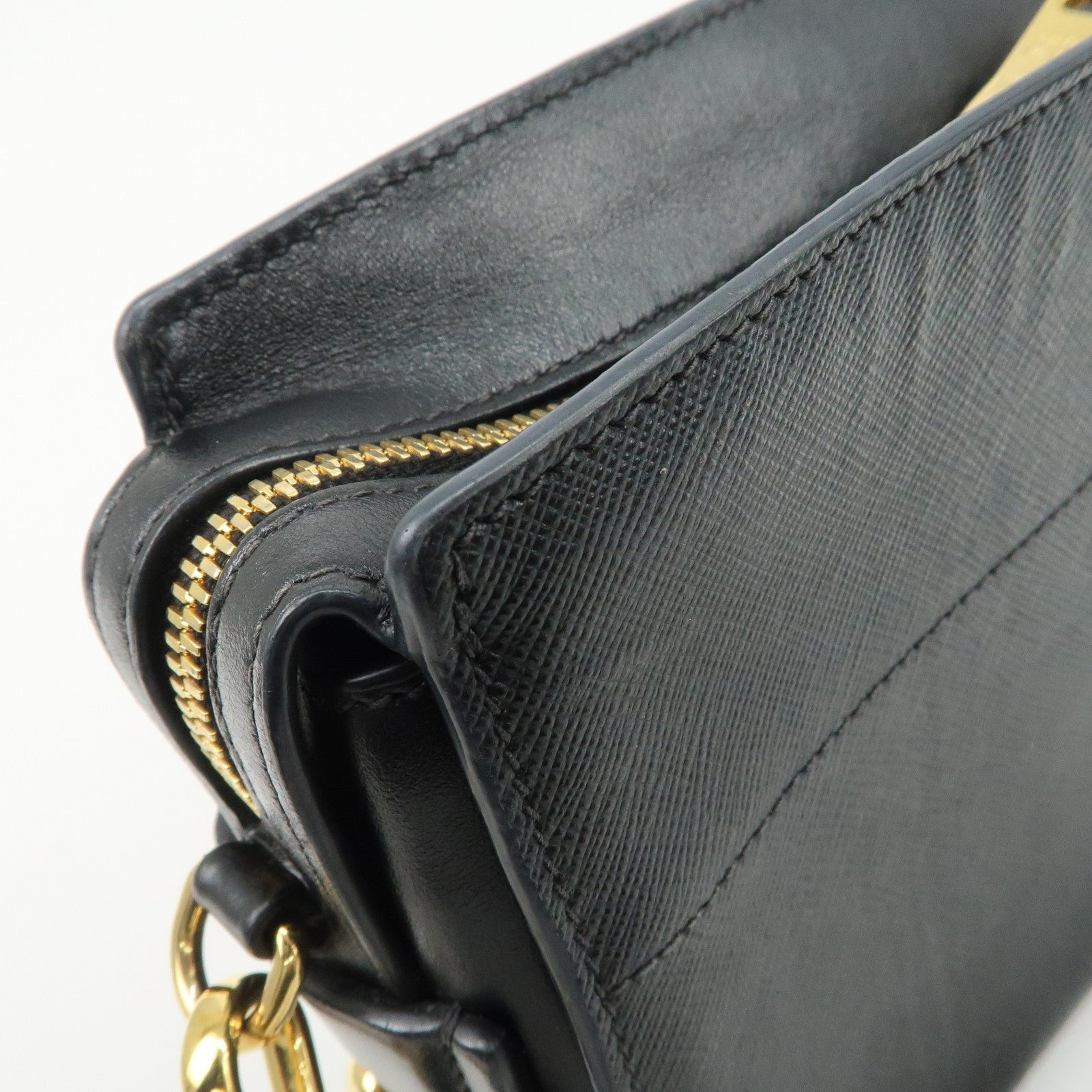 PRADA Logo Saffiano Leather Shoulder Bag Gold HDW Black