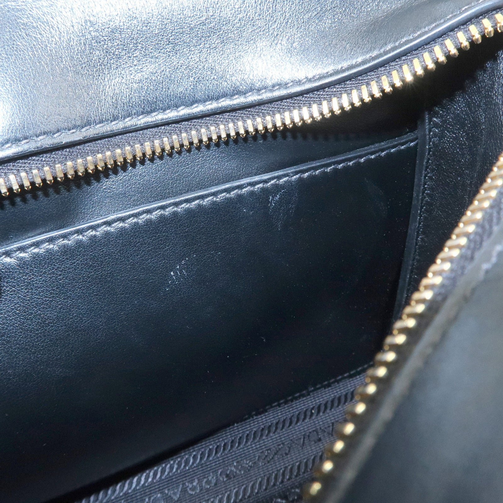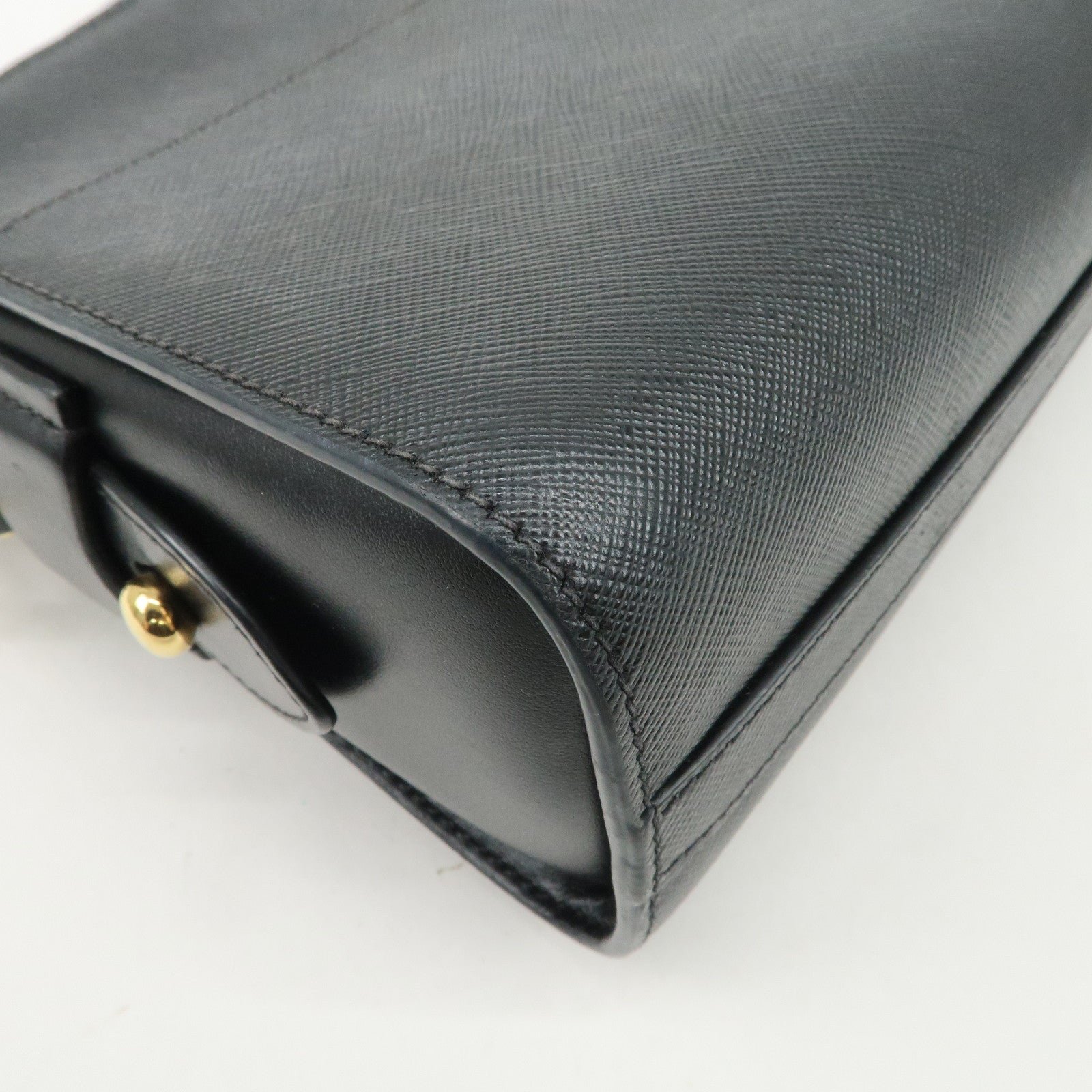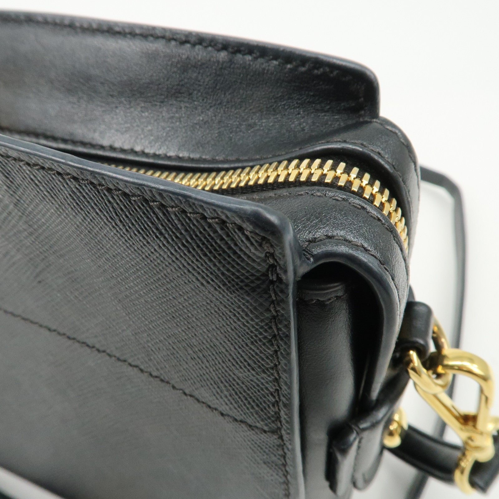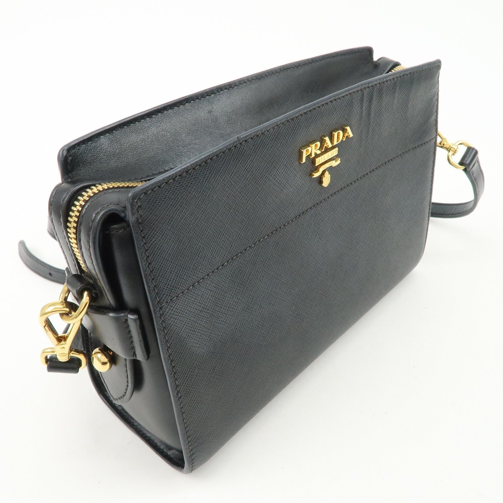 PRADA Logo Saffiano Leather Shoulder Bag Gold HDW Black