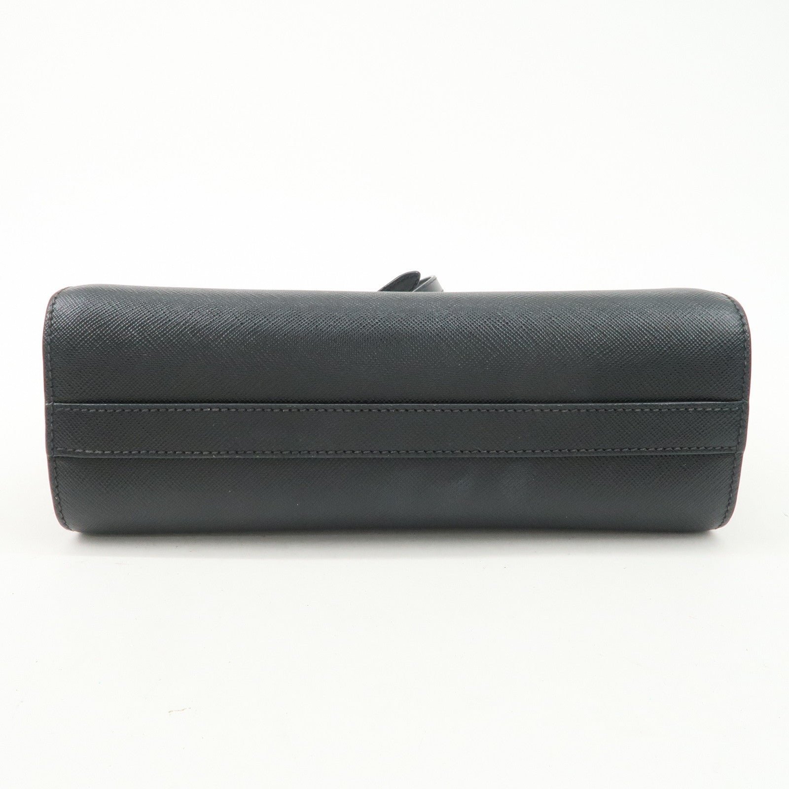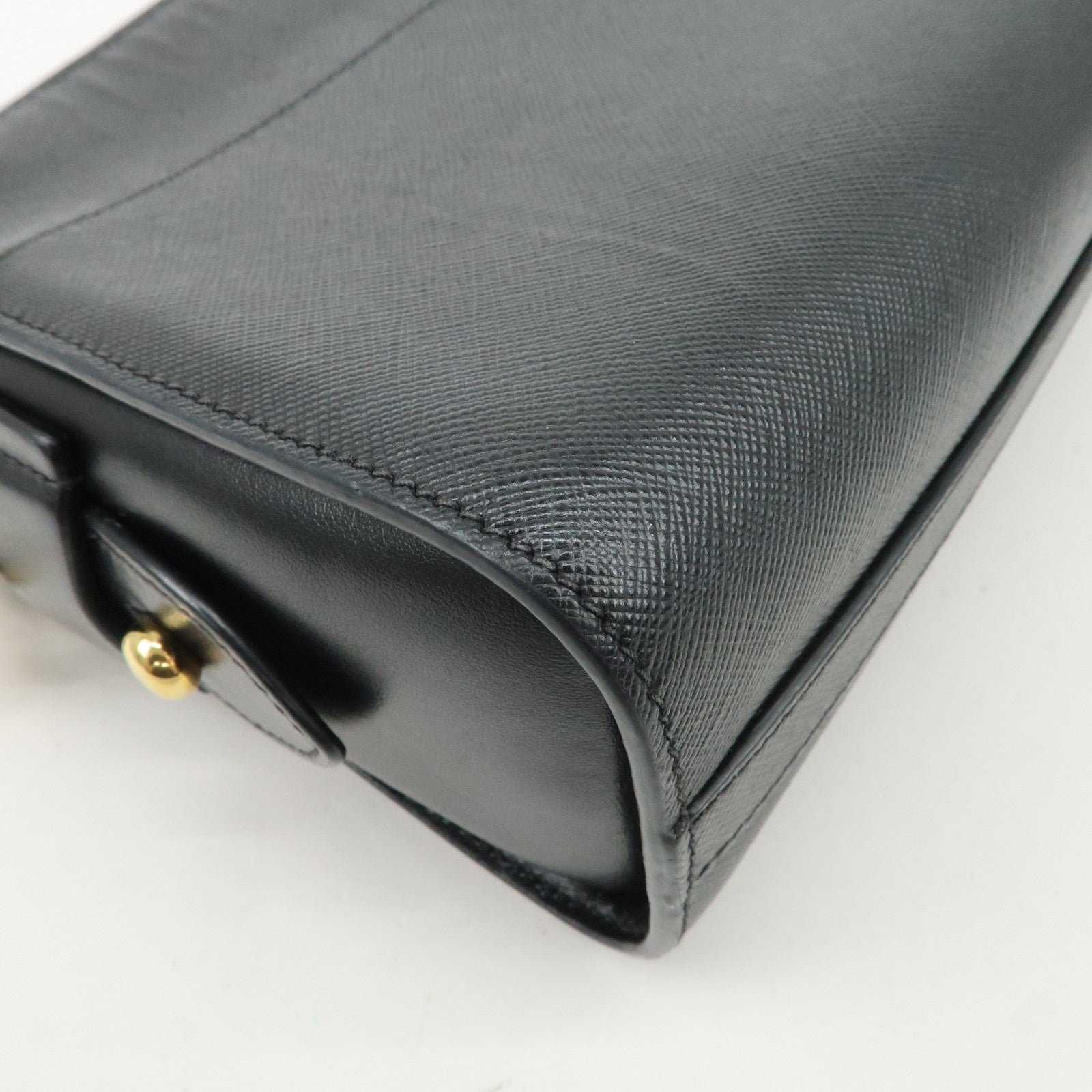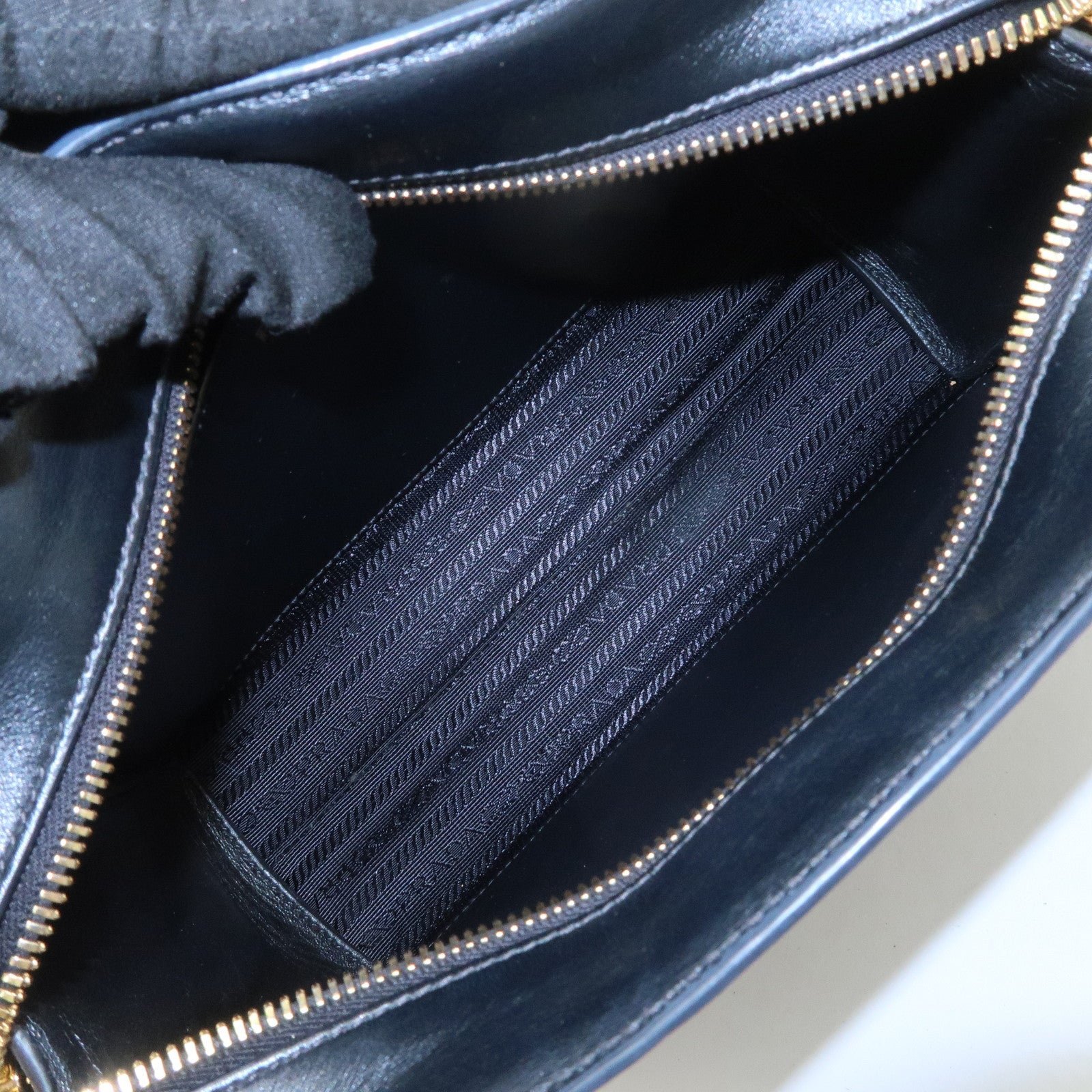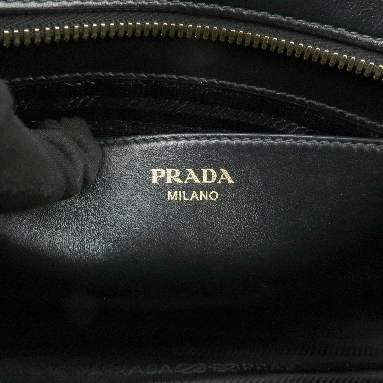 PRADA Logo Saffiano Leather Shoulder Bag Gold HDW Black