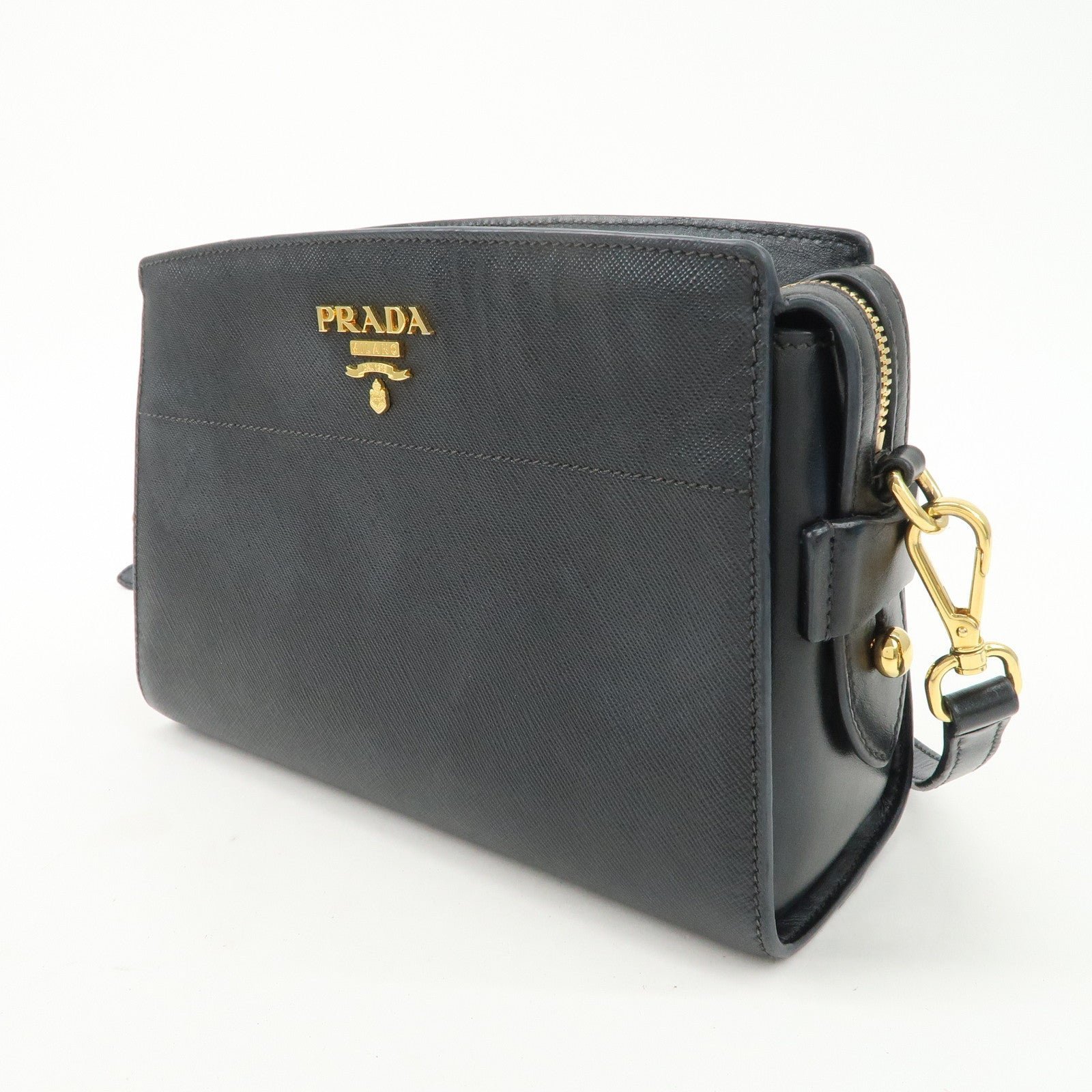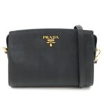 Be the first to review “PRADA Logo Saffiano Leather Shoulder Bag Gold HDW Black”