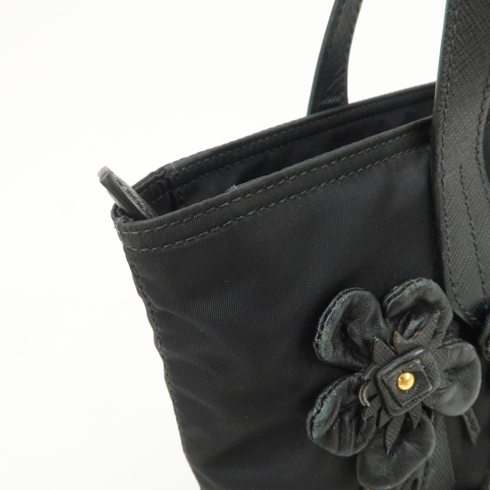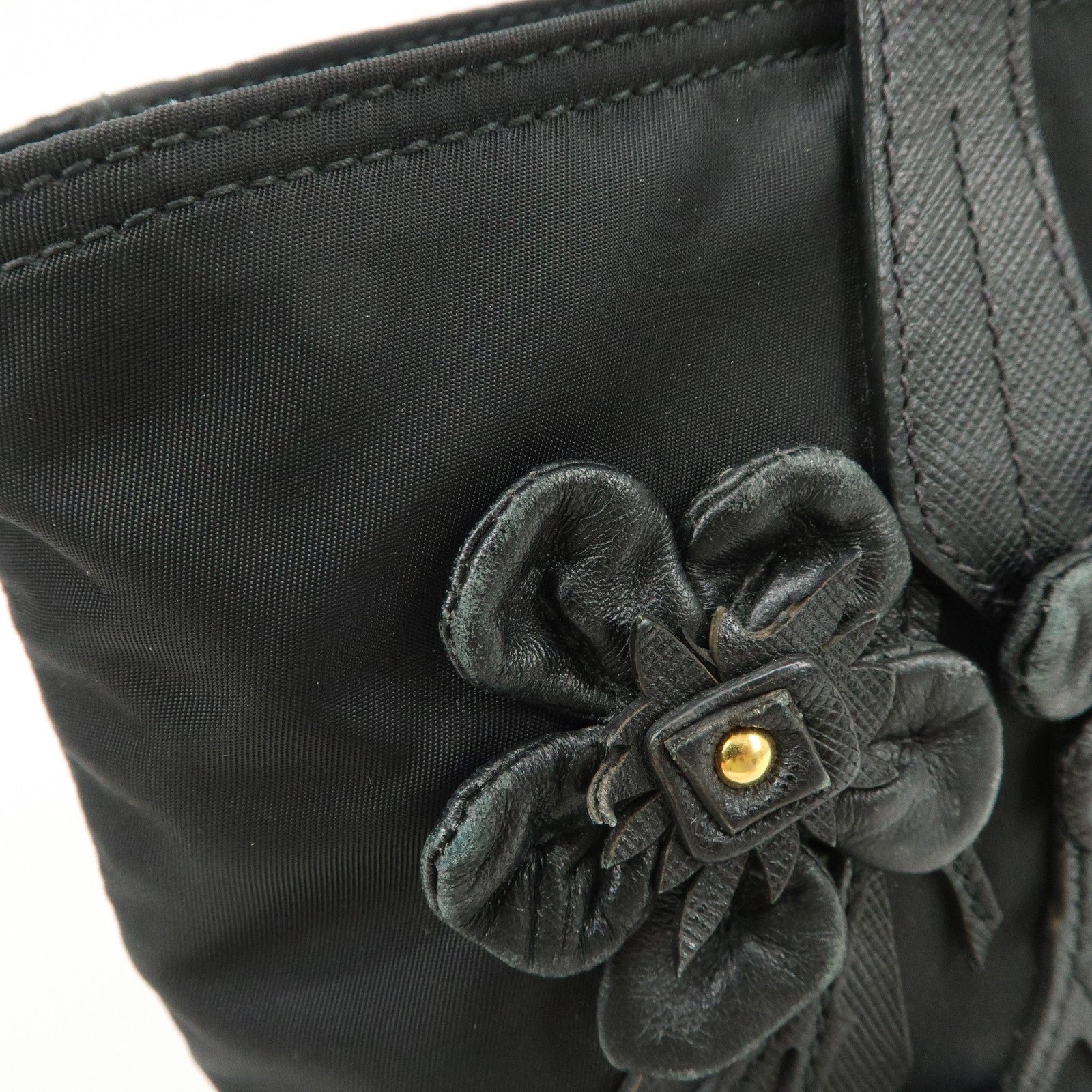 PRADA Nylon Leather Hand Bag Black Gold Hardware 1BA084