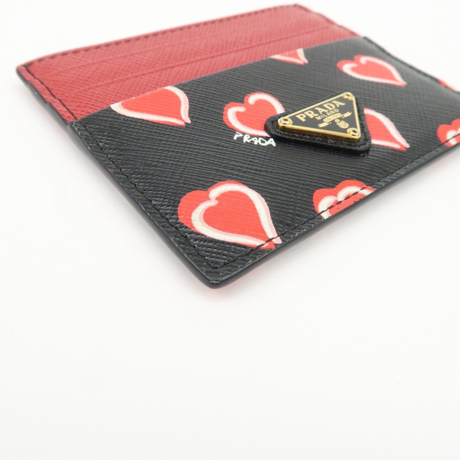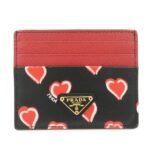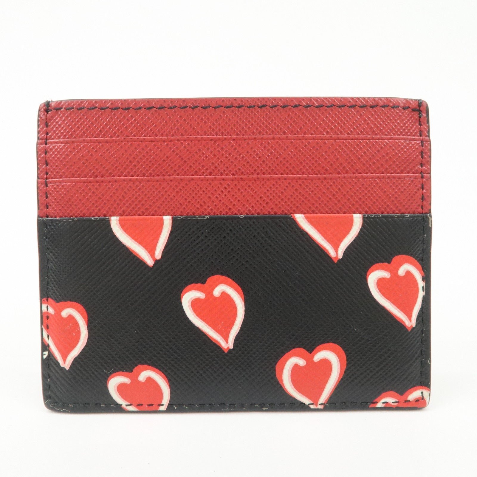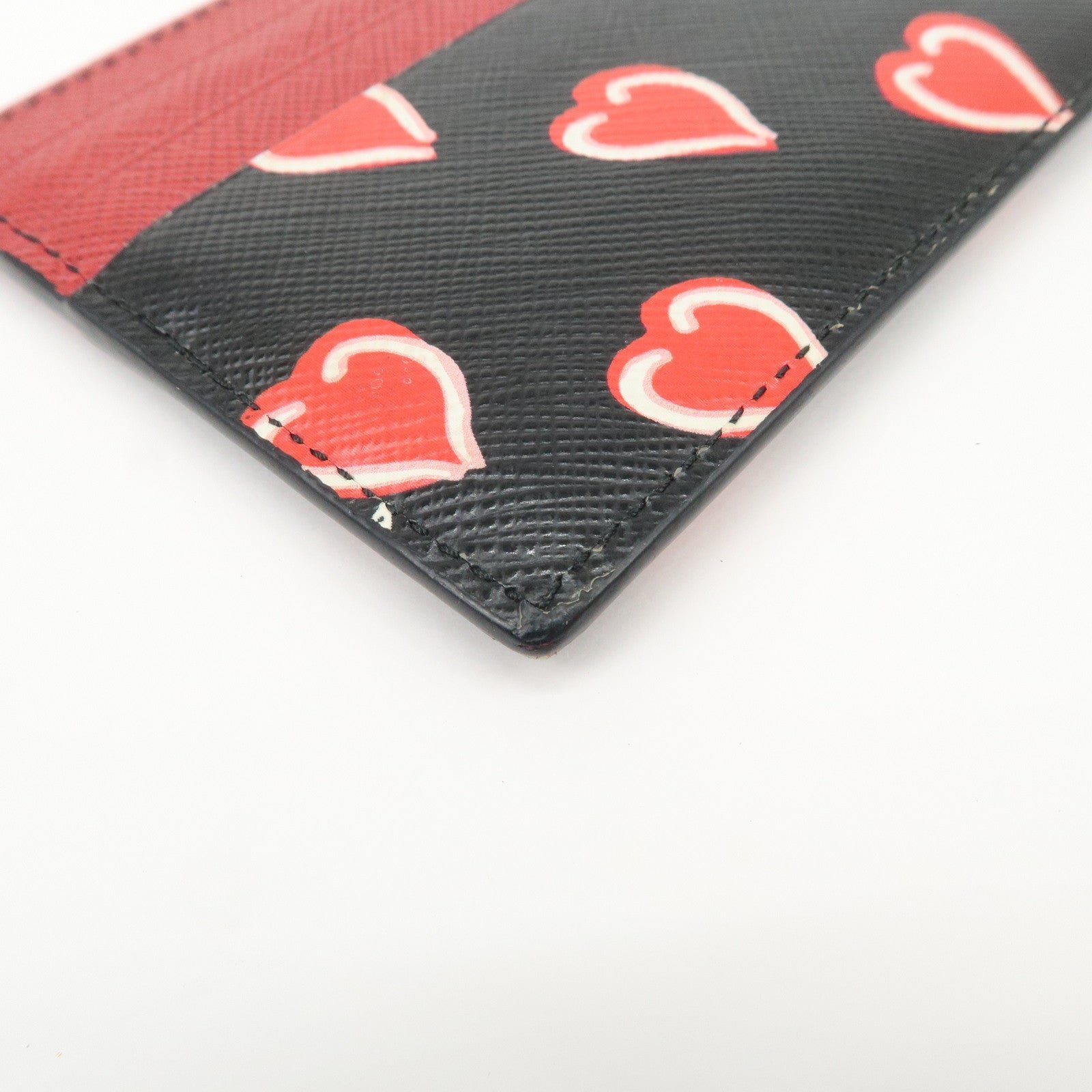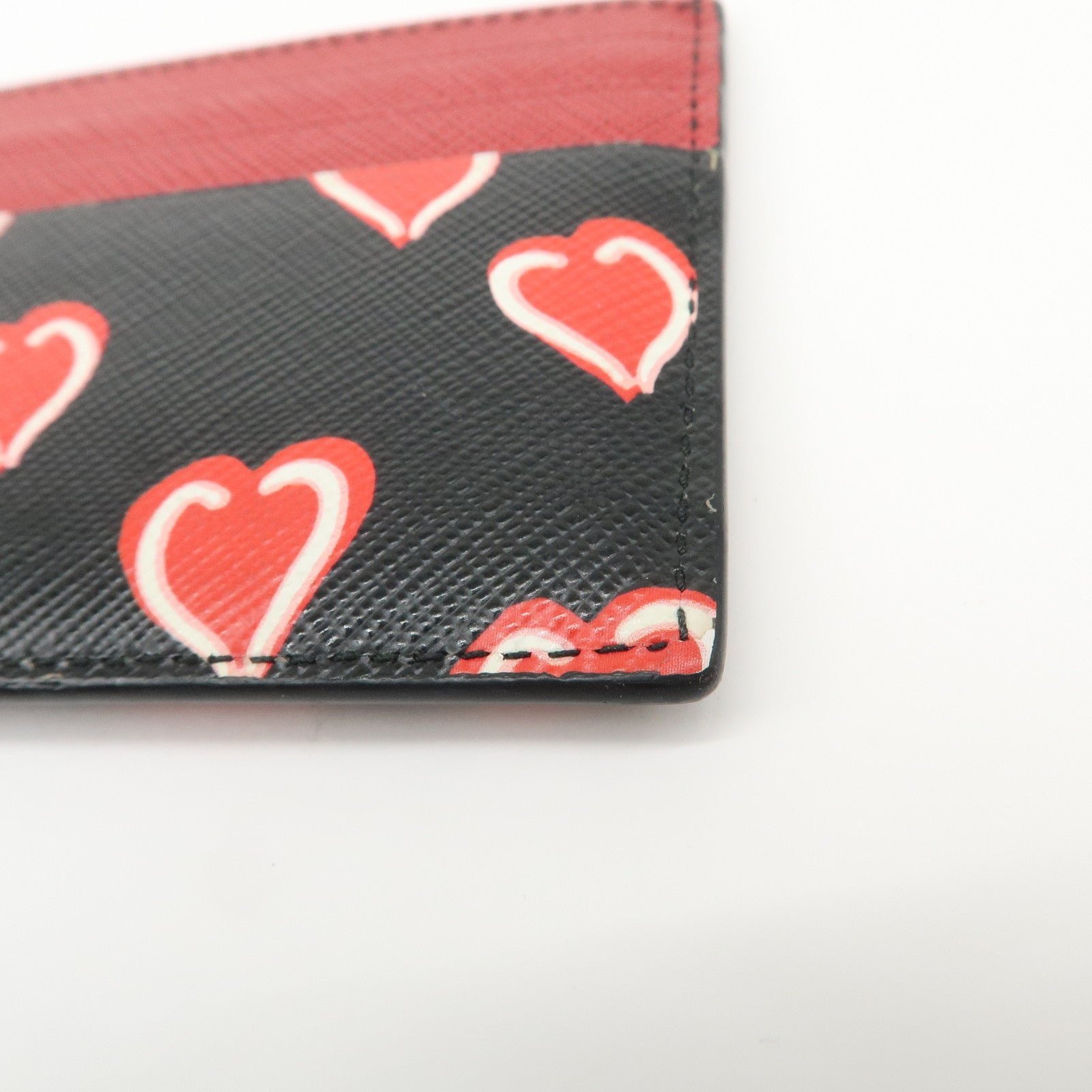 PRADA Saffiano Leather Heart Card Case Black Red White 1MC025