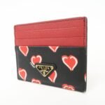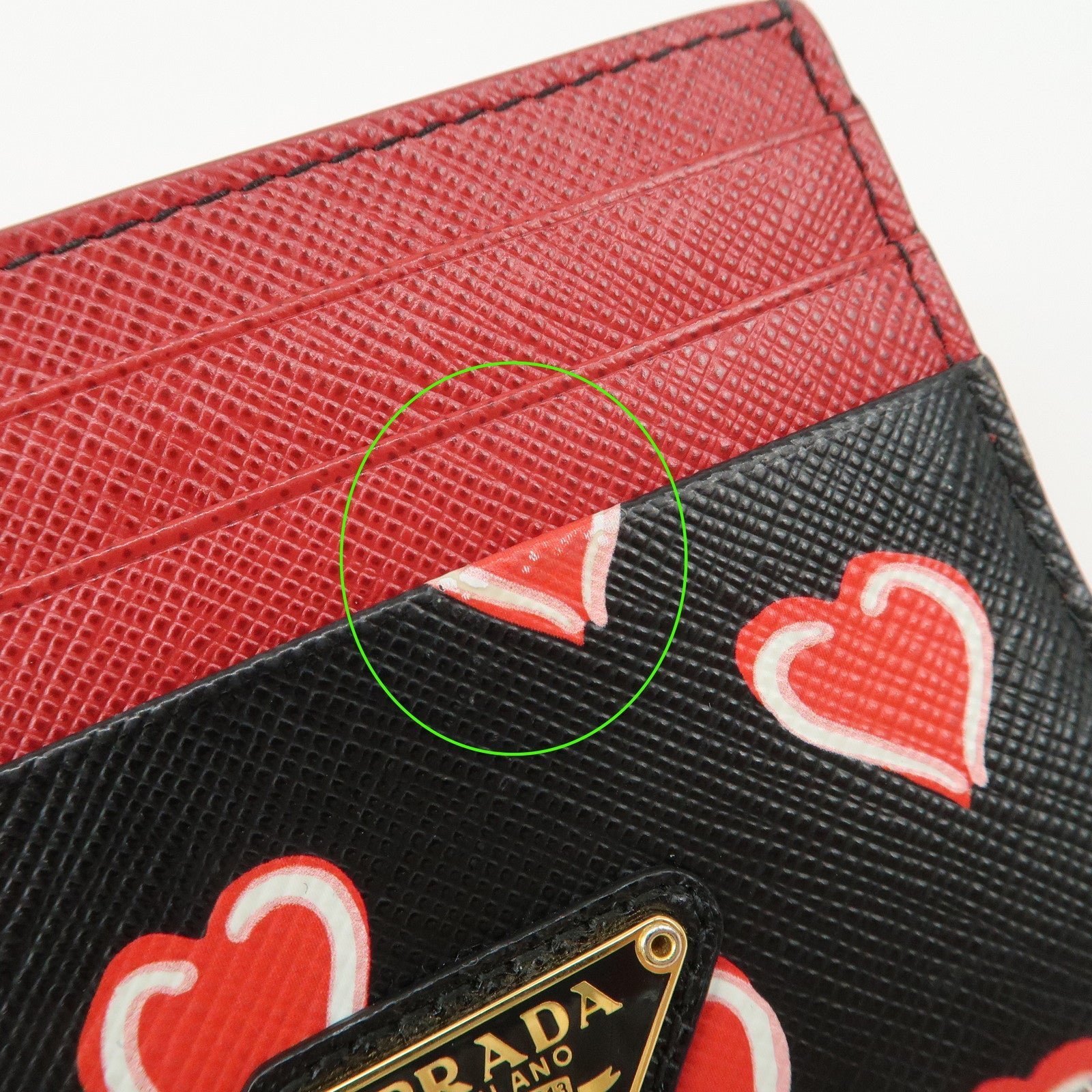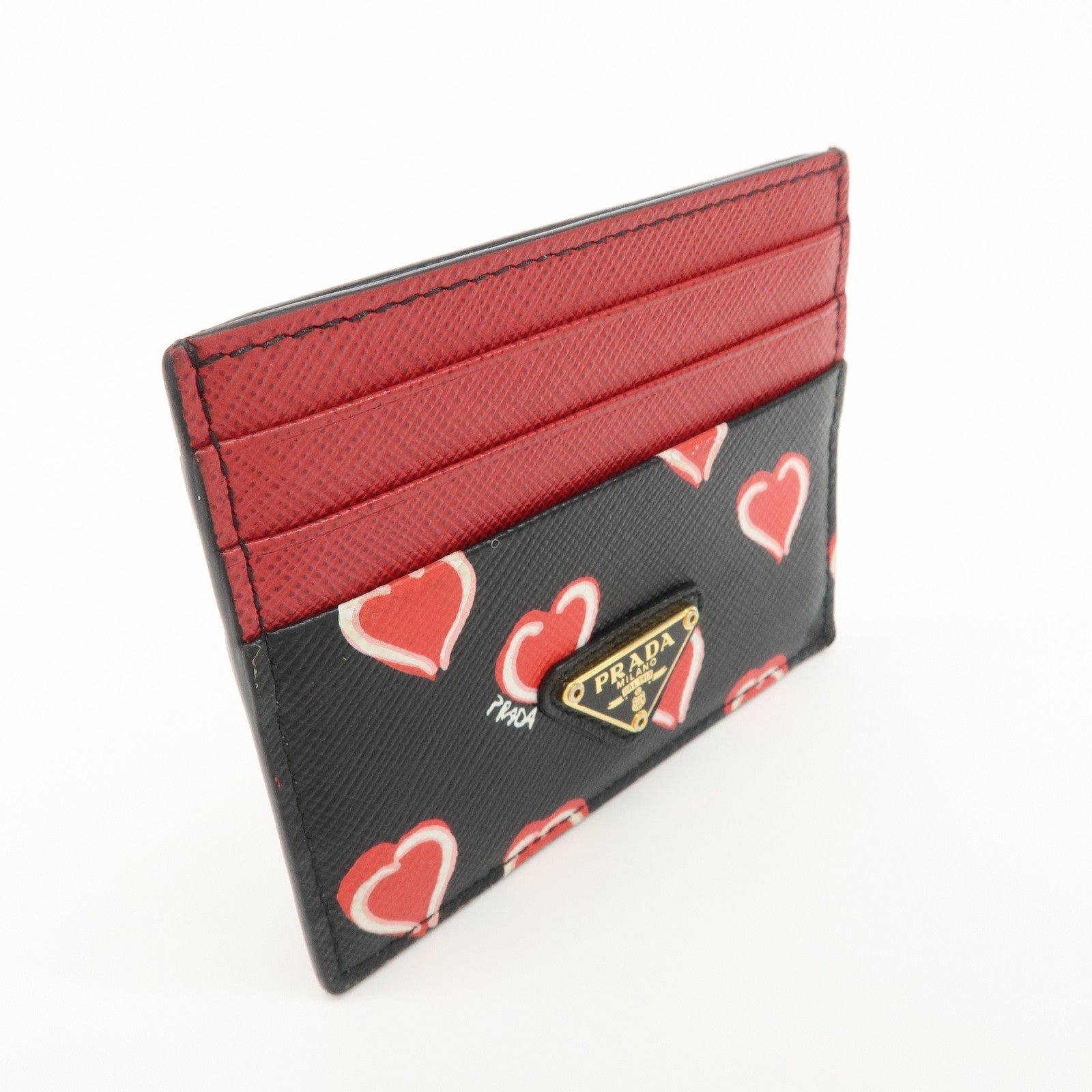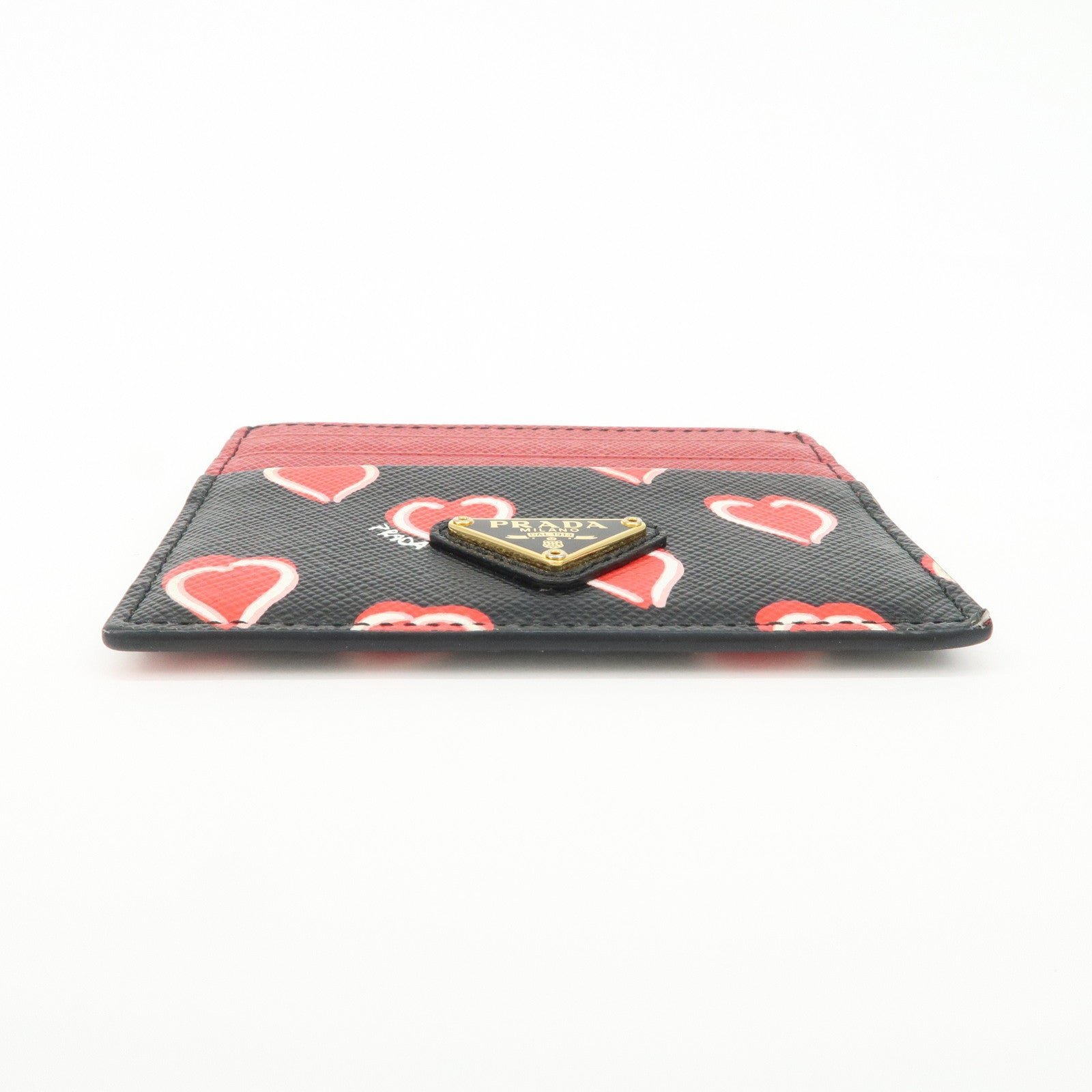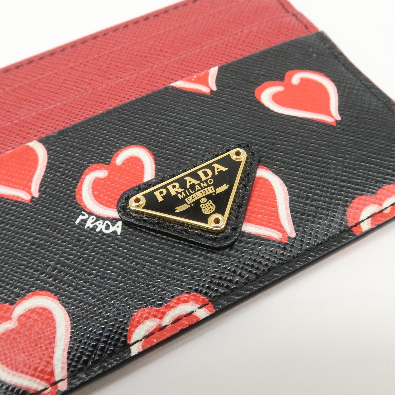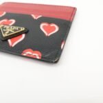 PRADA Saffiano Leather Heart Card Case Black Red White 1MC025
