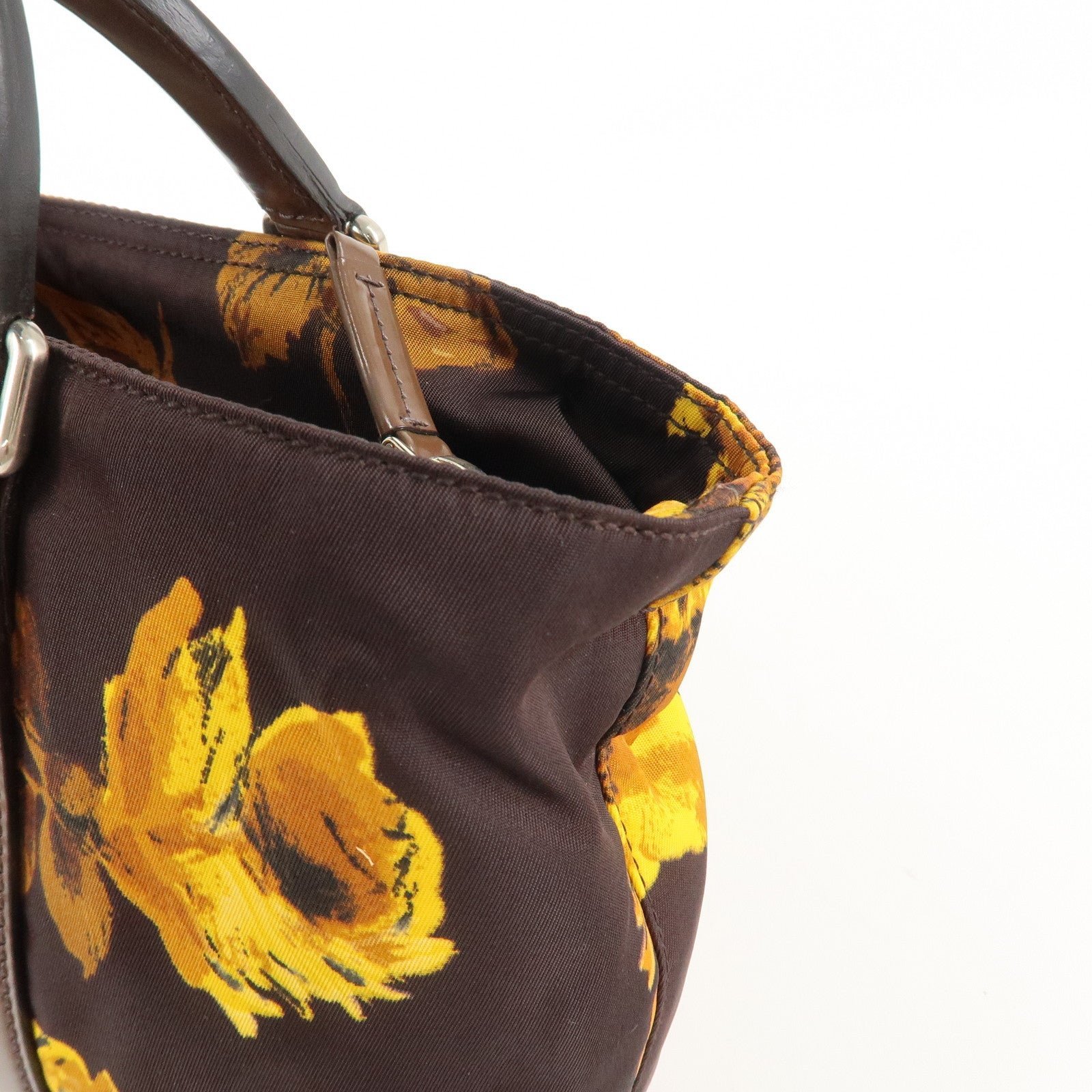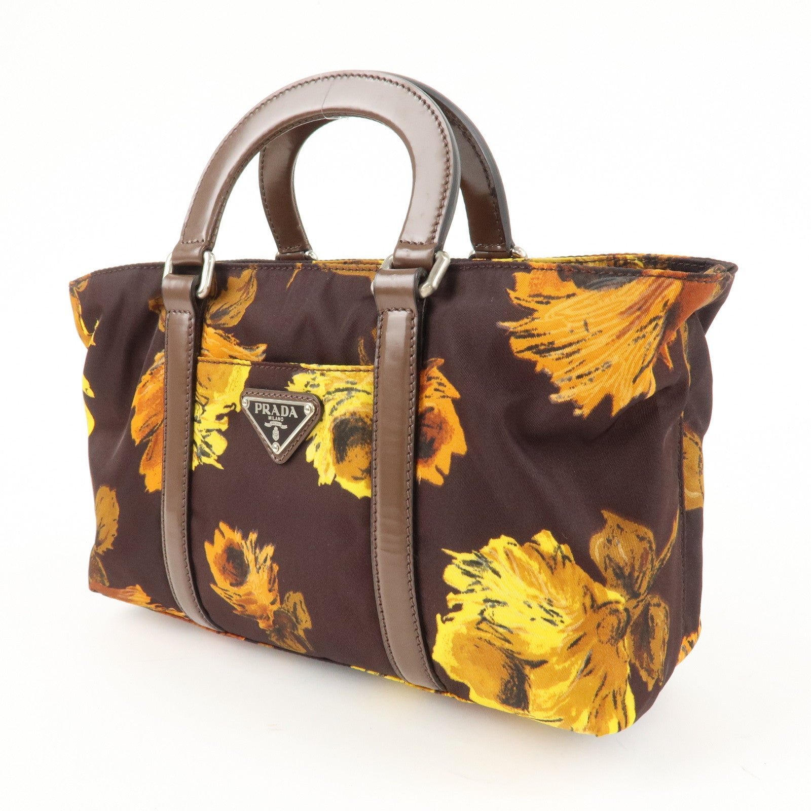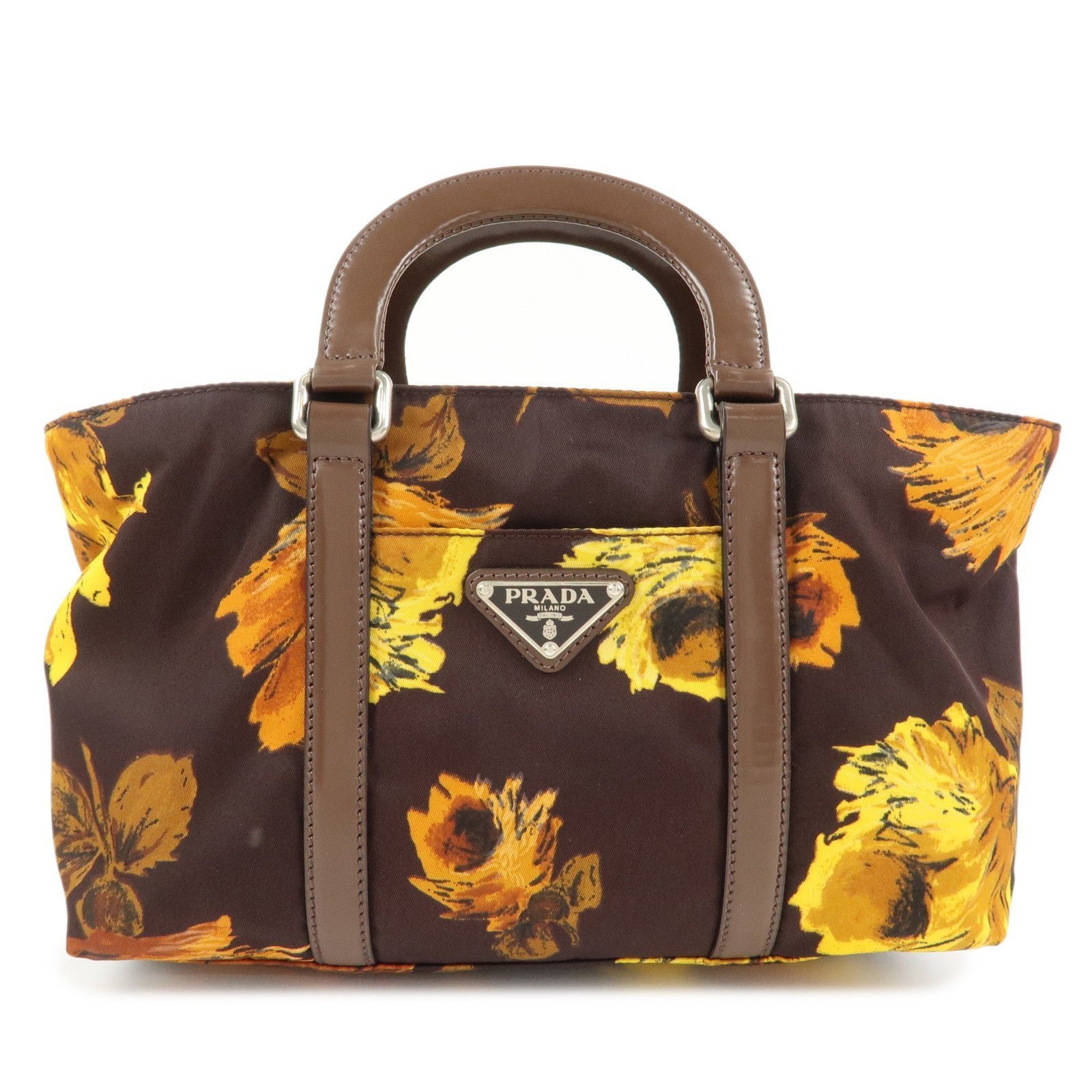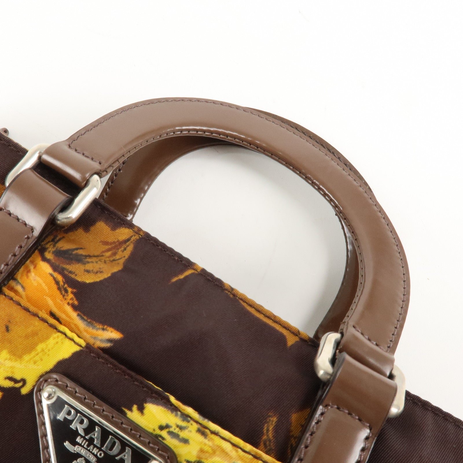 PRADA Triangle Logo 2Way Hand Bag Shoulder Bag Brown Yellow BN1052 Used