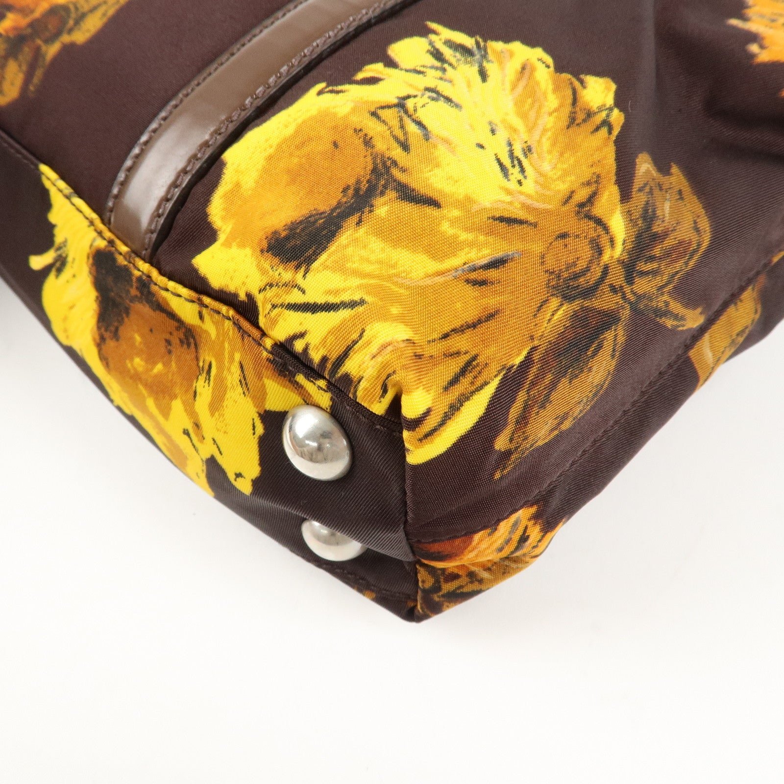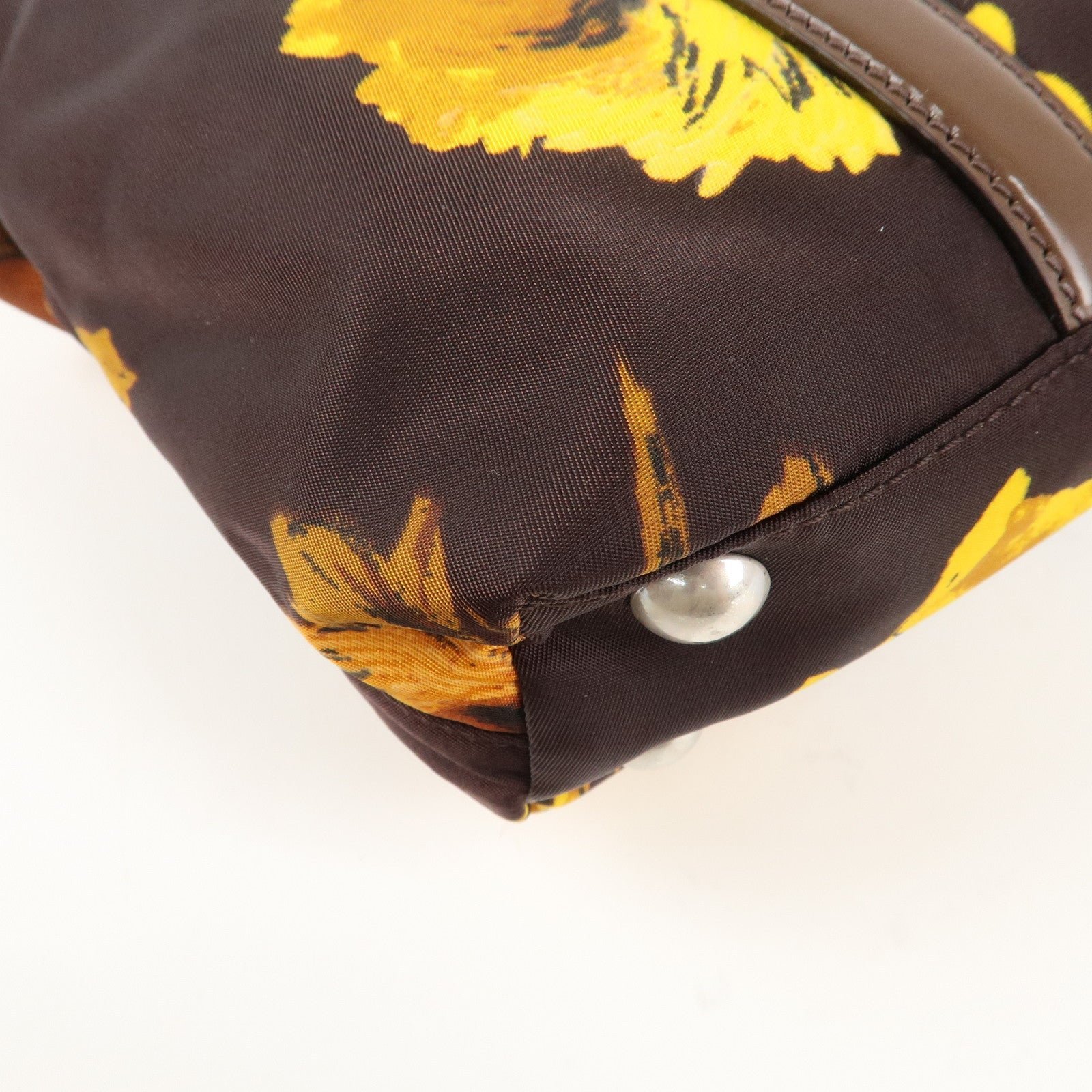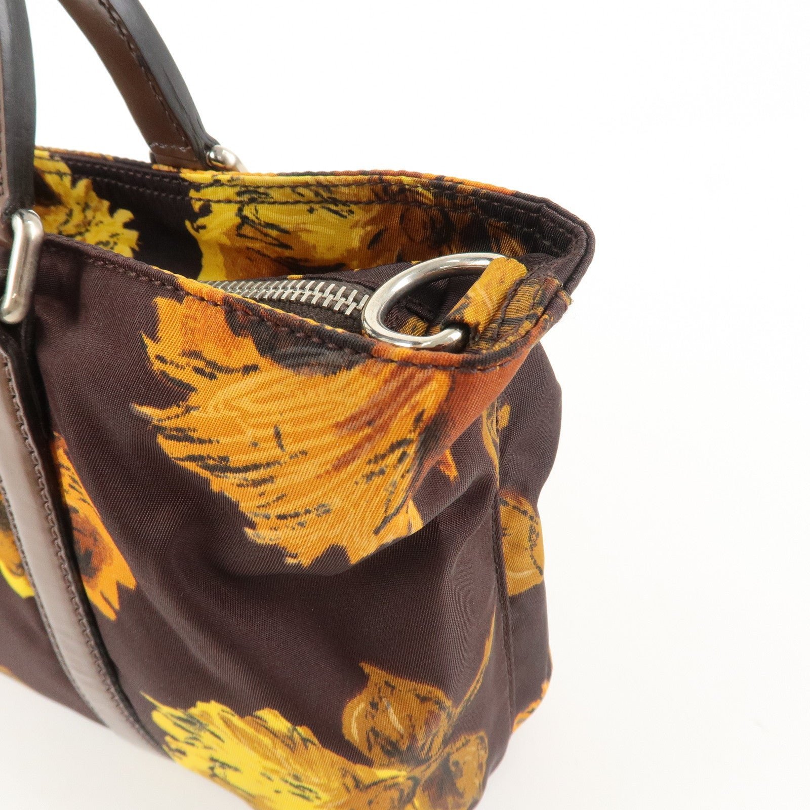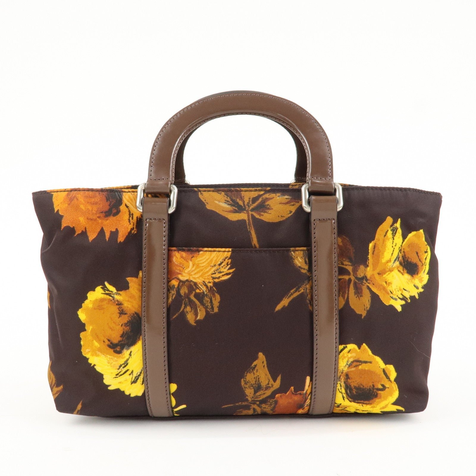 PRADA Triangle Logo 2Way Hand Bag Shoulder Bag Brown Yellow BN1052 Used