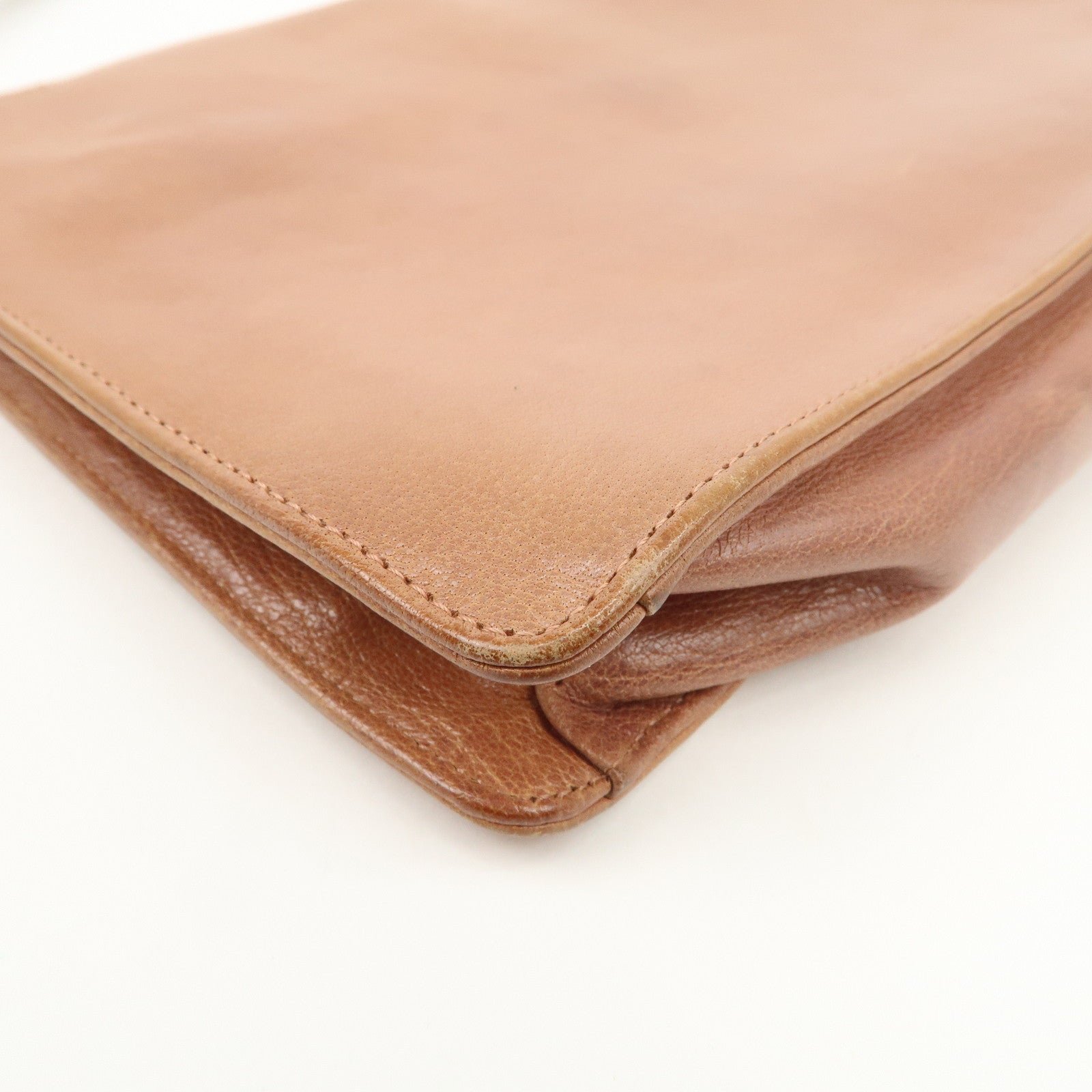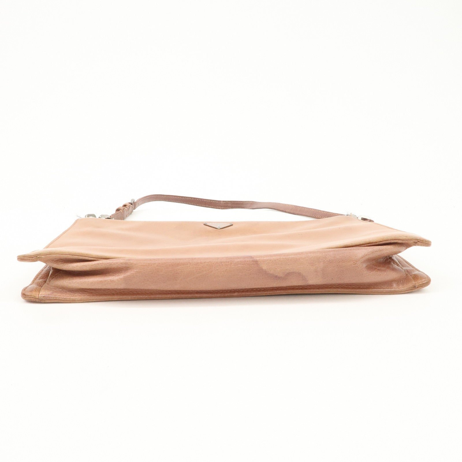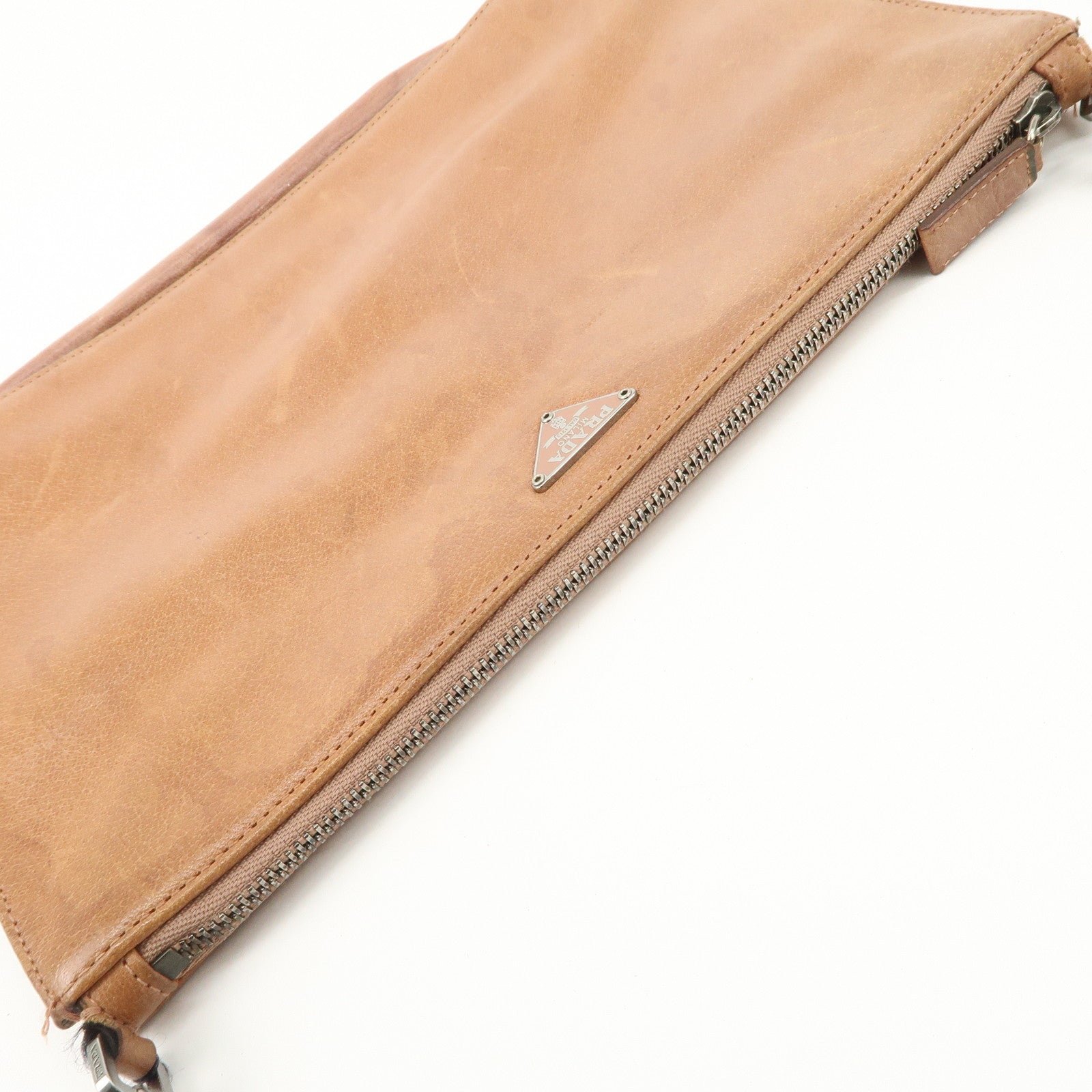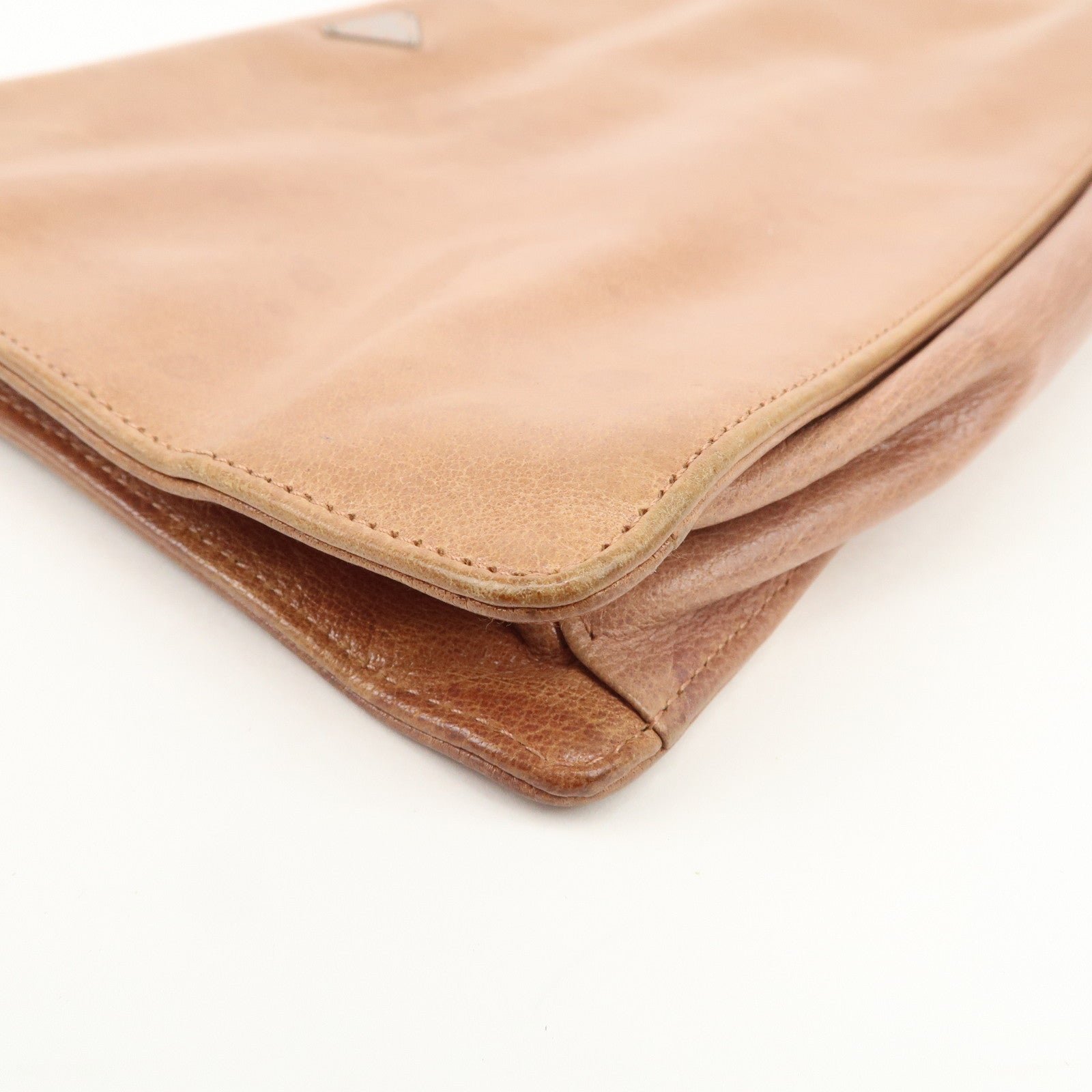 PRADA Triangle Logo Leather Shoulder Bag Hand Bag Brown Used