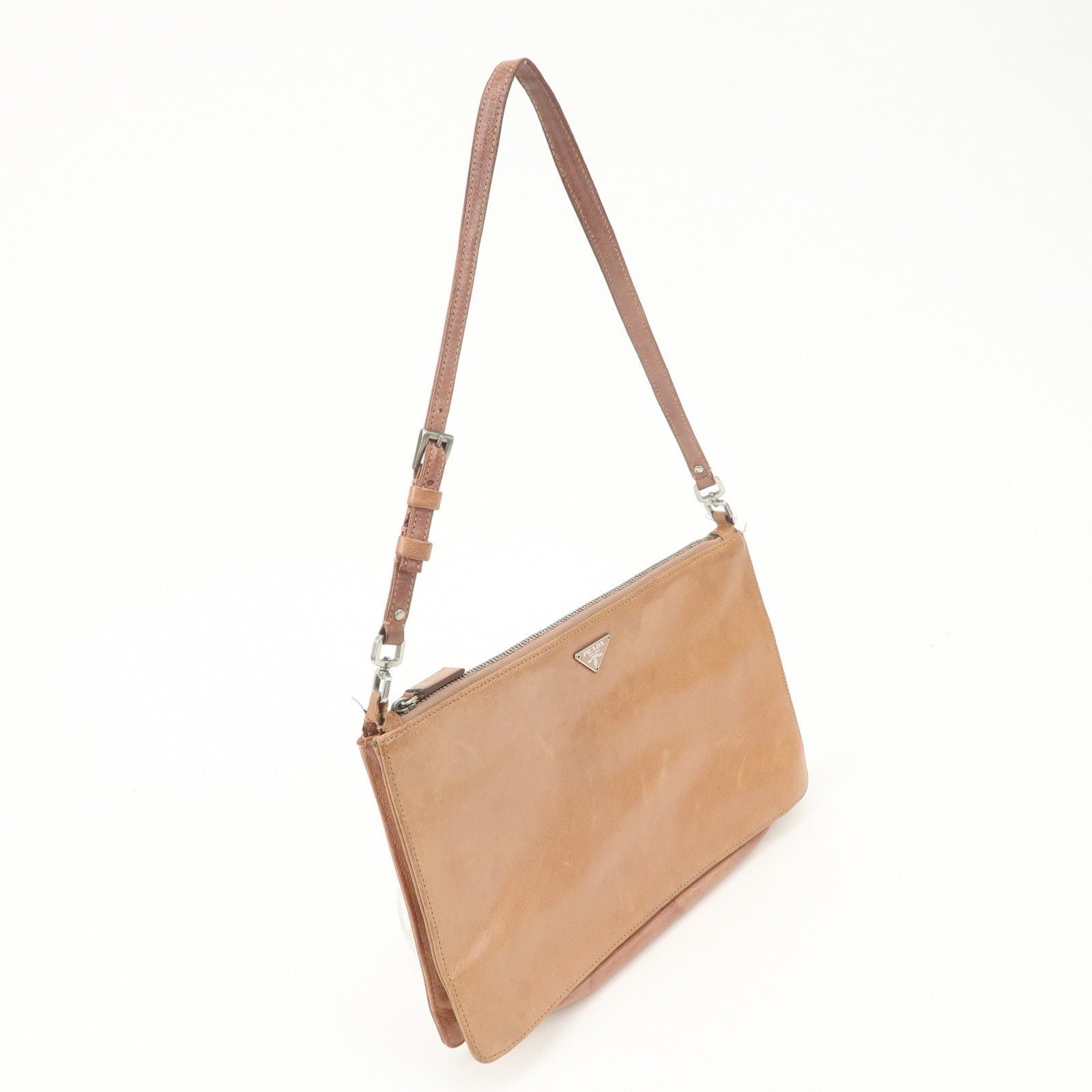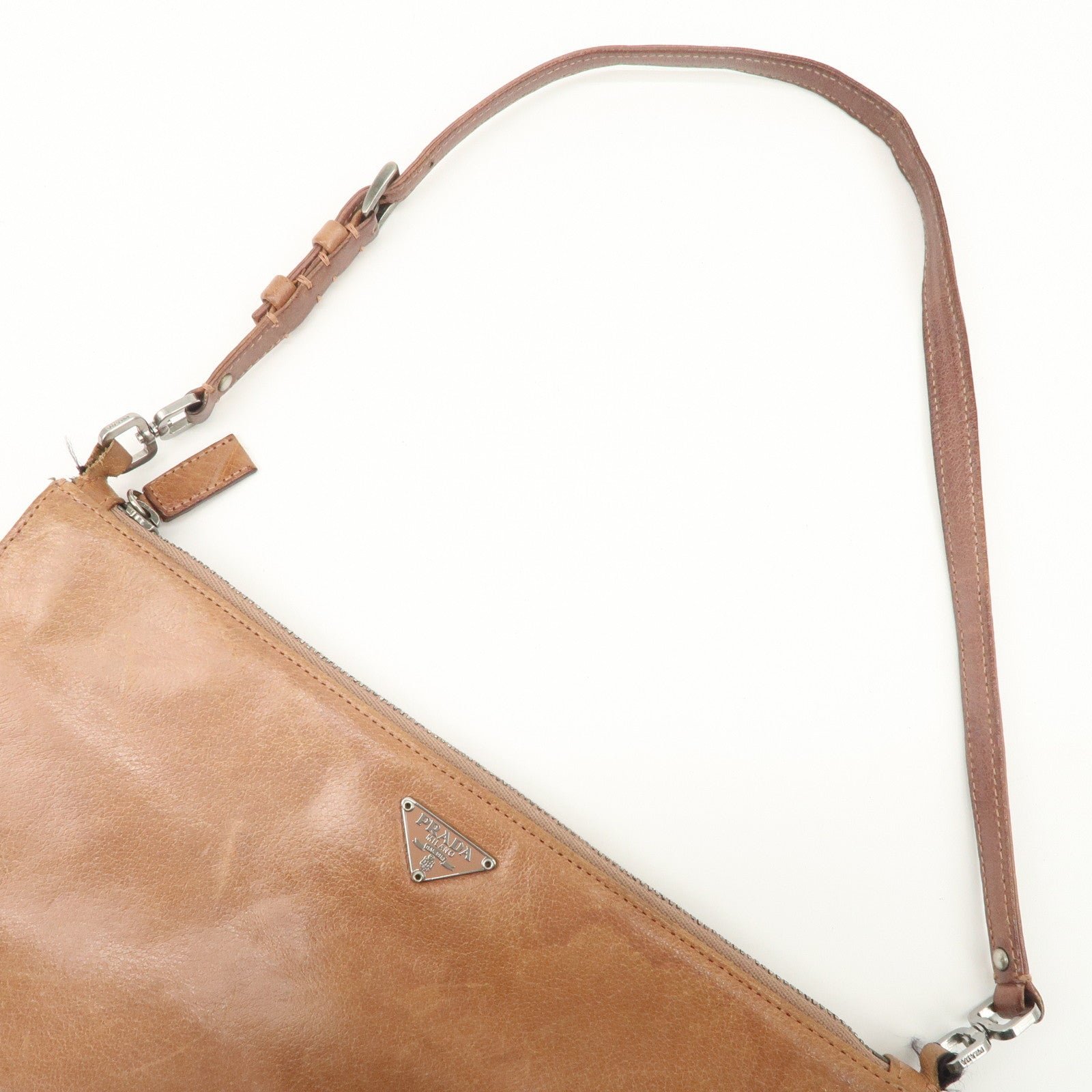 Be the first to review “PRADA Triangle Logo Leather Shoulder Bag Hand Bag Brown Used”