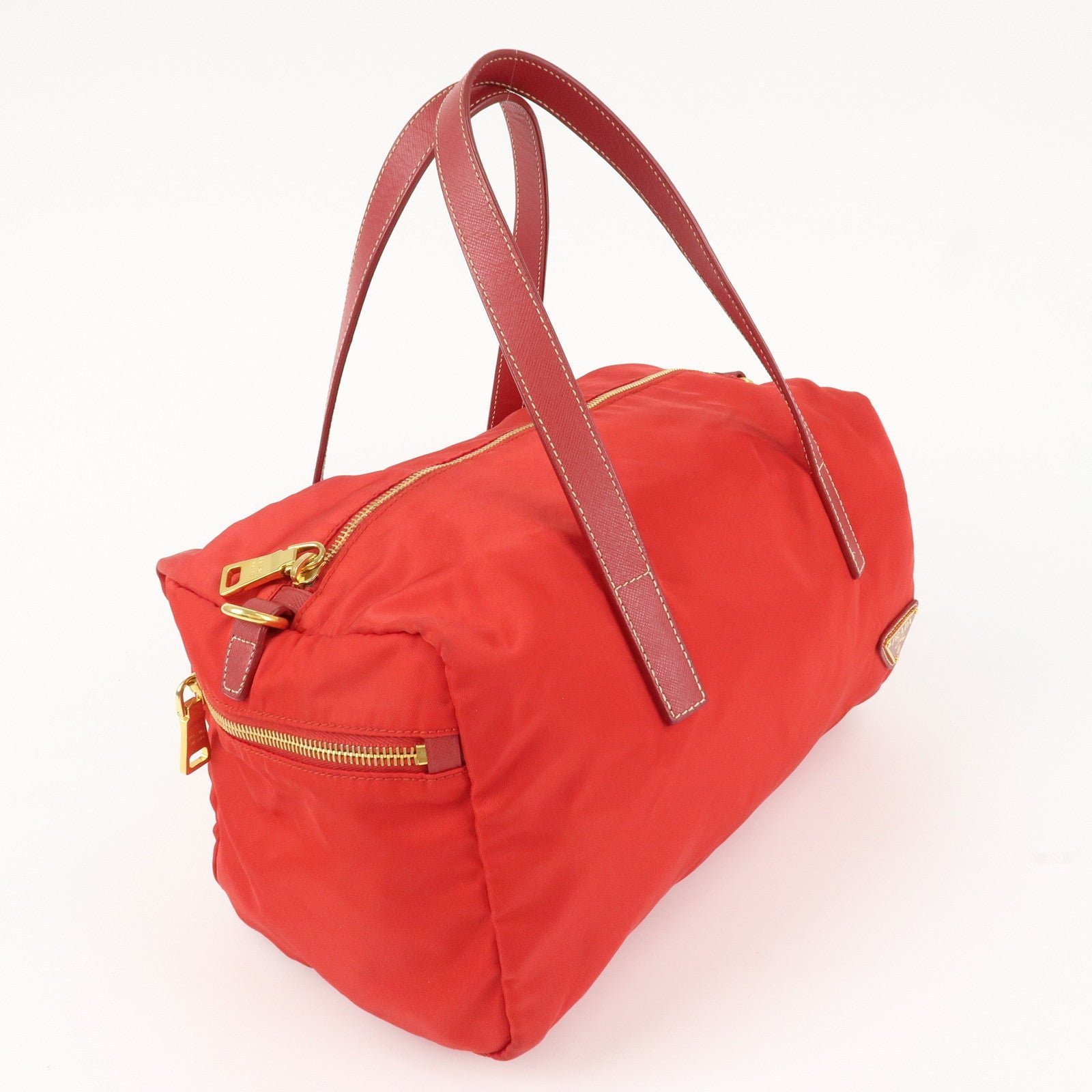 PRADA Triangle Logo Nylon Leather 2Way Shoulder Bag Hand Bag Red Used