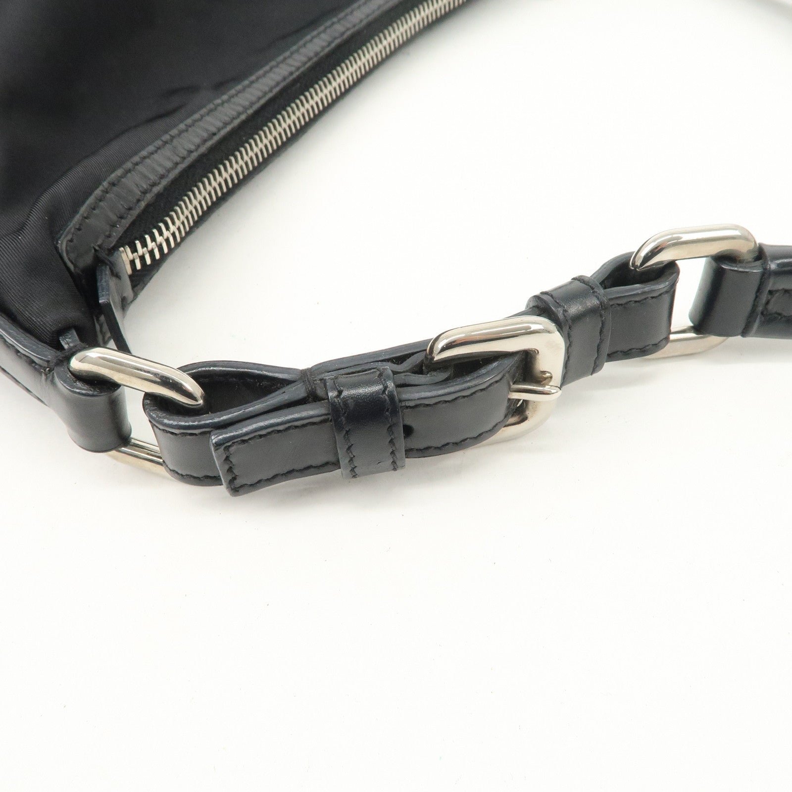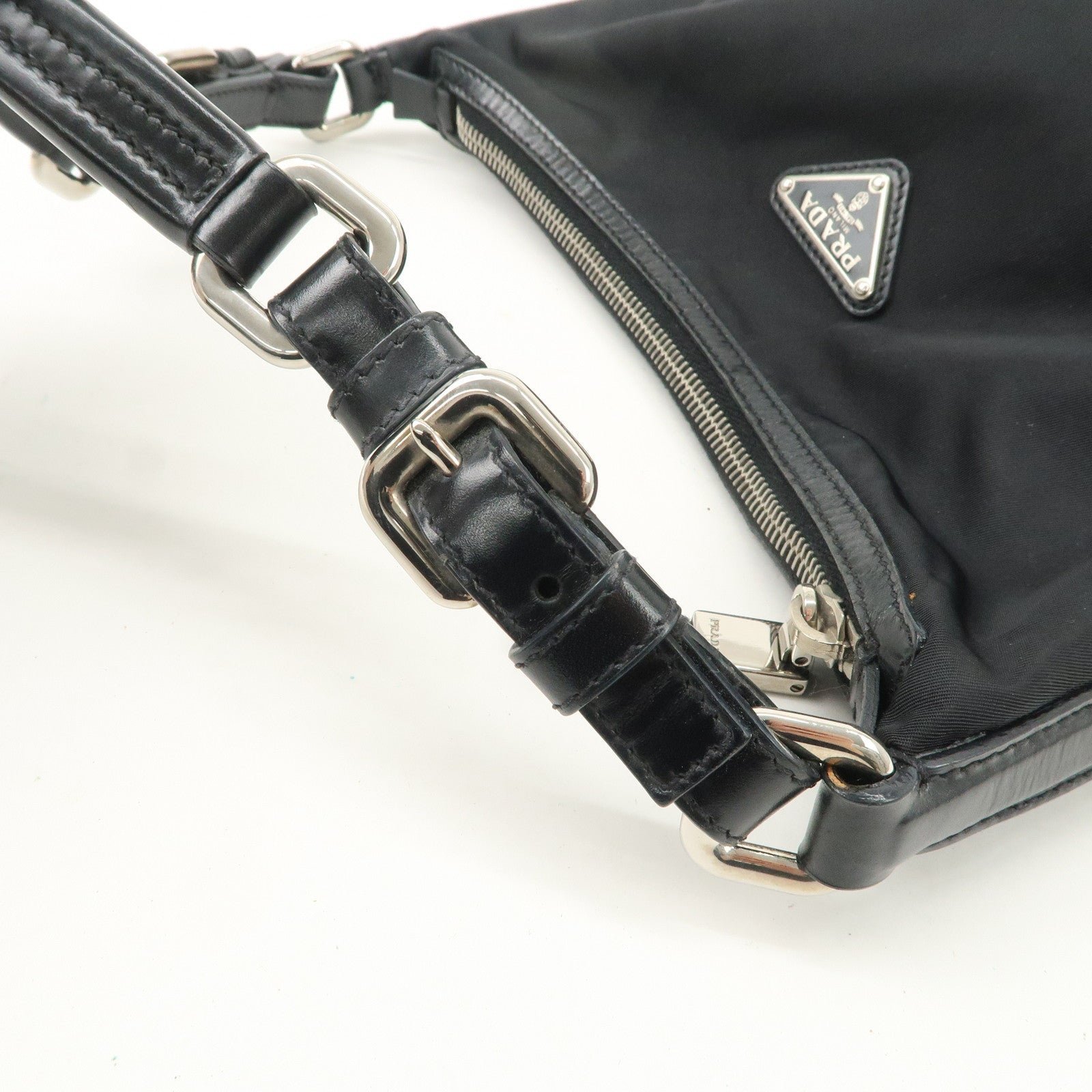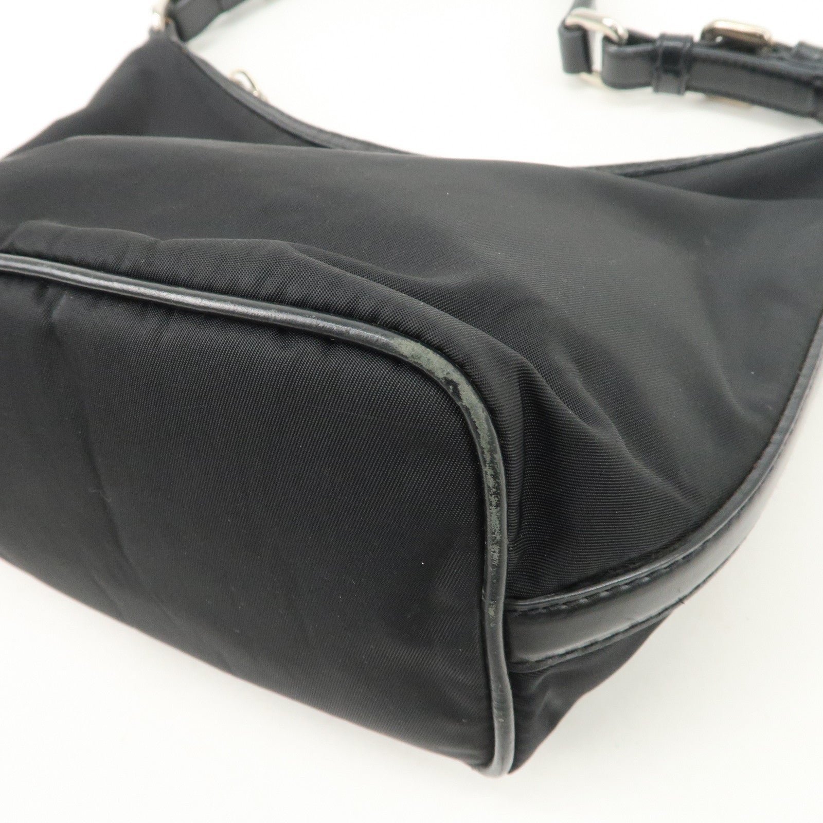 PRADA Triangle Logo Nylon Leather Shoulder Bag Black BR2840