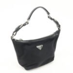 PRADA Triangle Logo Nylon Leather Shoulder Bag Silver HDW Black Used Original price was: $680.00.Current price is: $405.00.