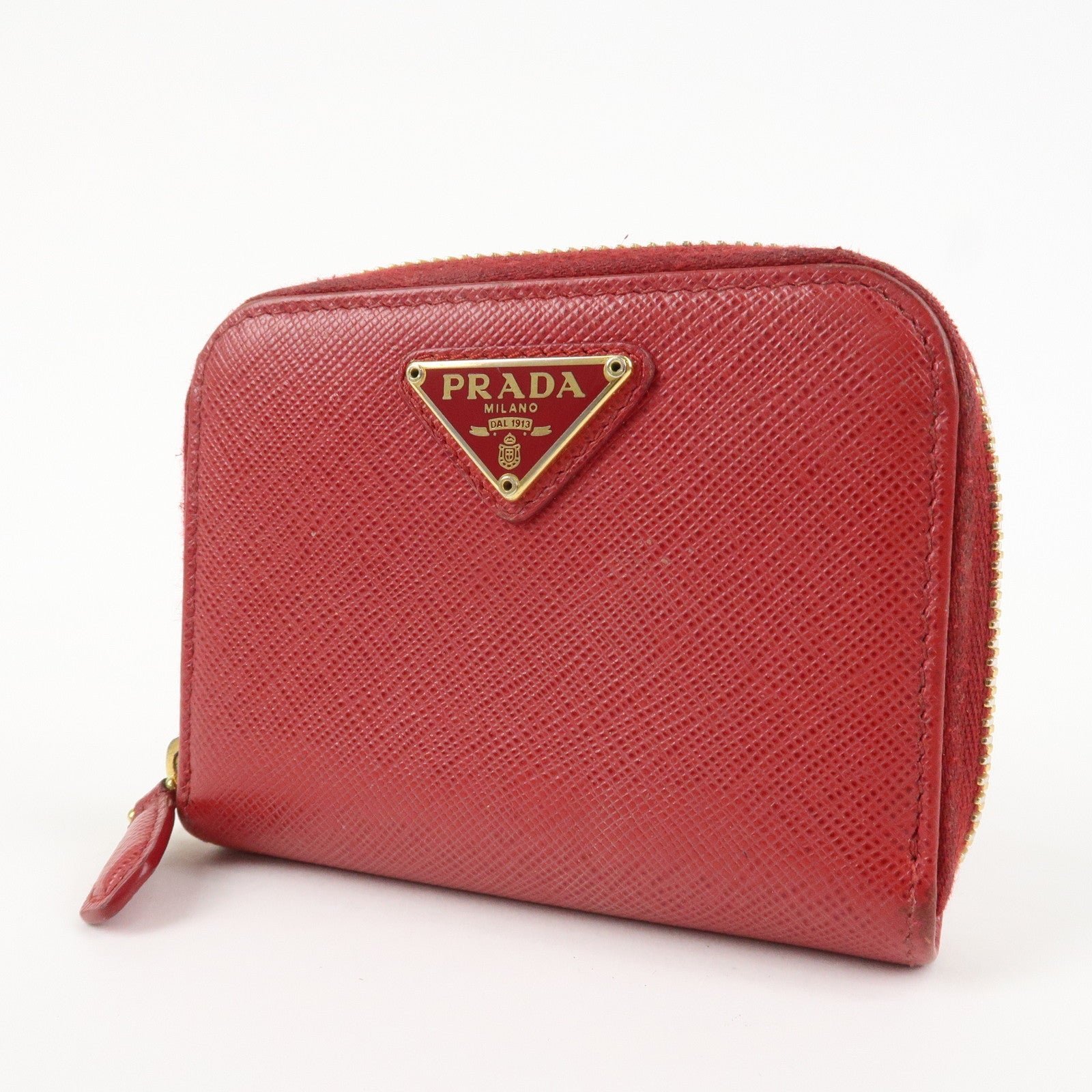 PRADA Triangle Logo Round Zippy Coin Case Red 1MO268 Used