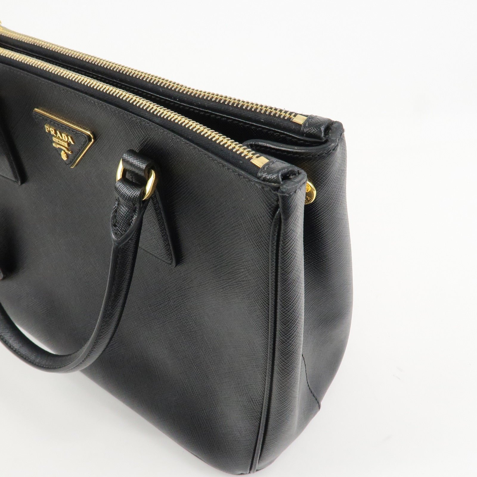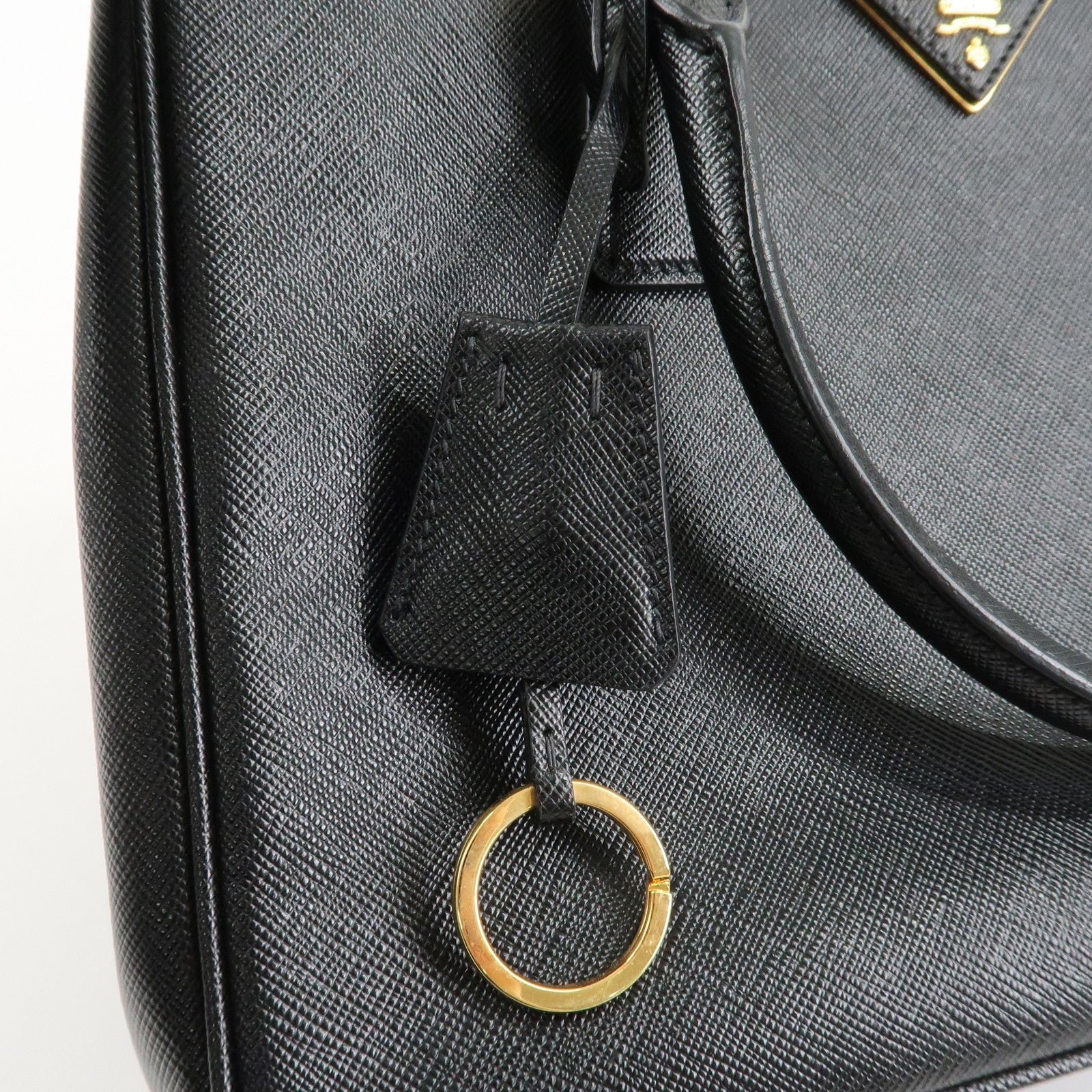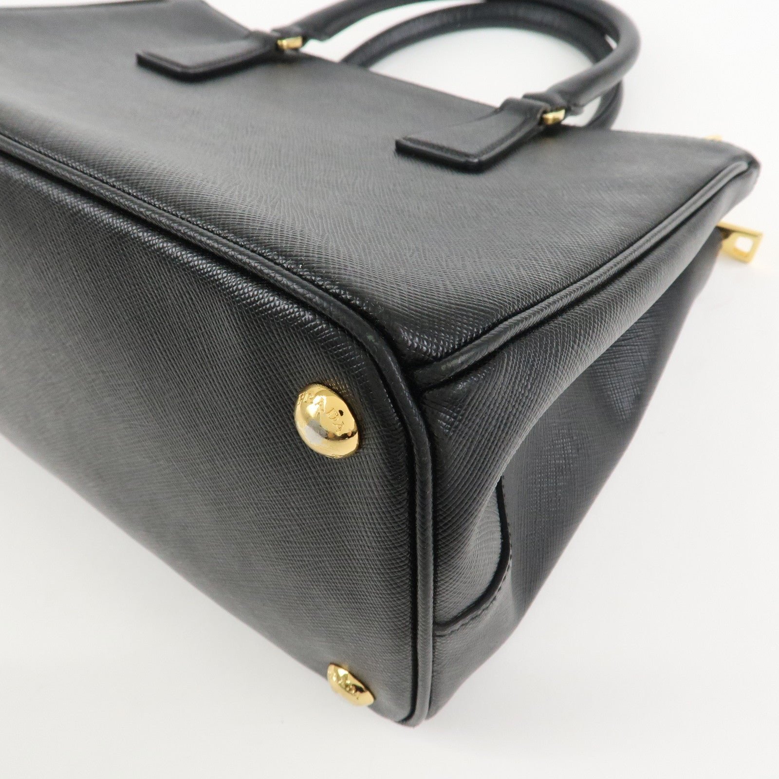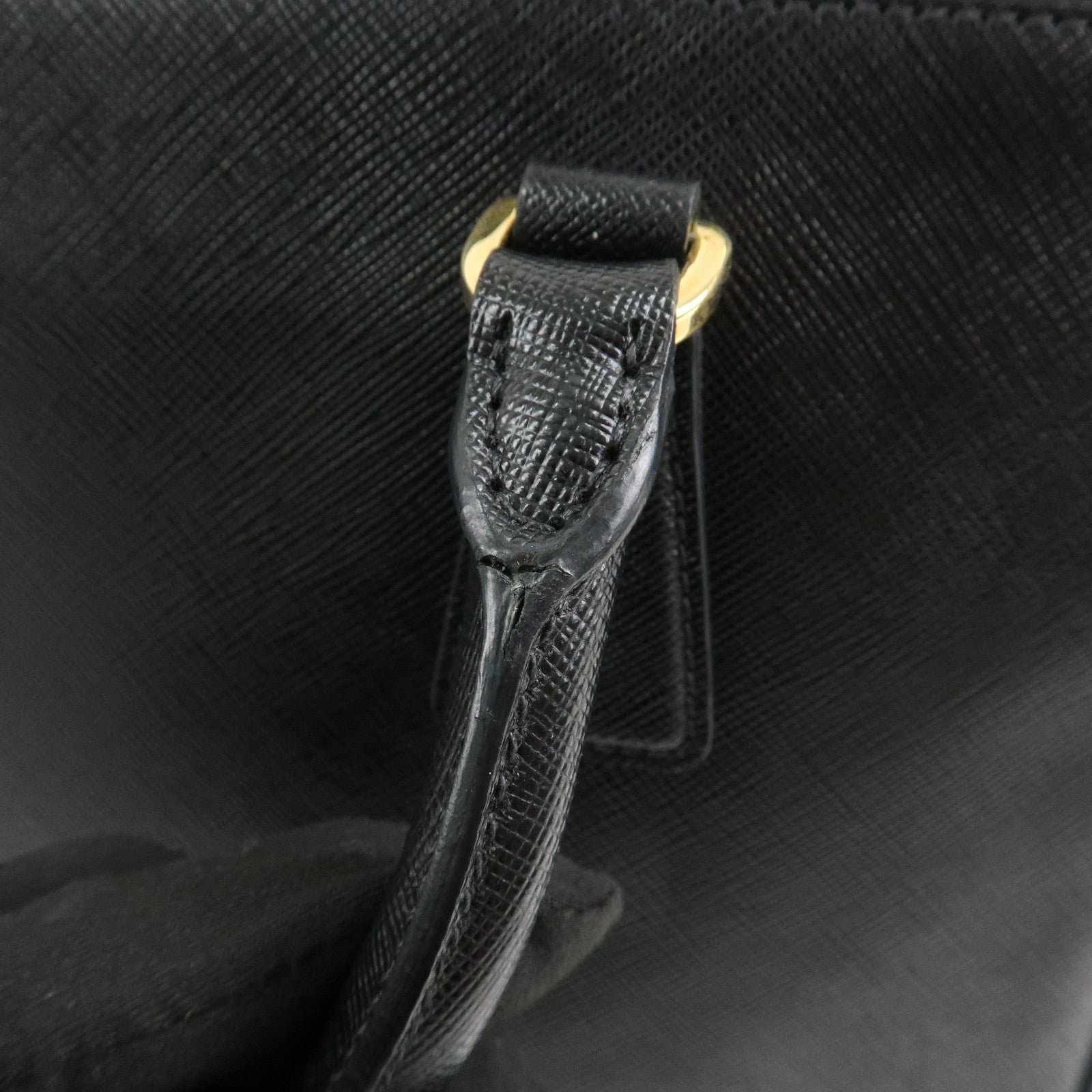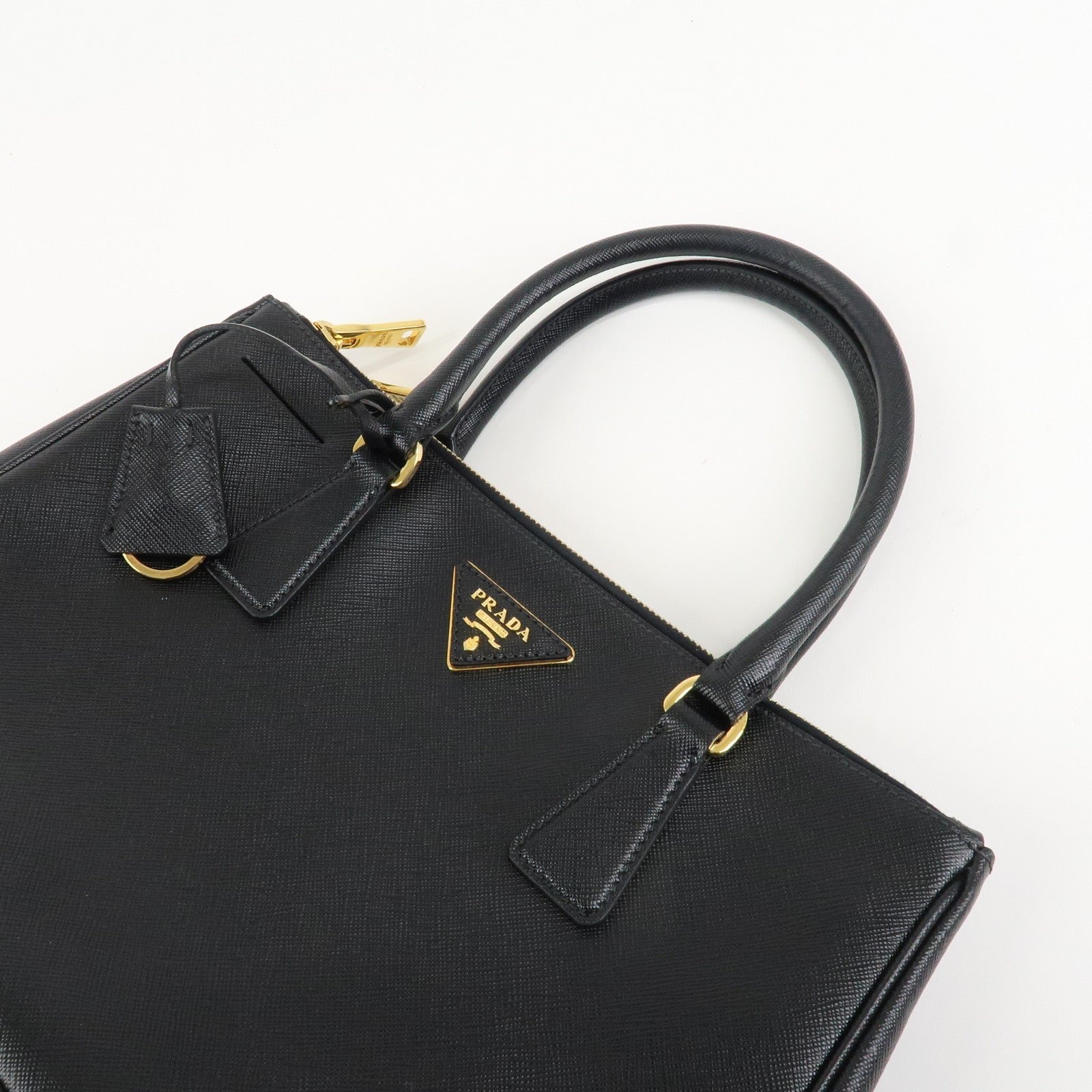PRADA Triangle Logo Saffiano Leather 2WAY Hand Bag Black BN1801 Used