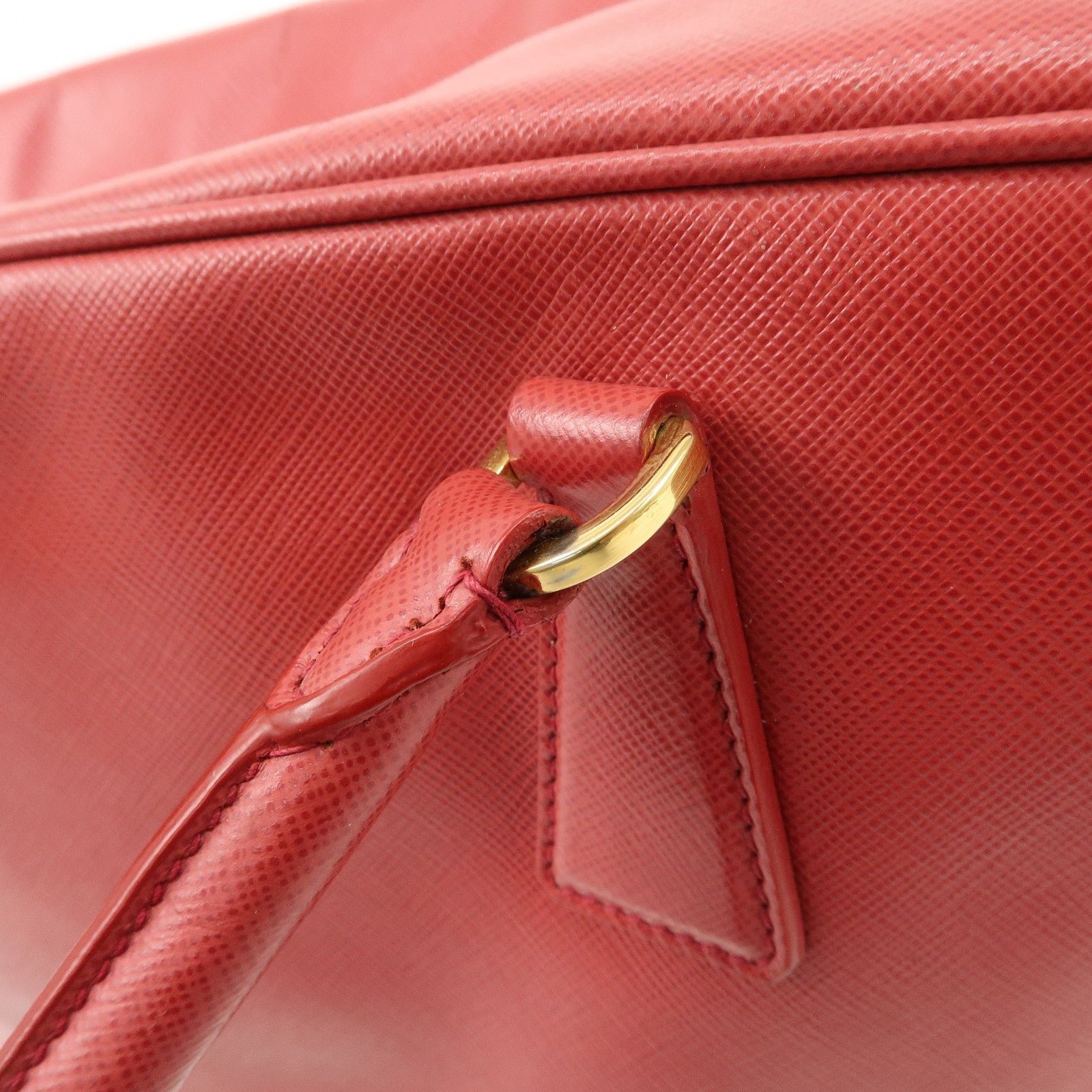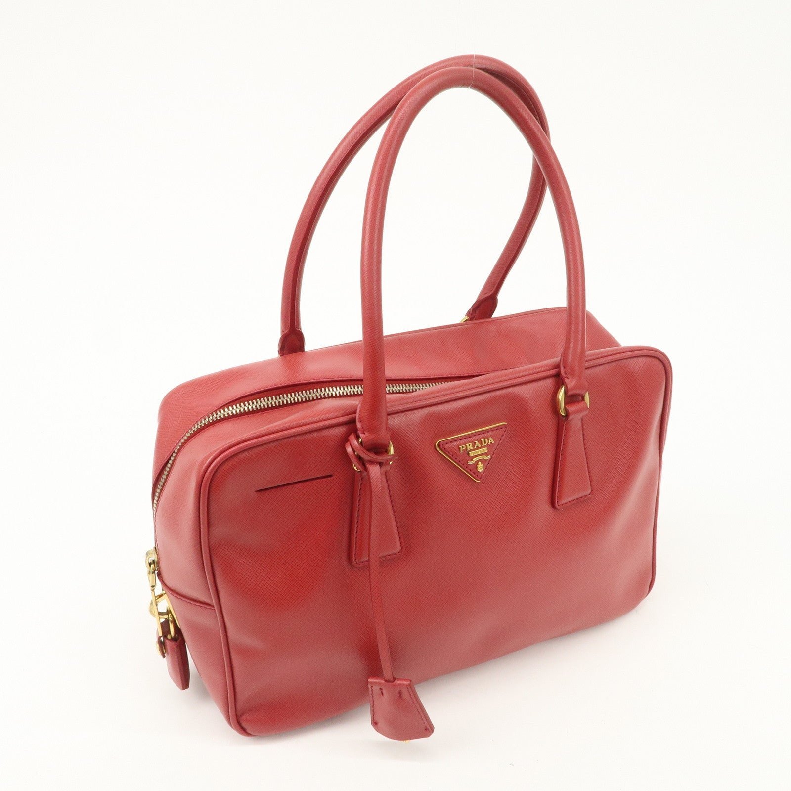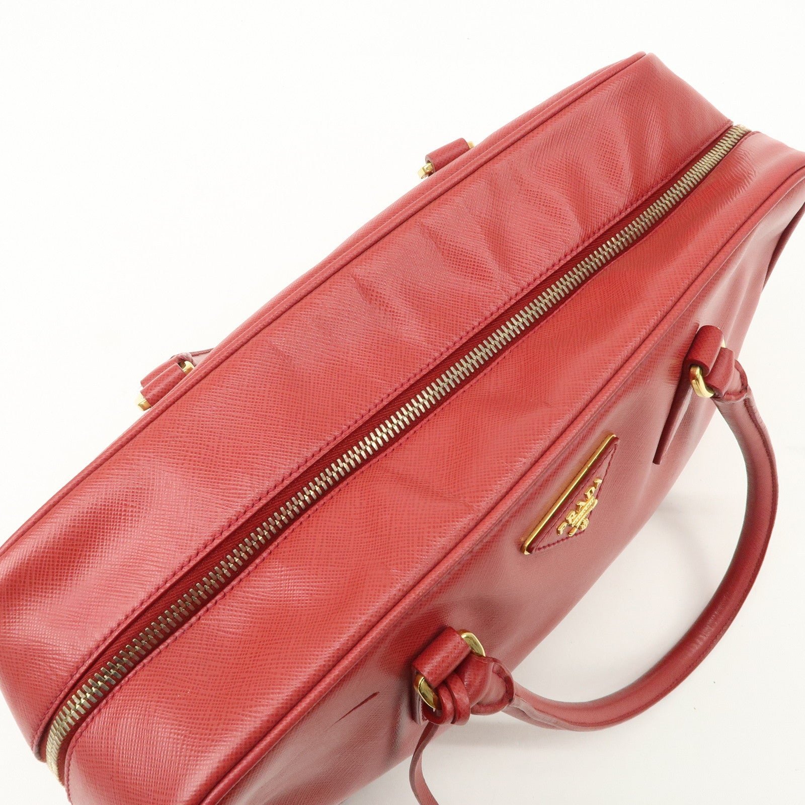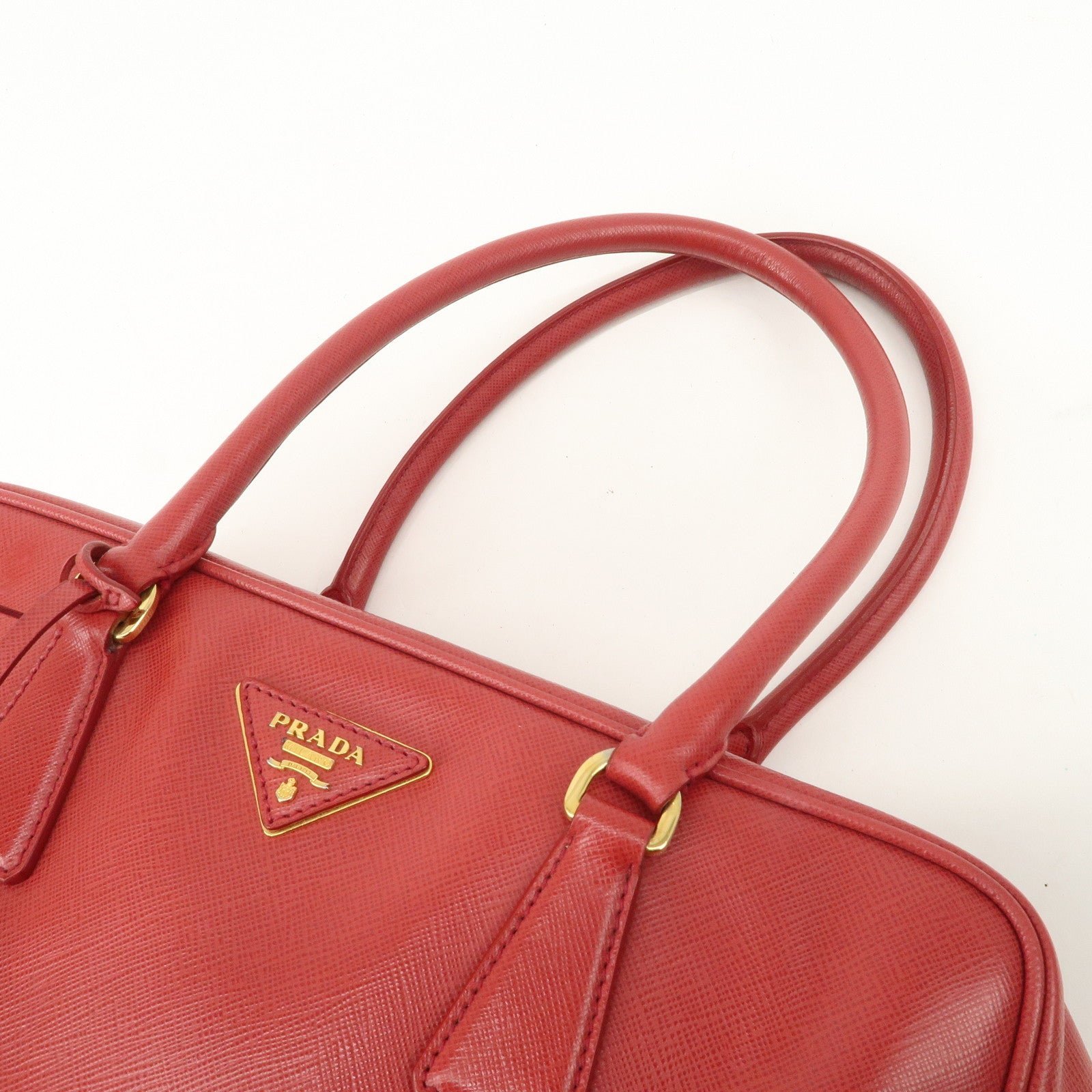 PRADA Triangle Logo Saffiano Leather Boston Bag Hand Bag Red BL0095 Used