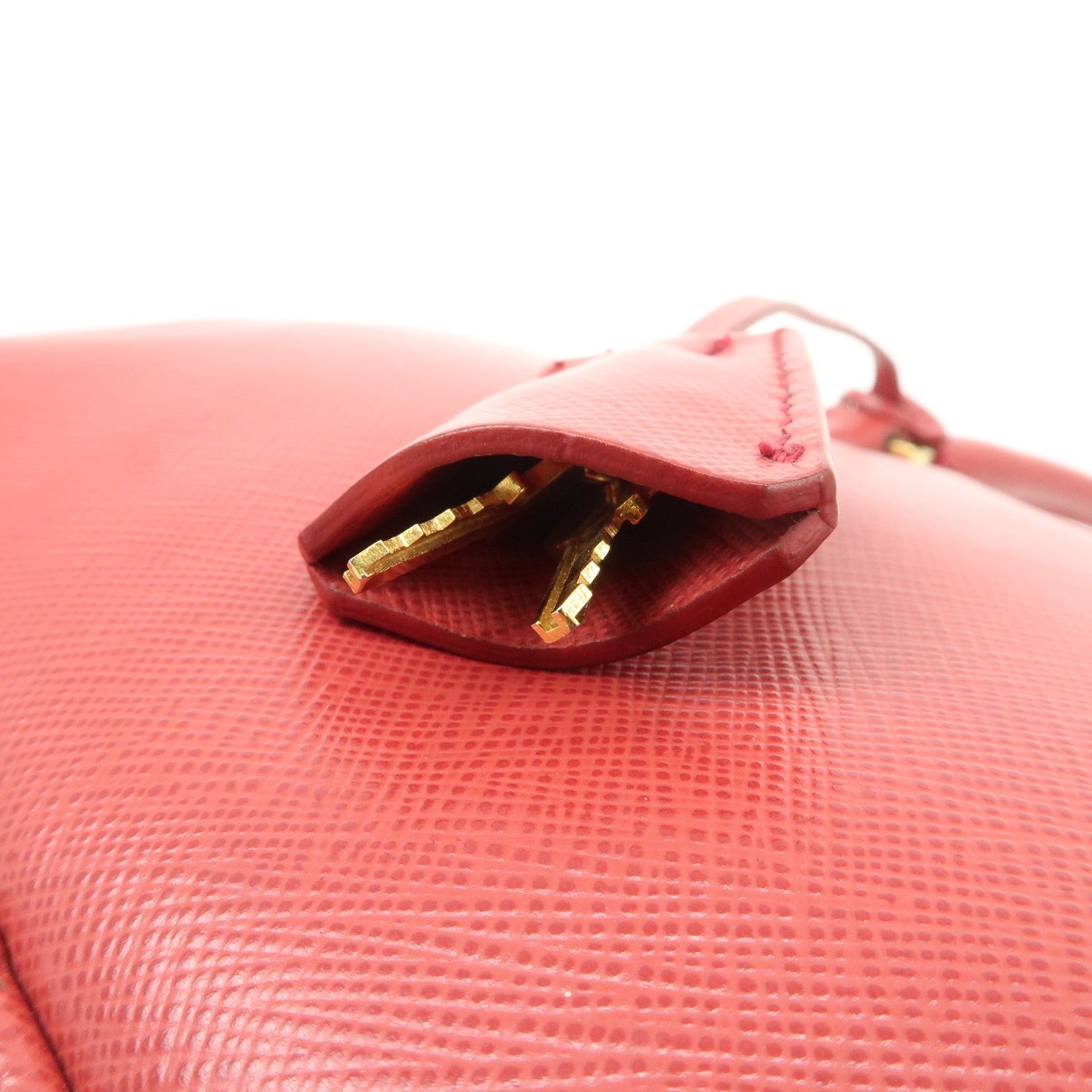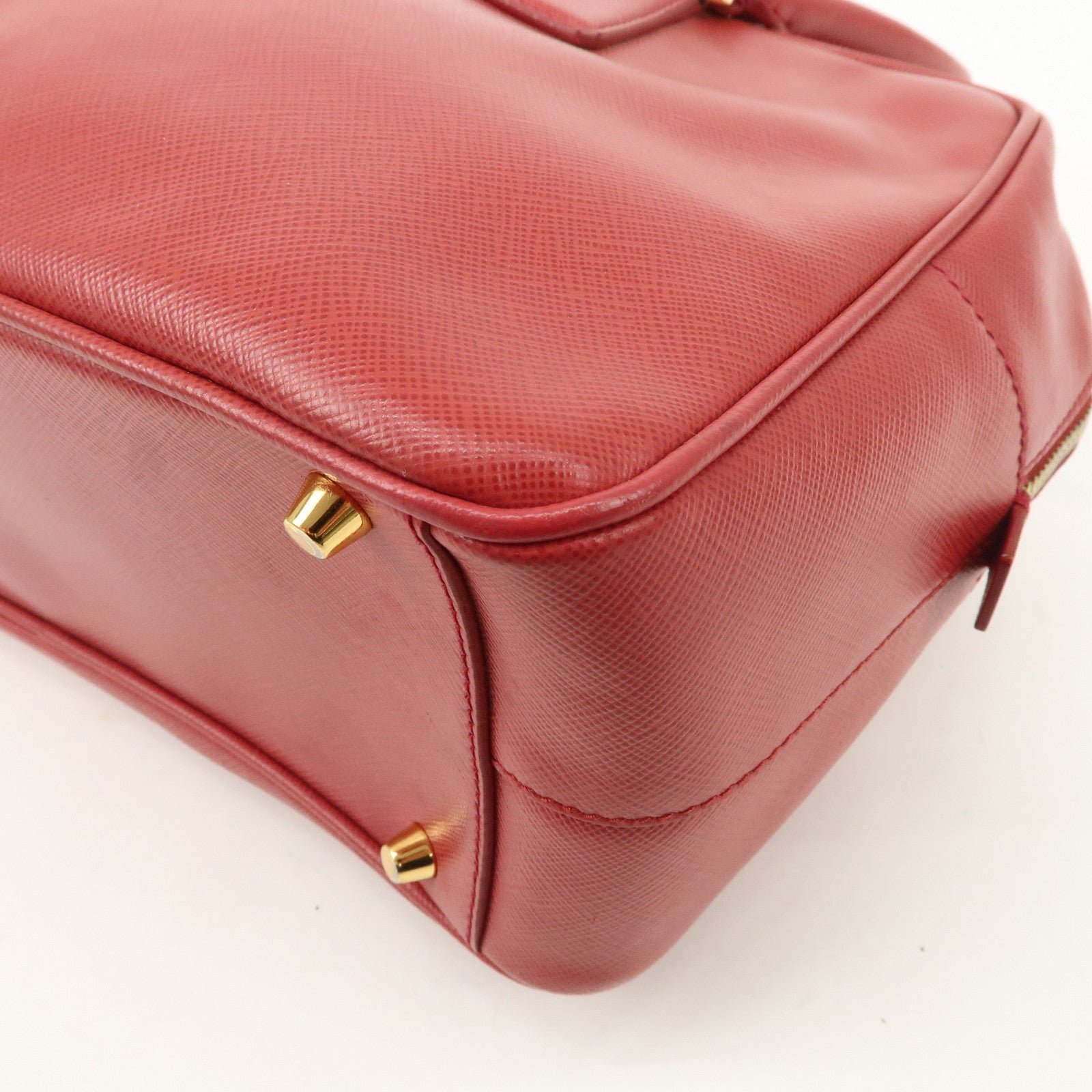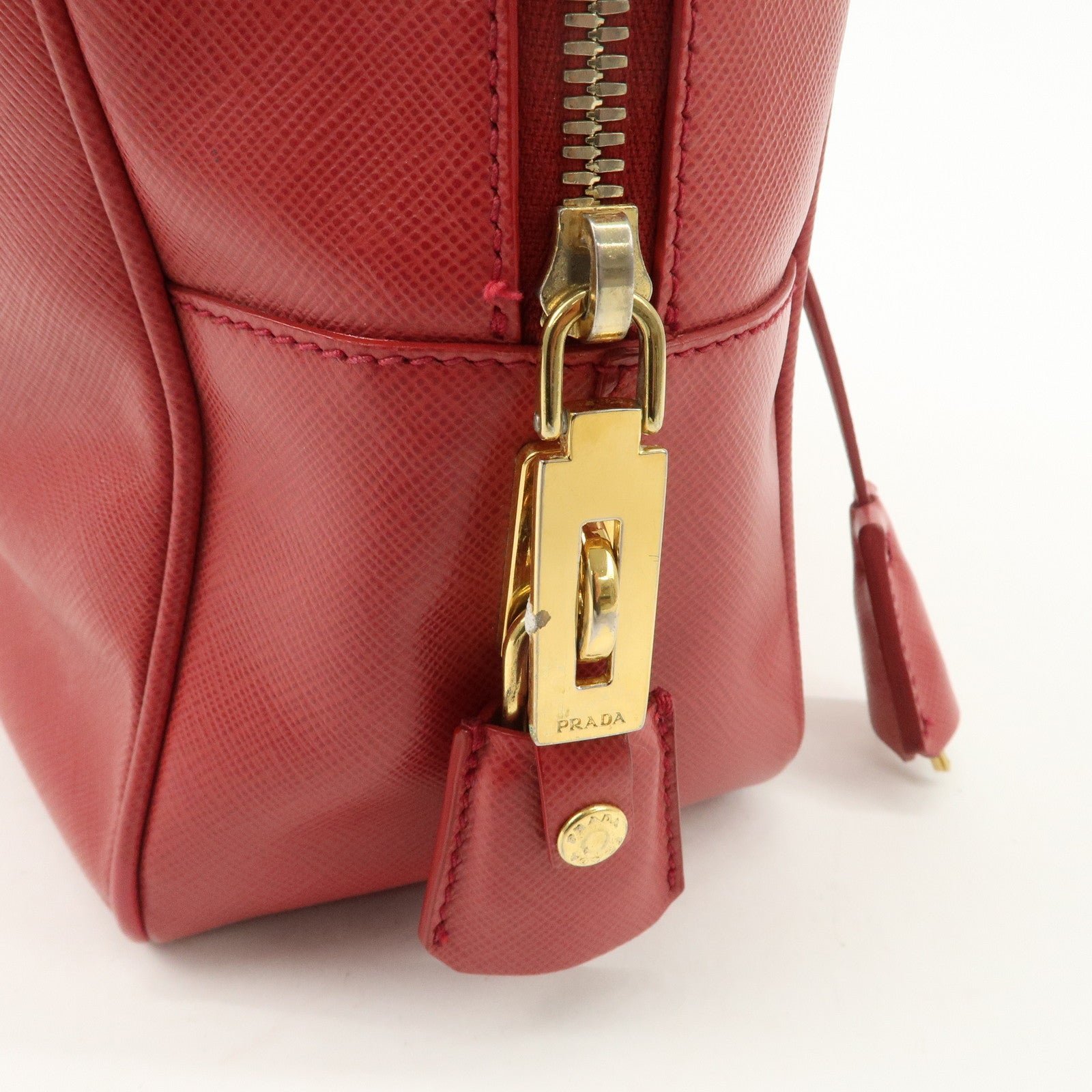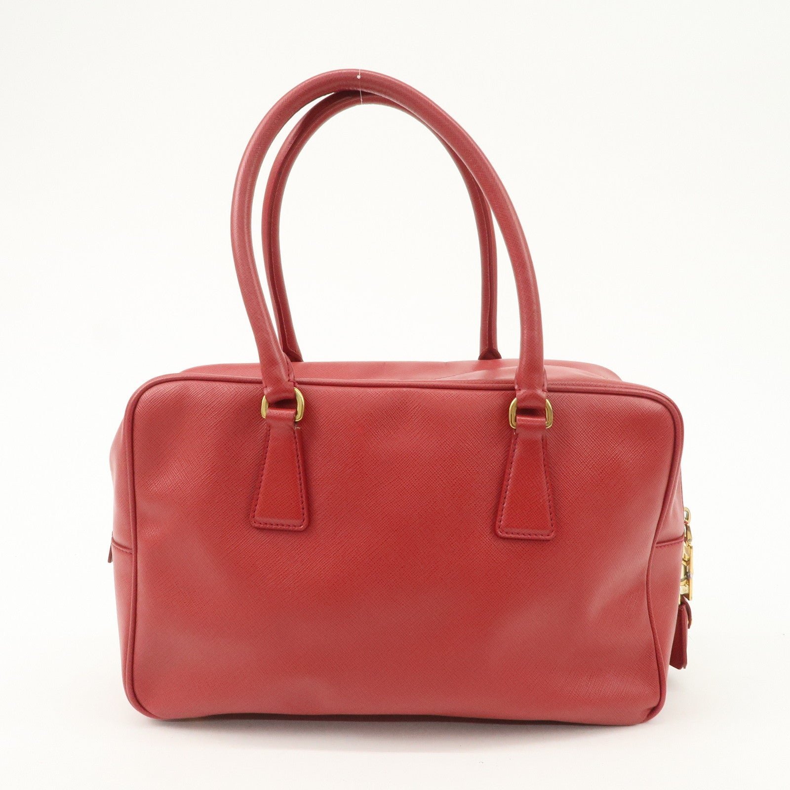 PRADA Triangle Logo Saffiano Leather Boston Bag Hand Bag Red BL0095 Used