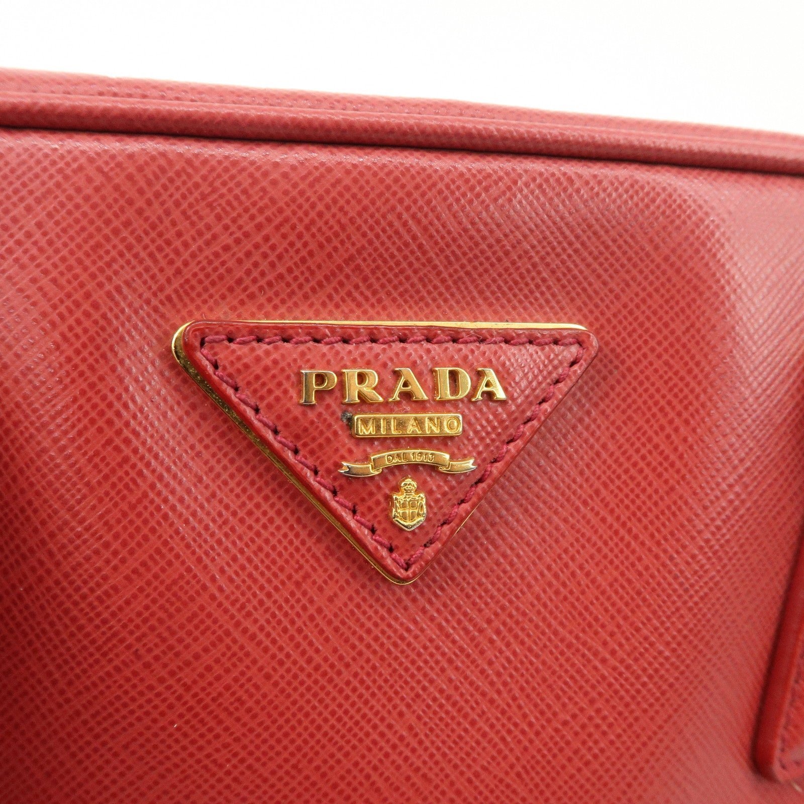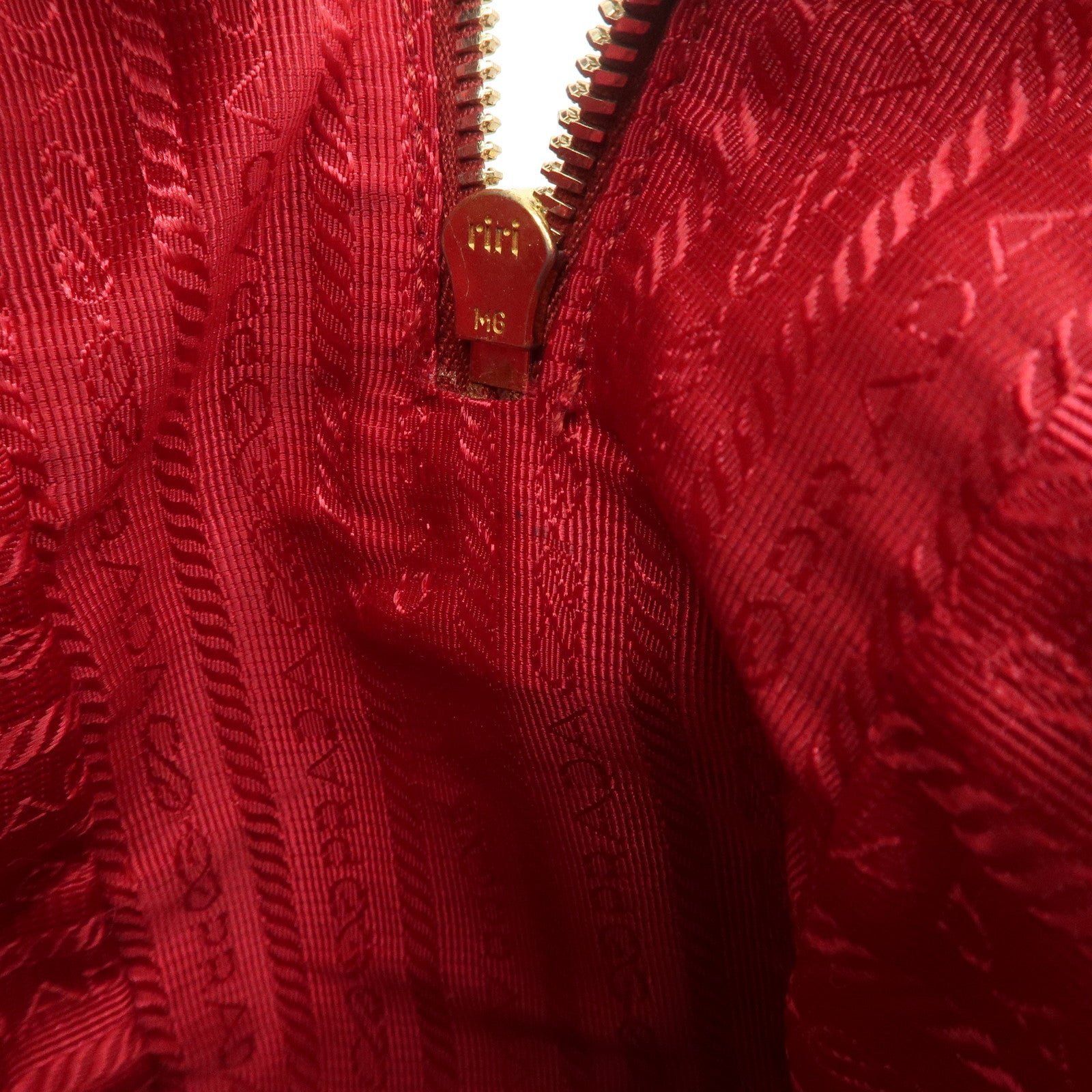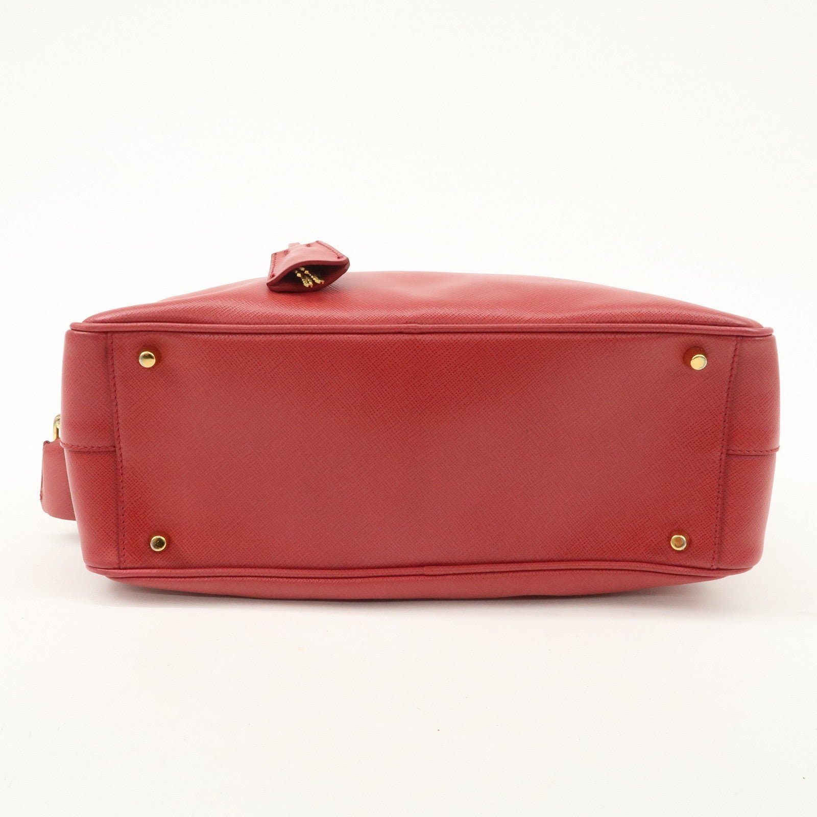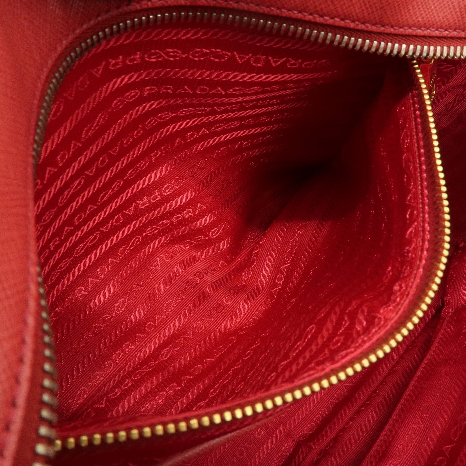 PRADA Triangle Logo Saffiano Leather Boston Bag Hand Bag Red BL0095 Used