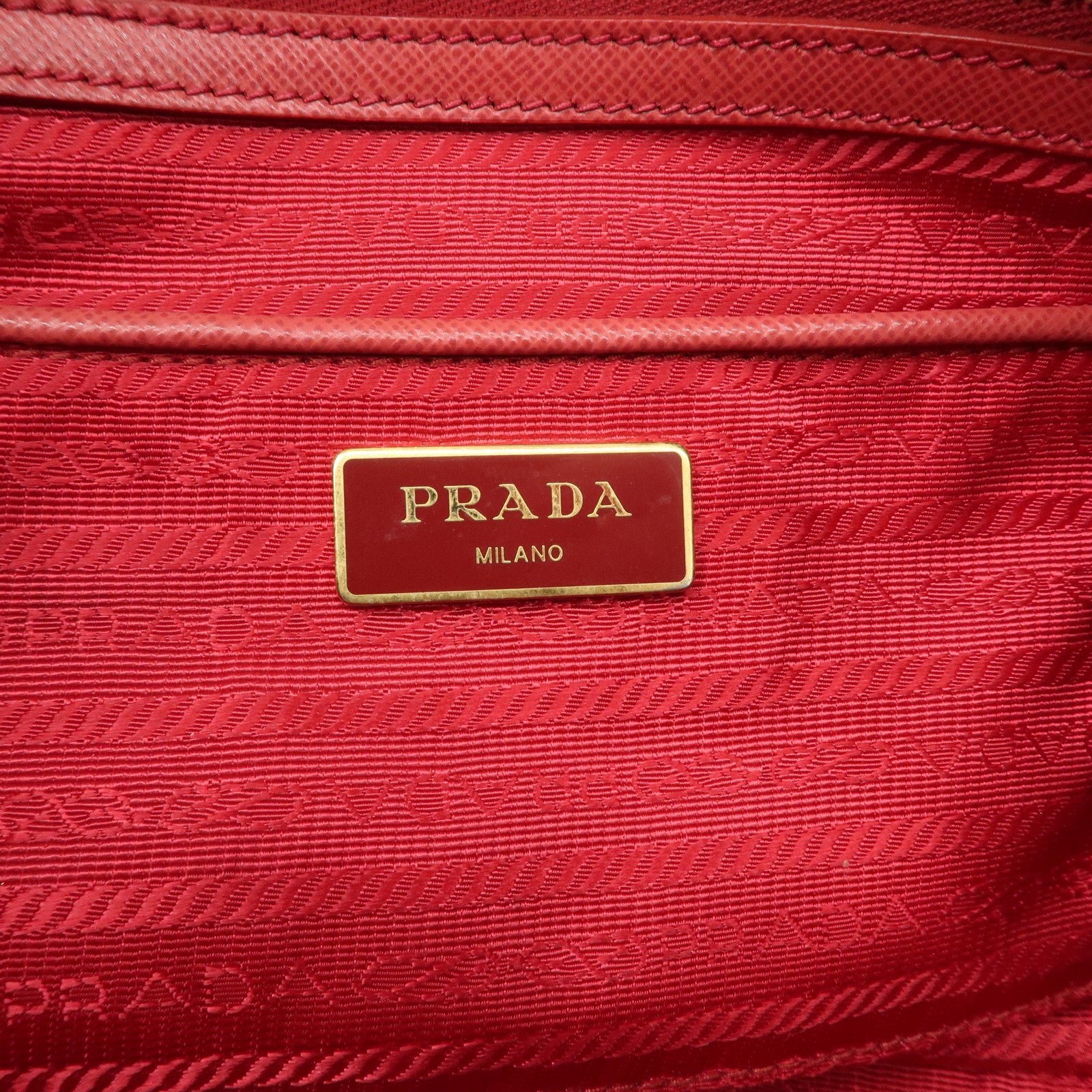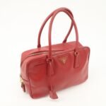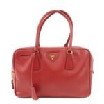 Be the first to review “PRADA Triangle Logo Saffiano Leather Boston Bag Hand Bag Red BL0095 Used”